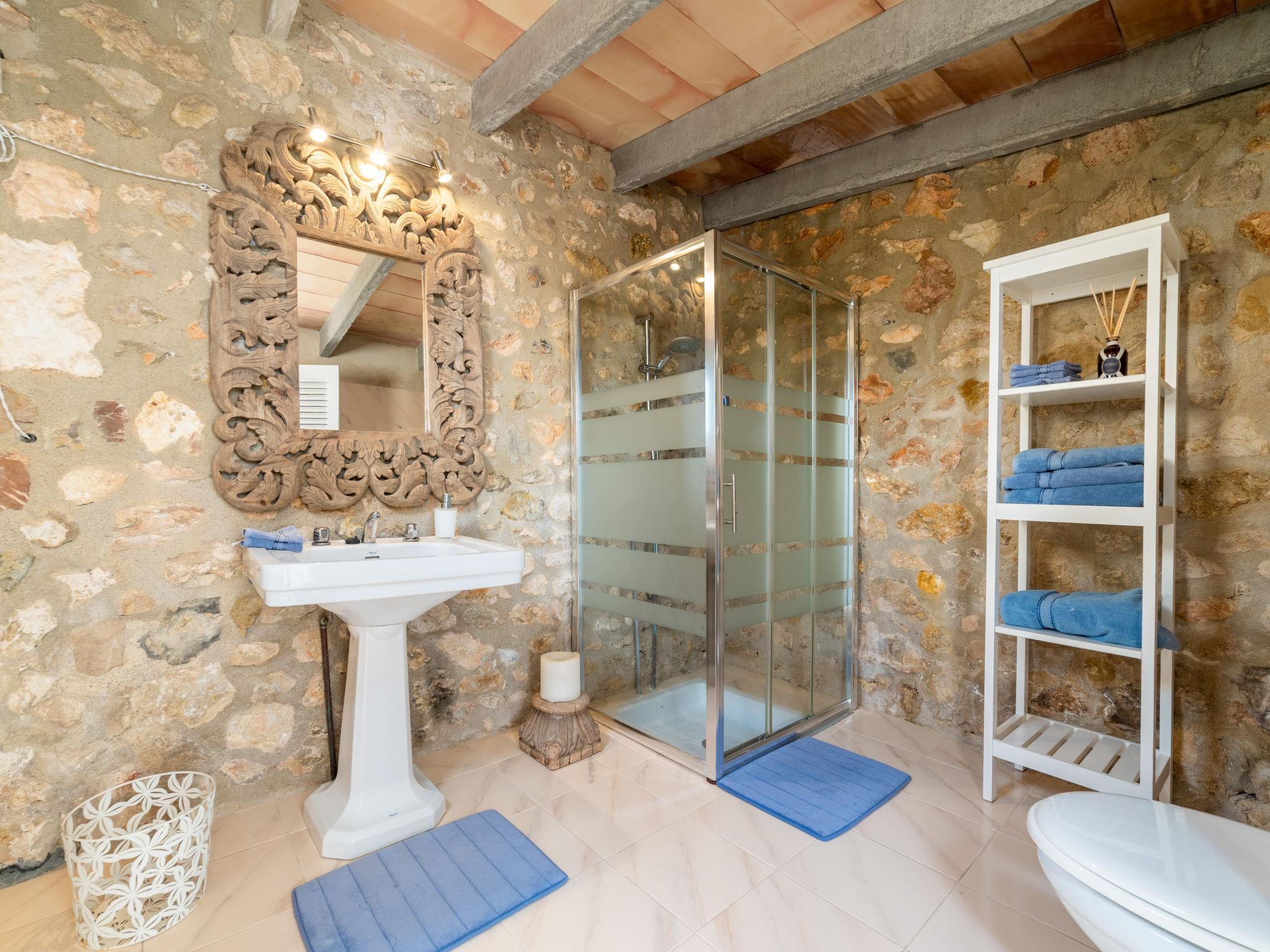 Campanet: Schönes, rustikales Haus "Sa Teulera", auf 2 Stockwerken. Im Ort, 1 km vom Zentrum, ruhige Lage, 17 km vom Meer. Zur Alleinbenutzung: wunderschöner Garten zum Entspannen, Schwimmbad eckig (6 x 4 m, saisonale Verfügbarkeit: 01.Mar. und 30.Nov.). Dusche/WC im Poolbereich, Sitzplatz (100 m2), Gartenmöbel, Grill. Im Hause: mit TV, Internetzugang, Wireless LAN, Klimaanlage, Waschmaschine, Wäschetrockner. Einkaufsgeschäft, Lebensmittelgeschäft, Supermarkt, Restaurant, Bar, Bäckerei, Café, Fußgängerzone 900 m, Fahrradverleih 5 km, Biergarten 900 m, Bushaltestelle "Campanet" 1.5 km, Sandstrand "Playa de Alcudia" 17 km, Kieselstrand "Playa de Aucanada" 18 km, Steinstrand "Playa de Aucanada" 18 km, Felsstrand "Playa de Aucanada" 18 km. Sporthafen 15 km, Jacht-Hafen 15 km, Golfplatz (18 Loch) 18 km, Tennis 1 km, Sportzentrum 1 km, Radweg 500 m. Nahe gelegene Sehenswürdigkeiten: Coves de Campanet 3 km, Fonts Ufanes 5 km, Sa Clasta Wine Tour. Bitte beachten: kein Fahrstuhl vorhanden. Geeignet für Familien, geeignet für Senioren Babyausstattung auf Anfrage. Objekt geeignet für 6 Erwachsene Jugendgruppen nur auf Anfrage. Der Besitzer akzeptiert keine Jugendgruppen. Be- und Entladen am Ferienhaus möglich. Flugplatz 45 km vom Haus.