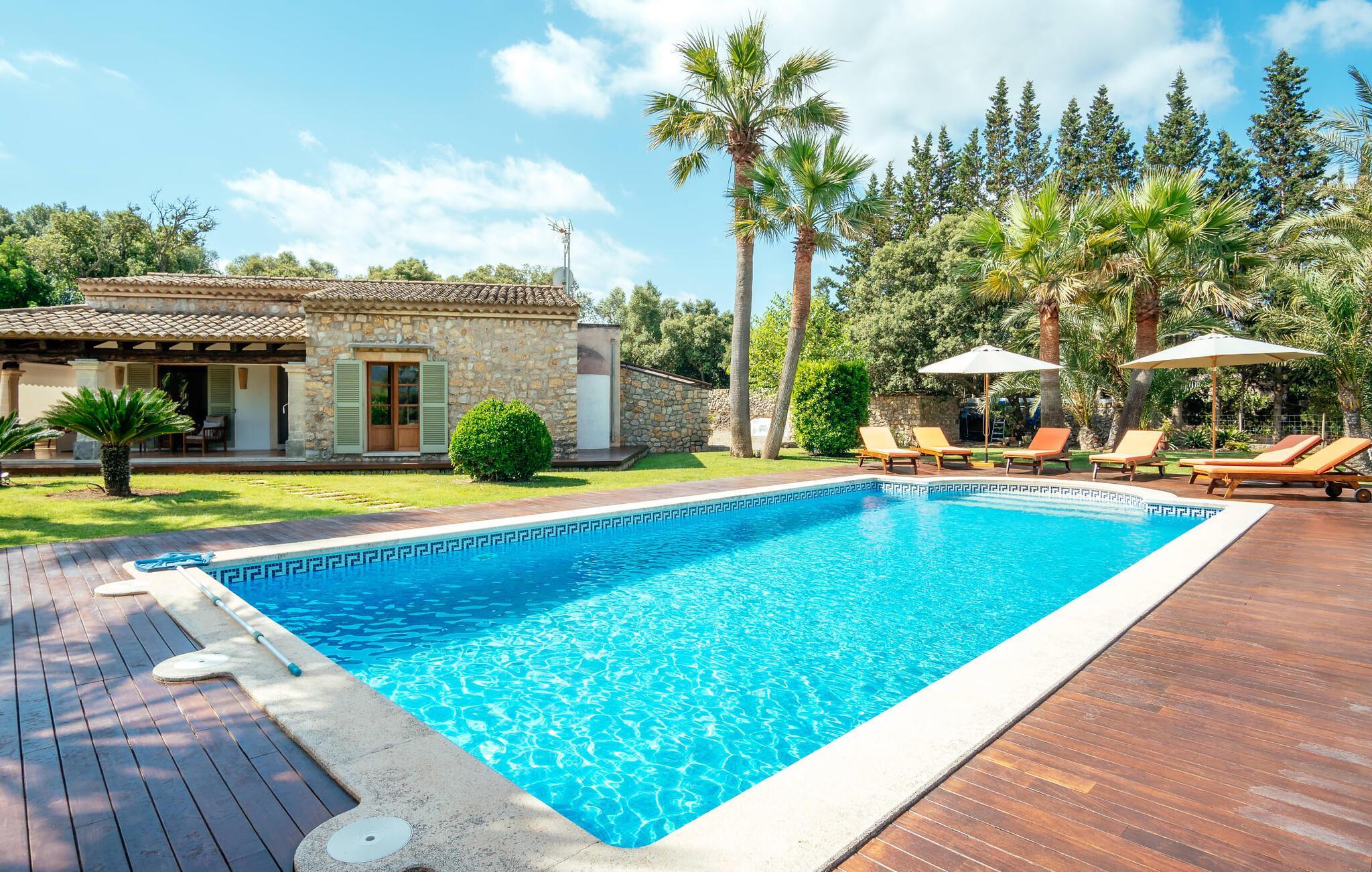 Die Villa „Can Xisco“ ist ein beeindruckendes Anwesen, das durch die besonders gelungene Kombination moderner und klassischer mallorquinischer Elemente überzeugt. Die besondere, leicht erhöhte Lage ermöglicht einen herrlichen Panoramablick auf das nahegelegene Dorf Artà. Das mediterrane Anwesen zeichnet sich besonders durch gepflegte Rasenflächen und atemberaubend schöne Palmen und andere üppige Vegetation aus. Die einladenden Terrassenflächen, teilweise überdacht, bieten herrlich gemütliche Plätze zum Entspannen. Zur Auswahl stehen coole Lounge-Möbel oder Sitzgelegenheiten, die ebenso funktional wie geschmackvoll sind und gleichzeitig einen tollen Platz zum Essen bieten. Der Pool besticht durch seine stattliche Größe von 10 x 5 m. Das Becken des Pools ist dekorativ gefliest und bequem über eine halbrunde Treppe erreichbar. Auf der angrenzenden Poolterrasse stehen Ihnen bequeme Liegestühle zur Verfügung, sodass Sie ein ausgiebiges Sonnenbad unter dem tiefblauen Himmel des Mittelmeers genießen können. Hier können Sie die Seele baumeln lassen und den Alltag weit hinter sich lassen. Für den Fall, dass die UV-Strahlung zu stark wird, stehen zwei Sonnenschirme zur Verfügung. An lauen Abenden ist ein deftiges Grillfest gefragt, bei dem vielleicht frische, regionale Köstlichkeiten zubereitet und in geselliger Runde genossen werden. Die Villa verfügt über ausreichend Parkmöglichkeiten für Ihren Komfort.