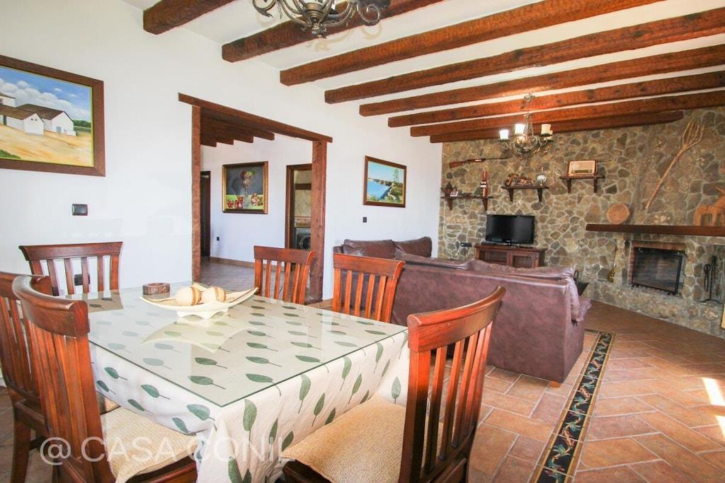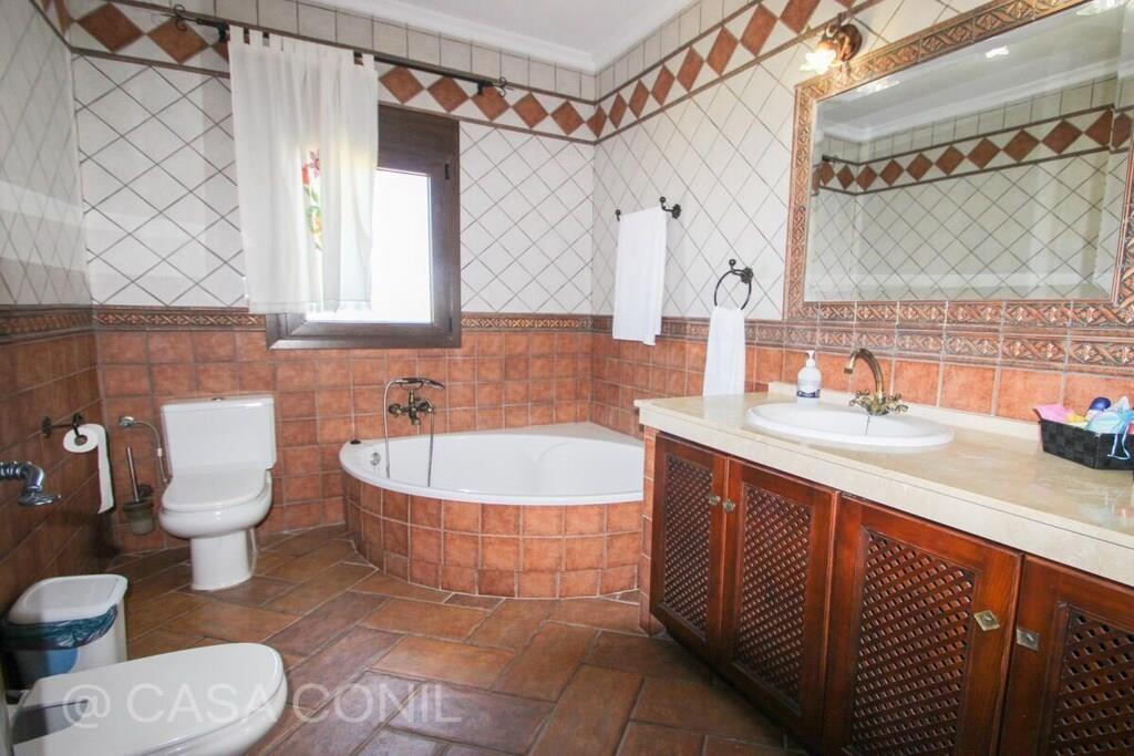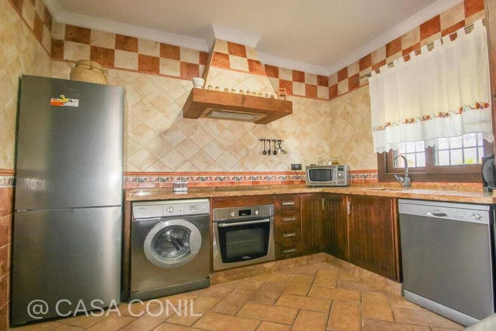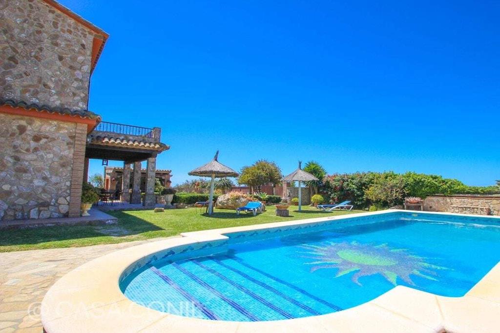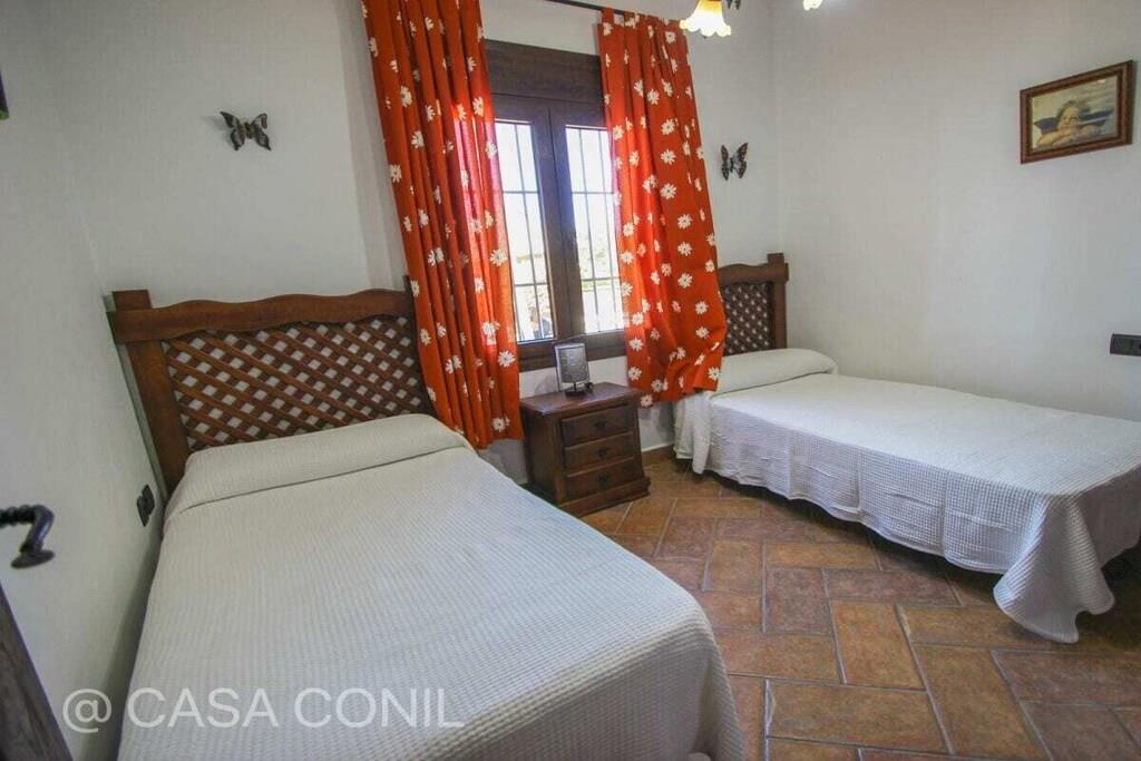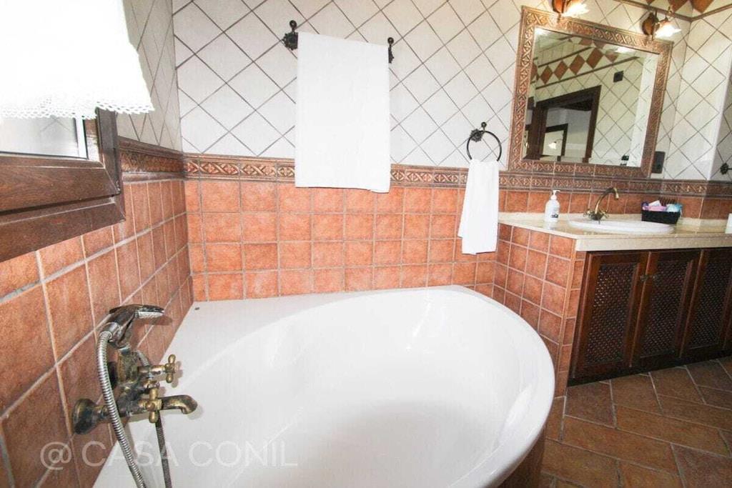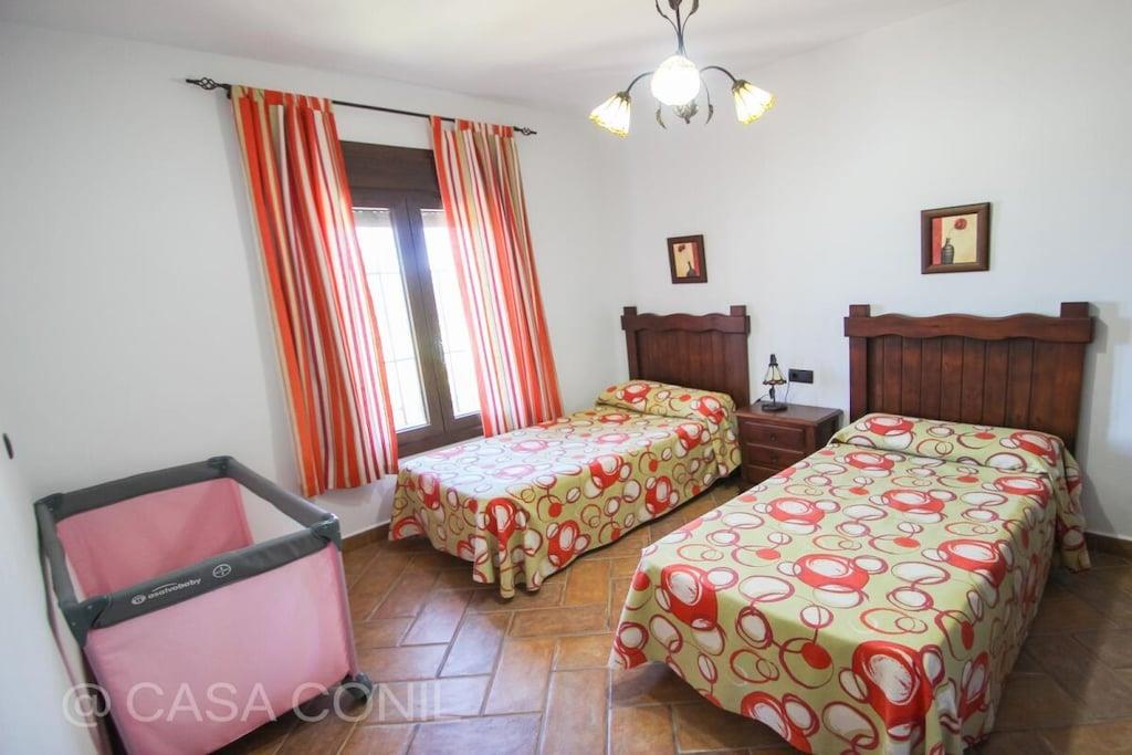 Diese schöne Villa im spanischen, rustikalen Stil ist sehr ruhig in den Hügeln vor Conil gelegen. Der ca.10 x 5m große Pool l ist von einem gepflegten Garten mit vielen mediterranen Pflanzen umgeben. Insgesamt ist das Grundstück etwa 1.200 qm groß. Die Villa bietet allen Komfort für bis zu 7-8 Personen: 4 große Schlafzimmer: zwei mit je zwei Einzelbetten 0,90 cm breit, eines mit Einzelbett und evtl. Zustellbett, eines mit Doppelbett mit anschließendem großen Aussichtsbalkon mit Tisch und Stühlen. Es sind je 2 Schlafzimmer im ersten und im zweiten Stock vorhanden, sodass die Villa hervorragend – auch aufgrund der Größe von 170 qm - für den Urlaub mit zwei befreundeten Familien geeignet ist. Im oberen Stockwerk befinden sich zwei schöne Balkone; zur Sonnenaufgangs- und zur Sonnenuntergansseite des Hauses, die je ca. 14 qm groß sind. Einer verfügt über eine Treppe zur kleinen Aussichtsterrasse des Hauses, von der aus der Blick noch beeindruckender ist. Der mit Natursteinen und Holzbalken gestaltete Porche sowie die Eingangshalle und der Treppenbereich des Hauses ist besonders prachtvoll - es wurde auf jedes Ausstattungsdetail wie beleuchtete Bepflanzung und andalusische Ornamente geachtet. Im Salon befindet sich ein schöner Kamin, zwei Sofas, ein Esstisch mit 8 Stühlen und TV mit internationalen Programmen. Die Küche ist komplett ausgestattet mit besten Geräten: Waschmaschine, Spülmaschine, Mikrowelle, Herd mit Cerankochfeld und Backofen, Kaffeemaschine und vielem mehr. In jedem Stockwerk befindet sich ein sehr schönes Bad, unten mit großer Eckbadewanne. Número de registro turistico: CTC-2023144478