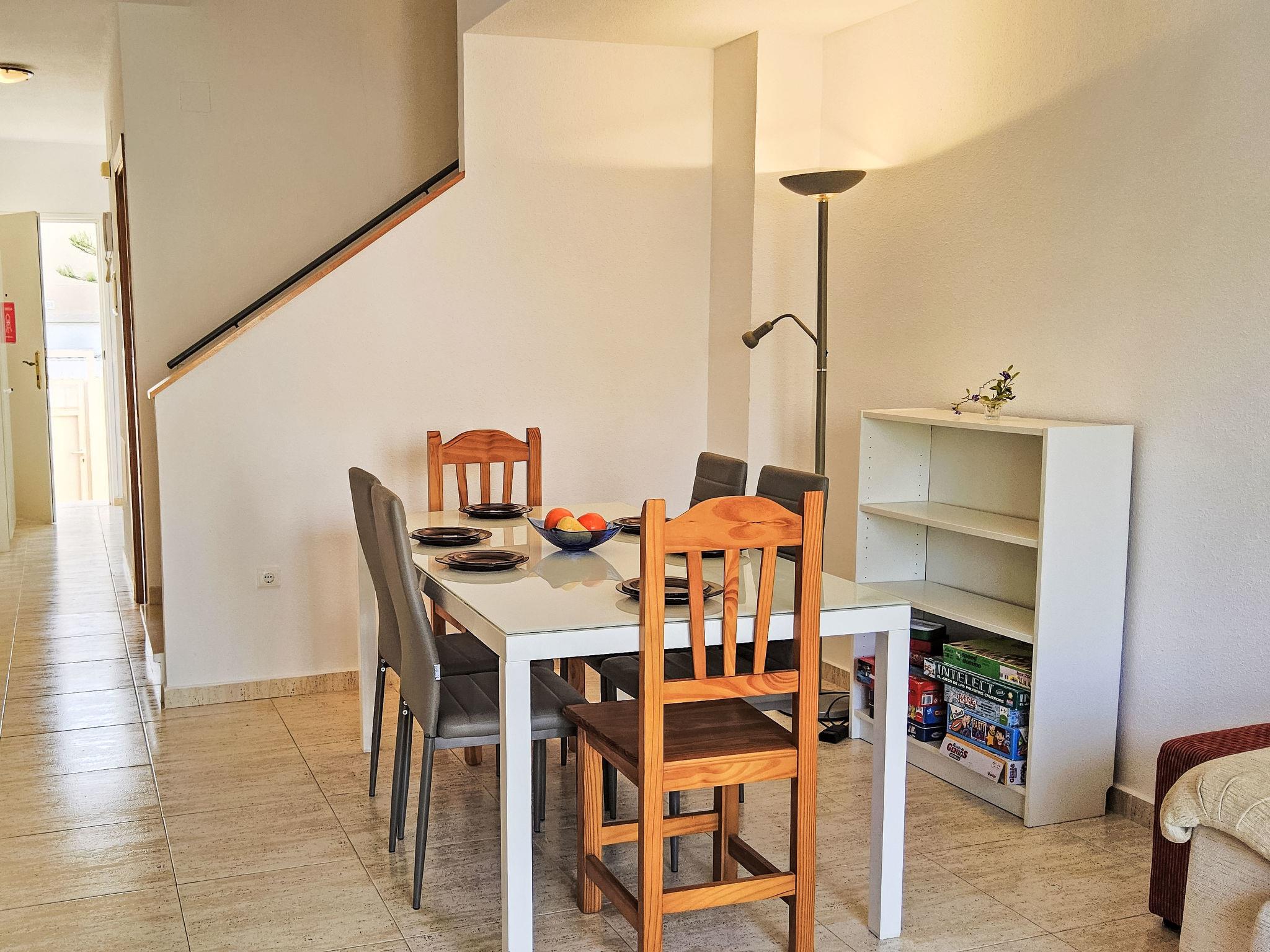 "La Almadraba", 4-Zimmer-Reihenhaus 100 m2 auf 3 Stockwerken. Objekt geeignet für 5 Erwachsene + 1 Kind. Hell, einfach und zweckmässig eingerichtet: Wohn-/Esszimmer 18 m2 mit Digital-TV und Ventilator. Ausgang zur Terrasse. Küche (Backofen, Geschirrspüler, 4 Glaskeramikplatten, Toaster, Wasserkocher, Mikrowelle, Tiefkühler, elektrische Kaffeemaschine). Sep. WC. Obergeschoss: 1 Zimmer 12 m2 mit 1 franz. Bett (1 x 150 cm, Länge 190 cm), E-Heizung und Ventilator. 1 Zimmer 9 m2 mit 1 Bett (90 cm, Länge 190 cm), E-Heizung und Ventilator. Dusche/WC. 2. Obergeschoss: 1 Zimmer 24 m2 mit 1 franz. Bett (1 x 150 cm, Länge 190 cm), E-Heizung und Ventilator. Ausgang zur Terrasse. Terrasse 12 m2. Terrassenmöbel, Gartengrill. Sicht auf das Schwimmbad, den Garten und die Ortschaft. Zur Verfügung: Waschmaschine, Bügeleisen, Haartrockner. Internet (WLAN, gratis). Bitte beachten: Nichtraucher-Haus. 1 kleines Haustier/Hund erlaubt. TV nur ES. VT-508752-A // Reg. Nr.: ESFCTU00000305600039244400000000000000000VT-508752-A8