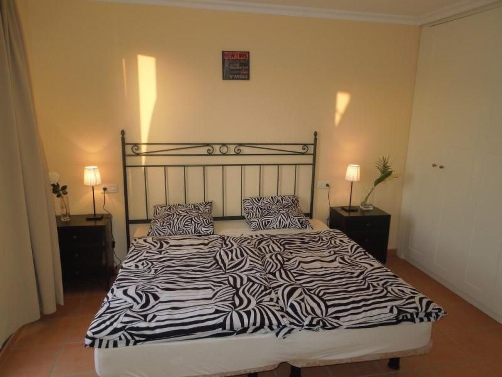 Im Erdgeschoß gibt es ein gemütliches Wohnzimmer mit Flachbild-Fernseher. Daran grenzt die Küche an, die komplett ausgestattet ist mit Elektroherd mit Cerankochfeld, Backofen, Mikrowelle, Kaffeemaschine, Wasserkocher und allen Kochutensilien, die man für einen komfortablen Urlaub braucht. Die Küche hat eine Durchreiche zum Wohnzimmer, wodurch auch die Wege in das separate Esszimmer kurz sind. Außerdem gibt es ein kleines Badezimmer. Vom Wohnzimmer aus geht man auf die Terrasse, die einen traumhaften Meerblick und einen wunderschönen Ausblick zum Montaña Roja (roter Berg) bietet. Im Obergeschoss befinden sich die 3 Schlafzimmer, die jeweils mit einem Doppelbett ausgestattet sind. Zwei Schlafzimmer haben Meerblick, so daß Sie vom Bett aus den Blick zum Meer genießen können - Luxus pur! Das dritte Schlafzimmer hat einen eigenen Balkon, der einen atemberaubenden Blick über die Dächer bietet und vor allem einen Blick in die Berge und zum Teide - dem höchsten Berg Spaniens. Sie können milde und warme Temperaturen von 20 - 30 Grad genießen und können auf dem Teide sehen, wie dort Schnee liegt in den Wintermonaten. Außerdem gibt es 2 Bäder mit Dusche und Badewanne in der oberen Etage. Bei guter Sicht können Sie die Nachbarinsel Gran Canaria sehen. Es gibt eine Waschmaschine, die unser Gästen kostenlos nutzen können.