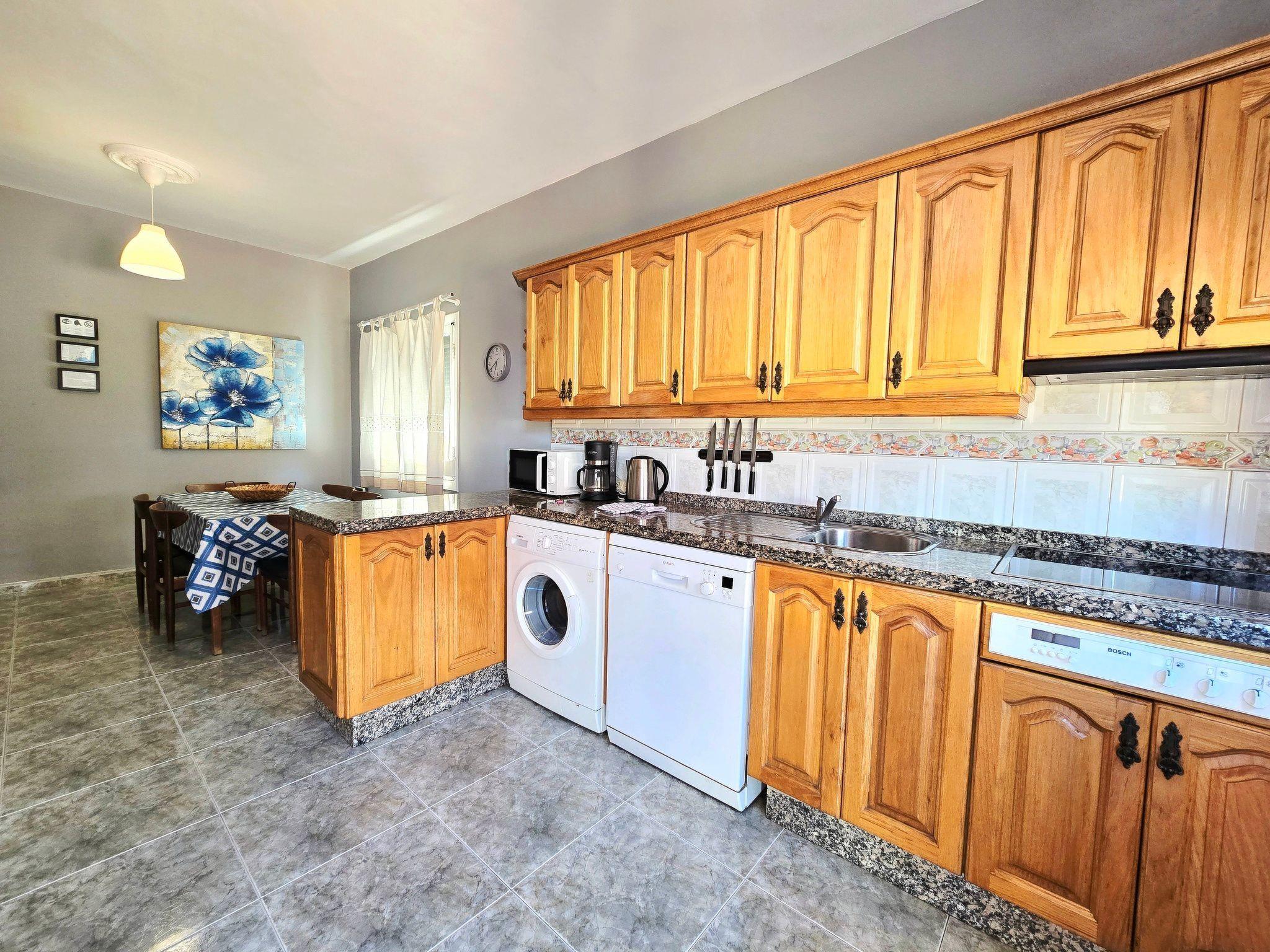 Es verfügt über ein geräumiges Wohnzimmer mit Meerblick, TV und kostenlosem Wi-Fi, ein großes Esszimmer und eine voll ausgestattete Küche mit Mikrowelle, Geschirrspüler, Waschmaschine, Kühlschrank und alle notwendigen Utensilien für einen komfortablen Aufenthalt. Das Badezimmer verfügt über eine Dusche, und die 70 m² große Terrasse bietet einen idealen Platz zum Entspannen, ausgestattet mit einer Pergola, einem Tisch, Stühlen und vier Sonnenliegen, von wo aus Sie einen spektakulären Blick auf den gesamten Strand von El Médano genießen können, der buchstäblich nur 2 Meter entfernt ist.