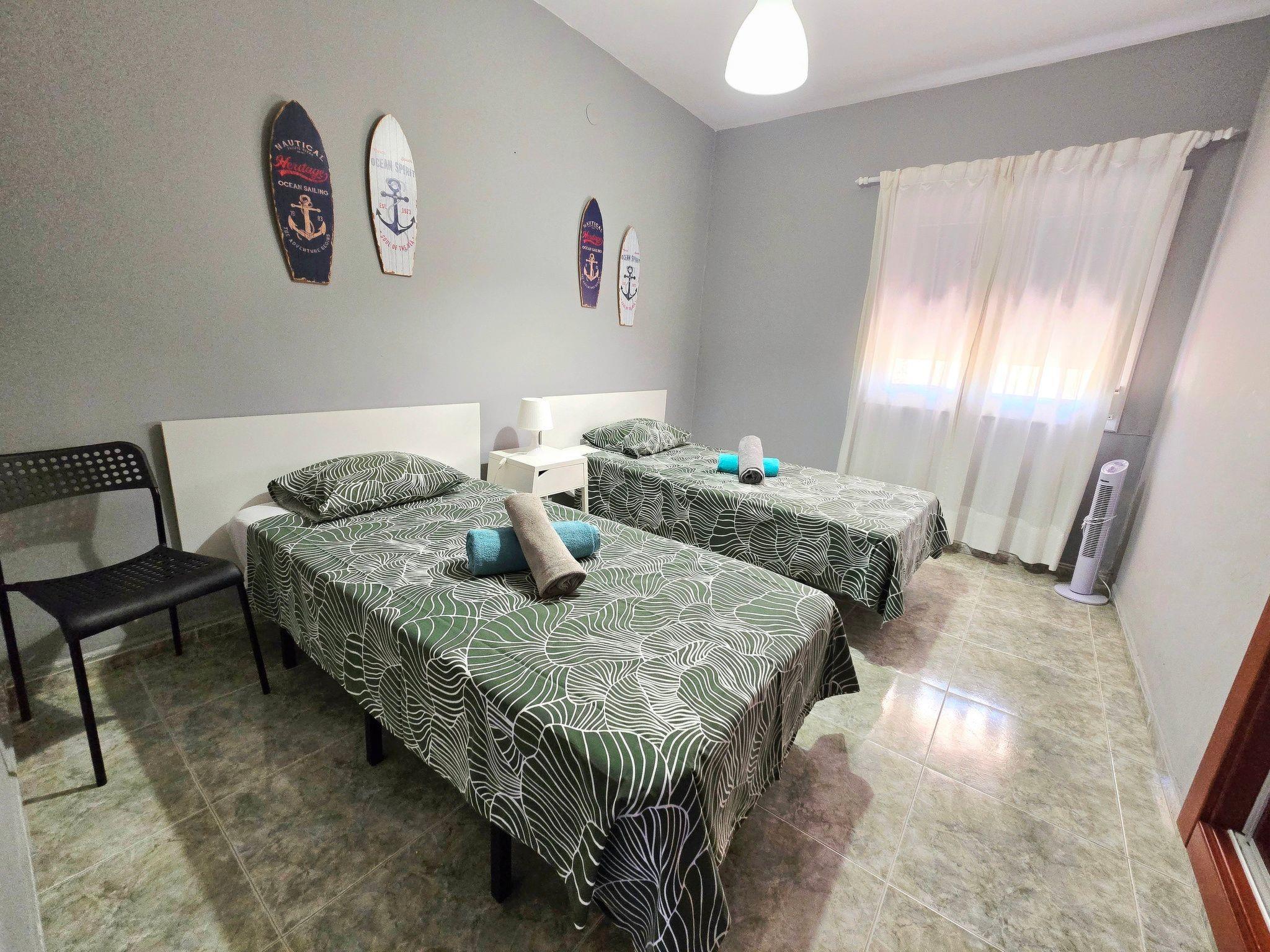 Zwei Schlafzimmer mit je zwei Einzelbetten.
