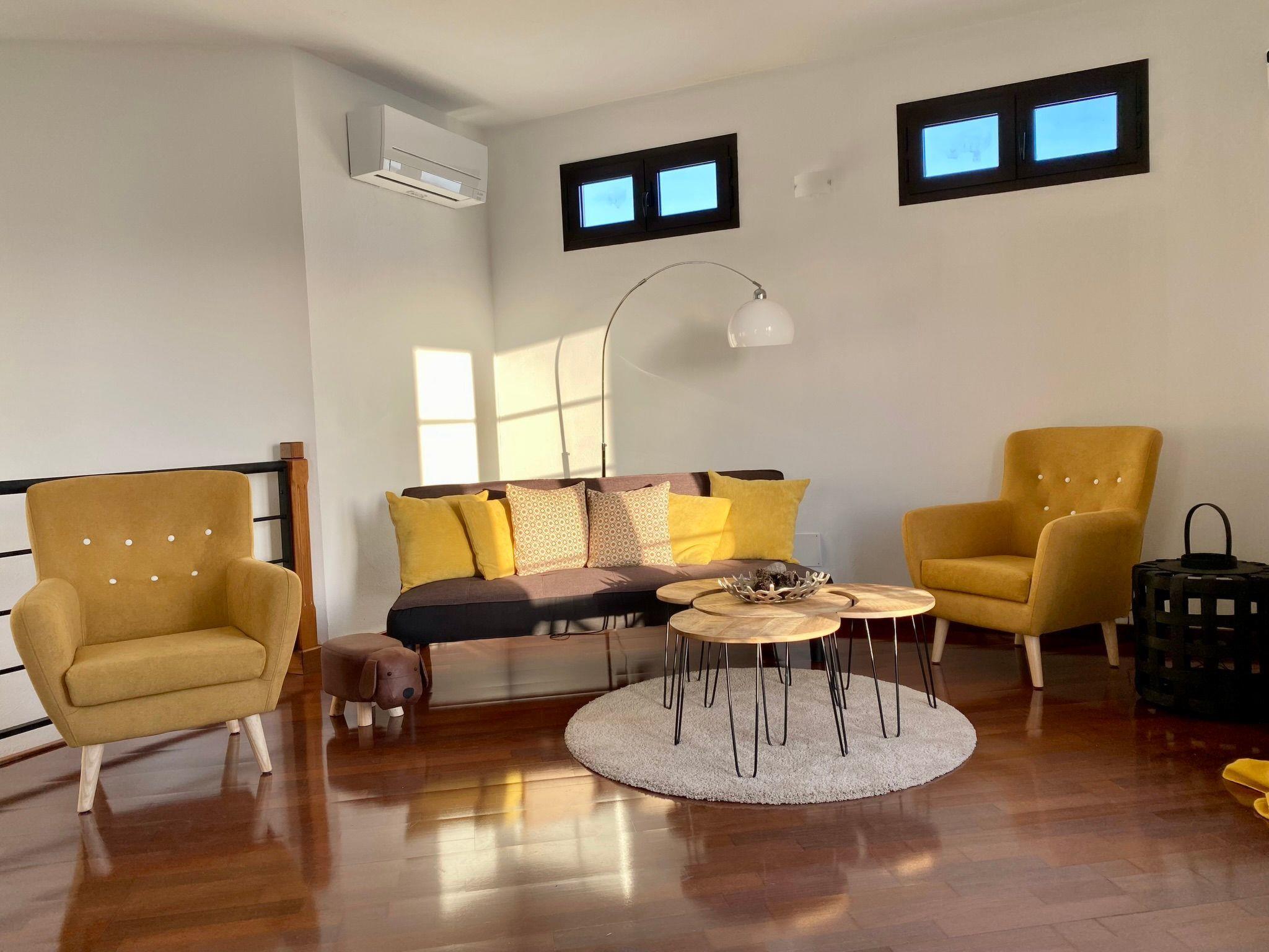 Das geschmackvoll eingerichtete Ferienhaus erstreckt sich über zwei Ebenen und ist mit allem Komfort ausgestattet. Die klimatisierten Schlafzimmer mit Doppelbetten garantieren hohen Schlafkomfort, wobei das Masterschlafzimmer im oberen Stockwerk zusätzlich durch einen großzügigen Ankleidebereich und ein en-suite Badezimmer mit ebenerdiger Dusche besticht. Im Erdgeschoss lädt der geräumige Wohn- und Essbereich zum gemeinsamen Verweilen ein, angrenzend befindet sich die moderne Küche mit Kochinsel und hochwertigen Elektrogeräten. Sowohl im Wohnbereich als auch im Masterschlafzimmer sorgen Fernsehgeräte mit deutschsprachigen und spanischen Programmen für Unterhaltung.