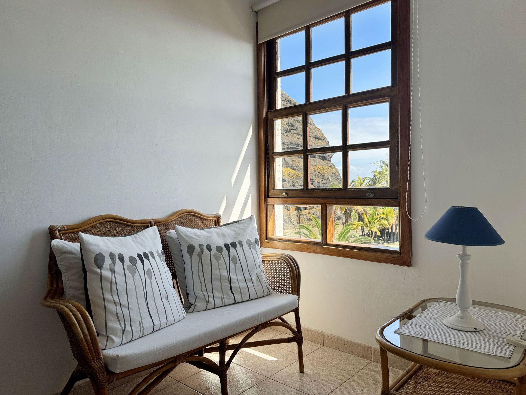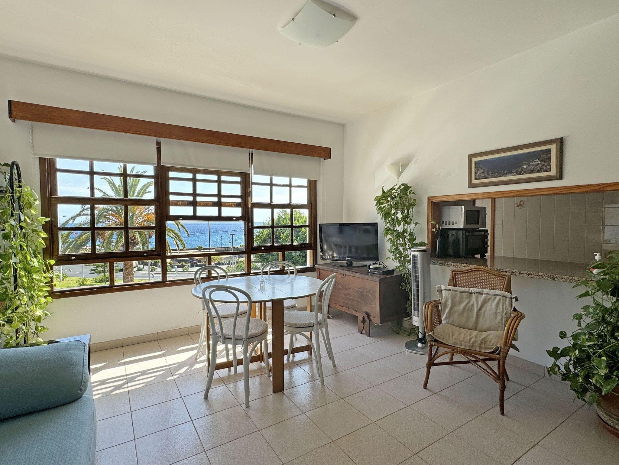 Das Maisonette Apartment Duplex Orion befindet sich im ersten und zweiten Stock des Gebäudes Edificio Orion am Ortsrand von Puerto de Tazacorte. Das Apartmenthaus liegt nur etwa 100 Meter vom großen Sandstrand entfernt. Die großzügige, zweistöckige Wohnung besticht durch ihre Nähe zum Strand, die den fehlenden Balkon wettmacht.