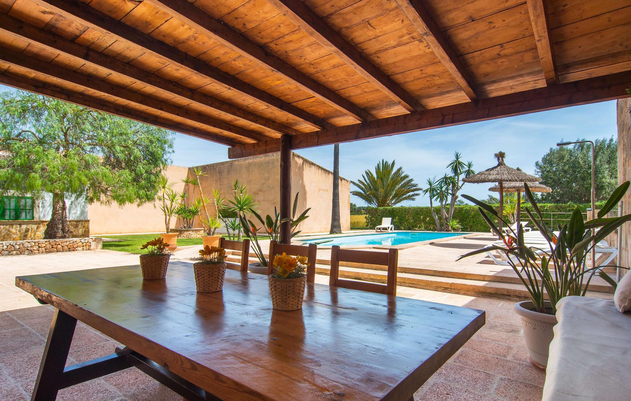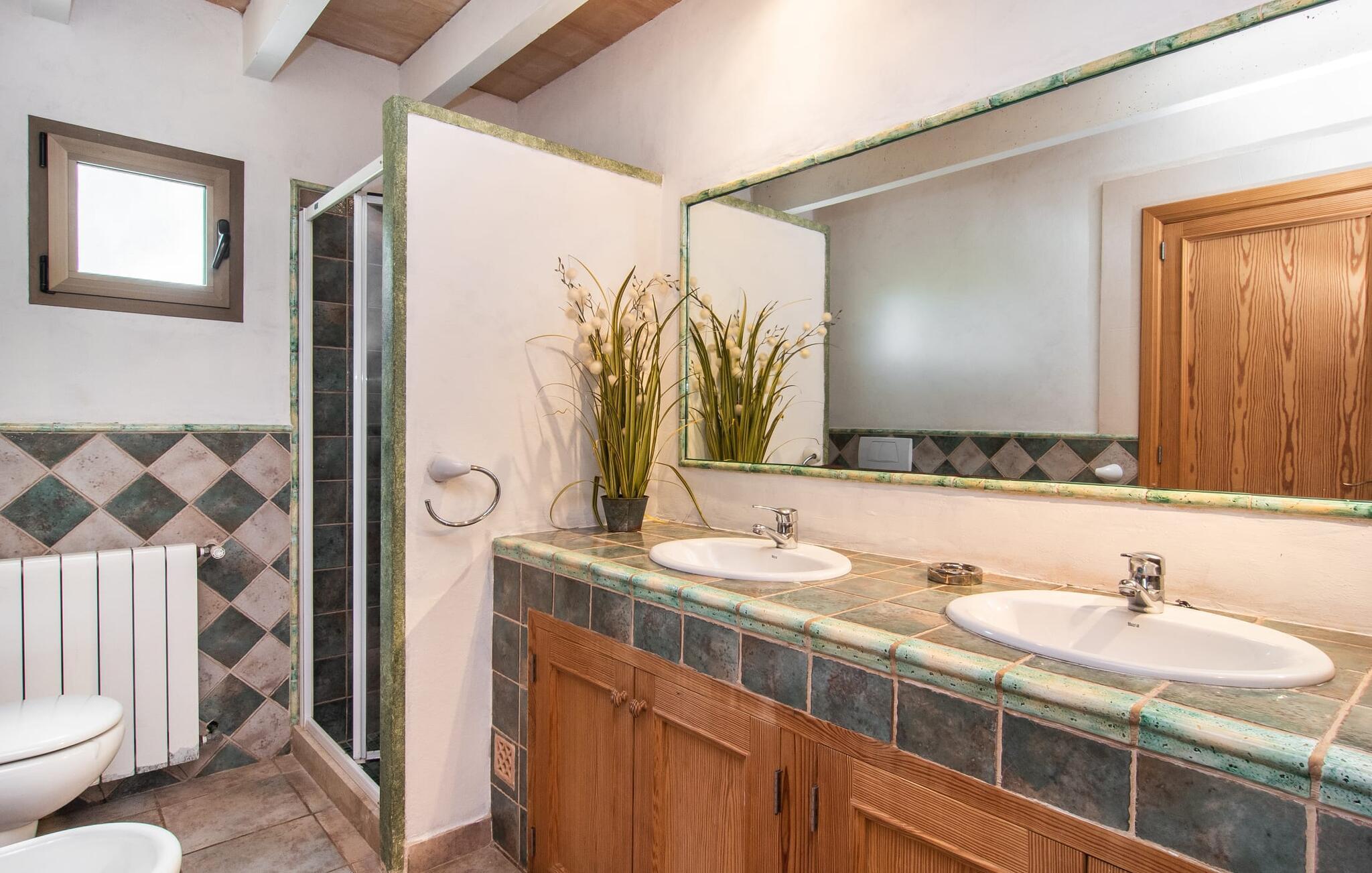 Das gemütliche Interieur empfängt Sie mit klassischer mallorquinischer Rustikalität. Es gibt eine voll ausgestattete Küche mit Essbereich, ein Wohnzimmer, vier geräumige Doppelschlafzimmer, ein Kinderschlafzimmer mit Etagenbett und zwei Badezimmer. Sowohl im Wohnbereich als auch in den Schlafzimmern gibt es Klimaanlagen mit Heizfunktion.