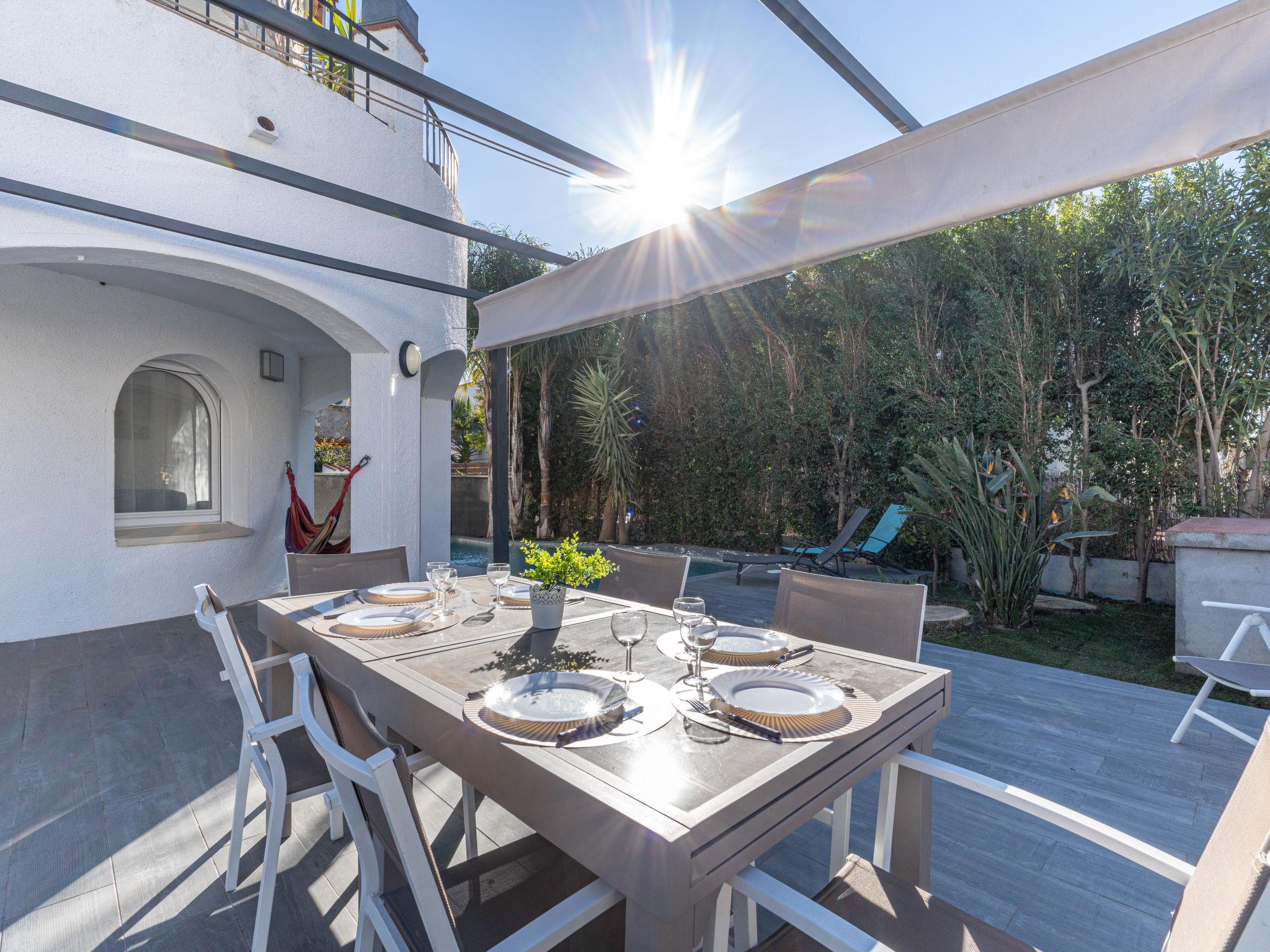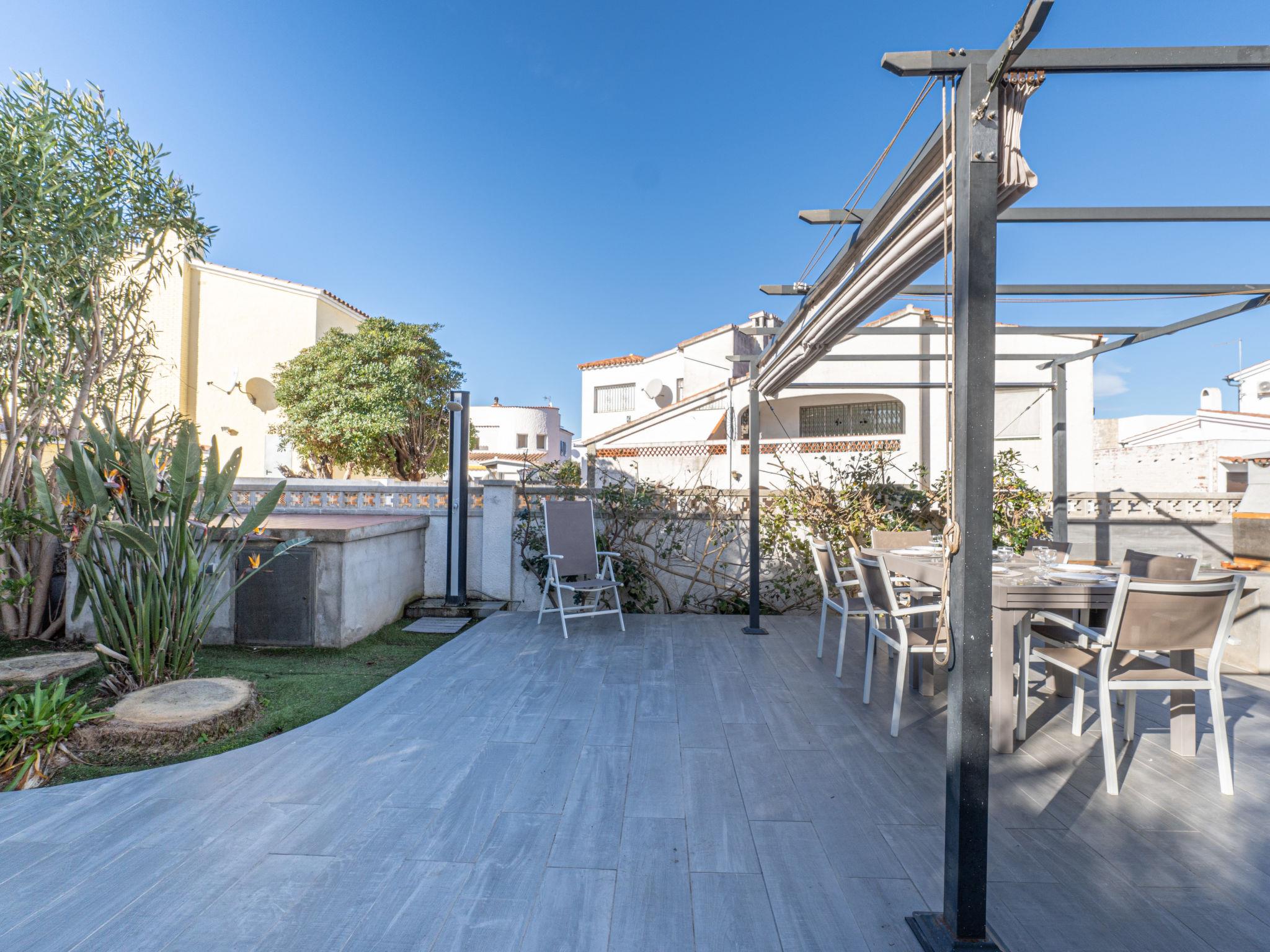 Modernes, gemütliches, komfortables Zweifamilienhaus "Dreams". Im Ortsteil Montgri, 450 m vom Zentrum von Empuriabrava, ruhige, sonnige Lage im Villenviertel, verkehrsberuhigte Zone, 800 m vom Meer, vom Strand, 300 m vom Fluss, in einer Sackgasse. Zur Alleinbenutzung: Grundstück (eingezäunt), schöner, gepflegter Garten mit Pflanzen, Schwimmbad eckig (3 x 6 m, 110 - 140 cm tief, saisonale Verfügbarkeit: 01.Apr. - 30.Okt.) mit Innentreppe. Aussendusche, Pergola, Terrasse, Gartenmöbel, Grill. Im Hause: Waschmaschine. Parkplatz auf dem Grundstück. Einkaufsgeschäft, Lebensmittelgeschäft 300 m, Supermarkt 1 km, Einkaufszentrum 800 m, Restaurant, Bar, Bäckerei 300 m, Café 300 m, Fußgängerzone 200 m, Fahrradverleih 500 m, Bushaltestelle 300 m, Sandstrand "Empuriabrava" 800 m. Sporthafen 1 km, Golfplatz (18 Loch) 15 km, Surfschule 800 m, Segelschule, Tennis 2 km, Minigolf 800 m, Wanderwege ab Haus 100 m, Radweg. Nahe gelegene Sehenswürdigkeiten: Túnel del viento y skydive Empuriabrava 2 km, Parque Acuático Roses 8 km, Casino y festival de Peralada 12 km, Museo Dalí Figueres 15 km, Ruïnes de Empuries 21 km, Monasterio de Sant Pere de Rodes 23 km. Wandergebiete: Cadaqués / Cap de Creus 20 km. Der Besitzer akzeptiert keine Jugendgruppen. Die Schlüsselübergabe findet bei der Agentur Interhome in Empuriabrava statt.