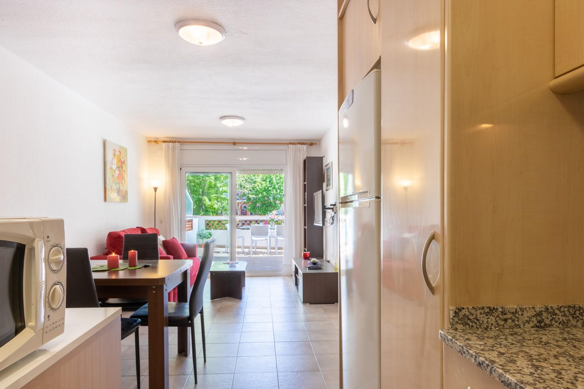 Dieses helle Apartment im ersten Stock bietet einen stilvollen und familienfreundlichen Aufenthalt im Herzen von Empuriabrava und ist ideal für bis zu fünf Gäste. Mit zwei gut ausgestatteten Schlafzimmern – eines mit Doppelbett, das andere mit zwei Einzelbetten – sowie einem Schlafsofa im Wohnbereich ist das 50 m² große Apartment ideal für Familien oder kleine Gruppen. Es verfügt über eine geräumige private Terrasse, Klimaanlage im gesamten Gebäude, Satellitenfernsehen (Spanisch, Deutsch, Französisch) und Highspeed-WLAN. Haustiere sind in der Unterkunft nicht erlaubt. Kurtaxe und optionale Extras werden separat berechnet. Das Apartment liegt günstig, nur 370 Meter vom Sandstrand von Empuriabrava und nur 200 Meter von Supermärkten und Geschäften entfernt und bietet einfachen Zugang zu wichtigen Annehmlichkeiten. Gäste können nahegelegene Sehenswürdigkeiten wie den Wasserpark Aquabrava (9 km), den Golfplatz Peralada (16 km) und den AVE/TGV-Bahnhof Figueres (20 km) erkunden. Der Flughafen Girona ist 65 km entfernt und somit eine ausgezeichnete Wahl für Inlands- und Auslandsreisende. Die moderne offene Küche ist komplett ausgestattet mit Cerankochfeld, Kühlschrank, Mikrowelle, Backofen, Gefrierschrank, Geschirrspüler, Kaffeemaschine, Toaster sowie sämtlichem notwendigen Kochgeschirr und Besteck. Eine Waschmaschine und ein Bügeleisen sorgen für zusätzlichen Komfort. Die Zentralheizung des Apartments sorgt das ganze Jahr über für Komfort und macht es zu einem idealen Ausgangspunkt für Strandurlaube oder die Erkundung der Costa Brava.