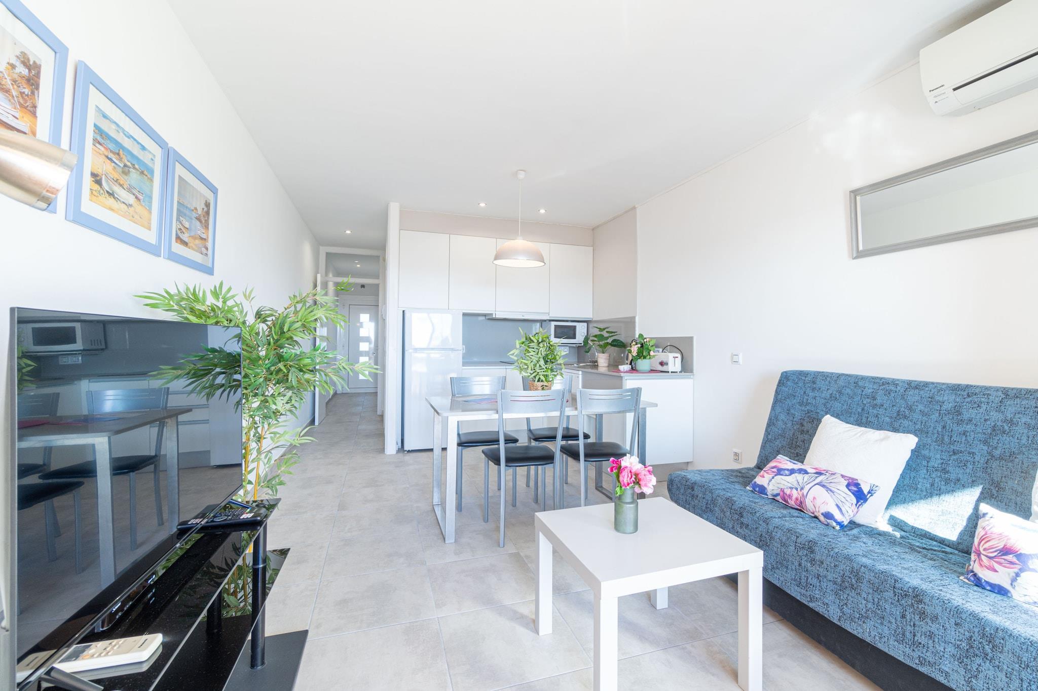 Dieses moderne und gemütliche 1-Zimmer-Apartment in Empuriabrava ist ideal für Paare oder kleine Familien und bietet bequem Platz für bis zu 4 Gäste. Mit 35 m² Wohnfläche und direktem Meerblick liegt es nur 50 Meter vom Sandstrand und 300 Meter von einem Supermarkt entfernt. In einer ruhigen, familienfreundlichen Gegend direkt am Meer gelegen, bietet das Apartment einen erholsamen Rückzugsort an der Küste und alles, was Sie für einen komfortablen Aufenthalt benötigen. Das Apartment verfügt über ein Schlafzimmer mit Doppelbett und ein Doppelschlafsofa im Wohnbereich. Die offene Küche ist komplett ausgestattet mit Cerankochfeld, Mikrowelle, Kühlschrank, Geschirrspüler, Waschmaschine, Kaffeemaschine und Küchenutensilien. Freuen Sie sich auf eine private Terrasse mit Gartenmöbeln, Sat-TV, WLAN und Klimaanlage im Wohnzimmer. Ein Außenparkplatz ist im Preis inbegriffen. Das Apartment befindet sich im Erdgeschoss und ist somit leicht zu erreichen. Haustiere sind auf Anfrage erlaubt. Das Apartment liegt zudem in der Nähe lokaler Sehenswürdigkeiten wie dem Golfplatz Peralada (16 km), dem AVE/TGV-Bahnhof Figueres (20 km) und dem Flughafen Girona (65 km). Mit seiner Strandlage, den praktischen Annehmlichkeiten und der einladenden Atmosphäre ist dieses Apartment eine hervorragende Wahl für einen erholsamen und günstigen Urlaub in Empuriabrava.
