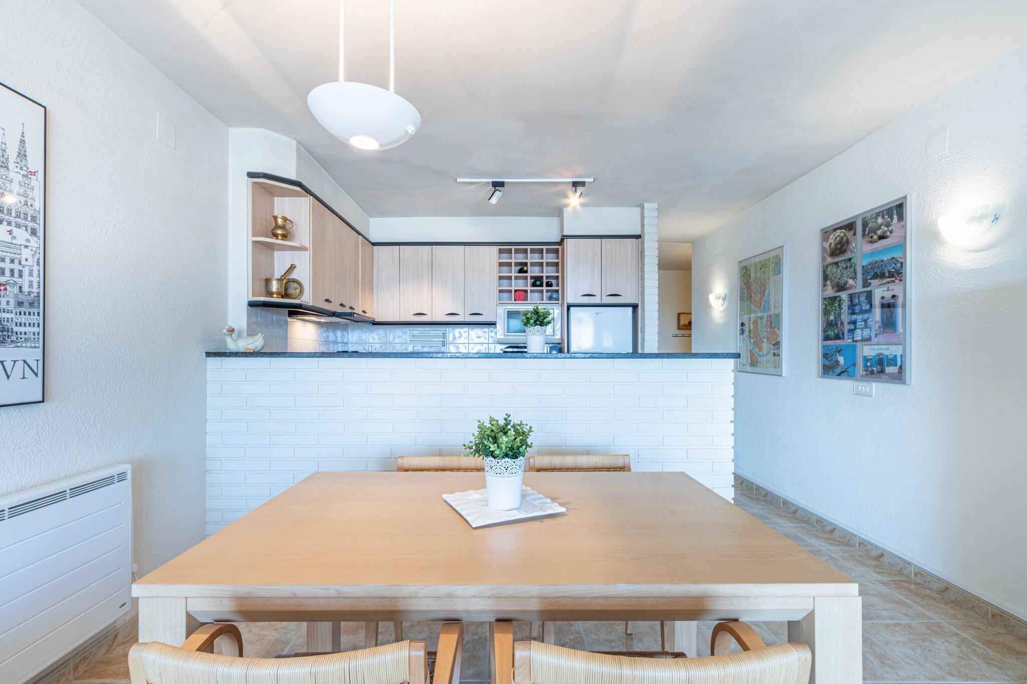 Dieses helle und komfortable Apartment in Empuriabrava bietet einen erholsamen Aufenthalt für bis zu 5 Gäste. Mit zwei Schlafzimmern und einem zusätzlichen Bett im Gemeinschaftsbereich ist das 58 m² große Apartment ideal für Familien oder kleine Gruppen. Es liegt nur 1 km vom Strand und 600 m von einem Supermarkt entfernt und verfügt über eine private Terrasse mit herrlichem Meerblick. Es befindet sich in einer ruhigen, familienfreundlichen Gegend in der Nähe von Geschäften und Restaurants. Das Apartment verfügt über eine offene Küche mit Cerankochfeld, Mikrowelle, Geschirrspüler, Kaffeemaschine, Toaster und Wasserkocher. Annehmlichkeiten wie WLAN, Sat-TV, eine Waschmaschine und ein Aufzug sorgen für bequemen Zugang zur Wohnung im vierten Stock. Drei Ventilatoren und eine Elektroheizung sorgen für Komfort zu jeder Jahreszeit. Haustiere sind nicht erlaubt. Dank der günstigen Lage in der Nähe des Wasserparks Aquabrava (8 km), des Golfplatzes Peralada (16 km), des AVE/TGV-Bahnhofs Figueres (20 km) und des Flughafens Girona (65 km) bietet das Apartment einen idealen Ausgangspunkt für Erkundungstouren an der Costa Brava. Eine erstattbare Kaution ist erforderlich. Optionale Leistungen wie Bettwäsche, Handtücher und Endreinigung sind verfügbar. In der Nebensaison ist ein flexibler Check-in möglich. Bei späterer Anreise ist ein sicherer Schlüsselkasten vorhanden.