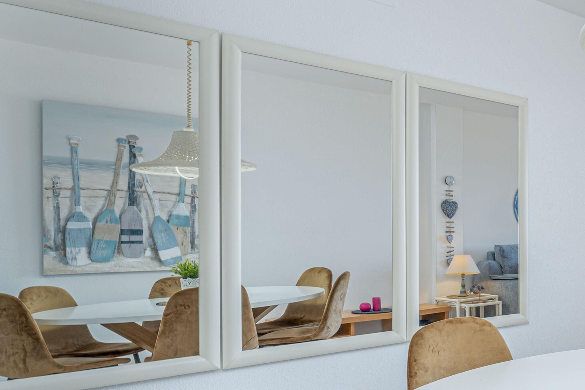 Dieses geräumige und elegante Apartment in Empuriabrava bietet mit 103 m² Wohnfläche einen komfortablen Aufenthalt für bis zu sechs Gäste. Es befindet sich im 3. Stock und verfügt über drei Schlafzimmer – zwei mit Doppelbetten und eines mit zwei Einzelbetten – und ist somit ideal für Familien oder Gruppen. Das Highlight des Apartments ist die 15 m² große Terrasse mit herrlichem Meerblick, ideal zum Genießen von Mahlzeiten oder Entspannen an der Küste. Die offene Küche ist komplett ausgestattet mit Cerankochfeld, Kühlschrank, Mikrowelle, Backofen, Geschirrspüler, Kaffeemaschine, Toaster und Waschmaschine. Gäste genießen modernen Komfort wie WLAN, Sat-TV, Klimaanlage im Wohnzimmer und einigen Schlafzimmern sowie eine Wärmepumpenheizung. Das Gebäude verfügt über einen Aufzug, und zur Wohnung gehört ein überdachter Parkplatz im selben Gebäude. Ein Gemeinschaftspool steht den Gästen ebenfalls zur Verfügung. Nur 50 Meter vom Sandstrand entfernt und in der Nähe von Restaurants, Geschäften und einem Supermarkt gelegen, ist das Apartment ideal für einen erholsamen Urlaub am Meer. Lokale Sehenswürdigkeiten wie der Golfplatz Peralada (16 km), das Dalí-Museum in Figueres (20 km) und der Flughafen Girona (65 km) sind bequem erreichbar. Dank seiner erstklassigen Lage und der hervorragenden Ausstattung ist dieses Apartment die perfekte Wahl für einen stilvollen Küstenurlaub.
