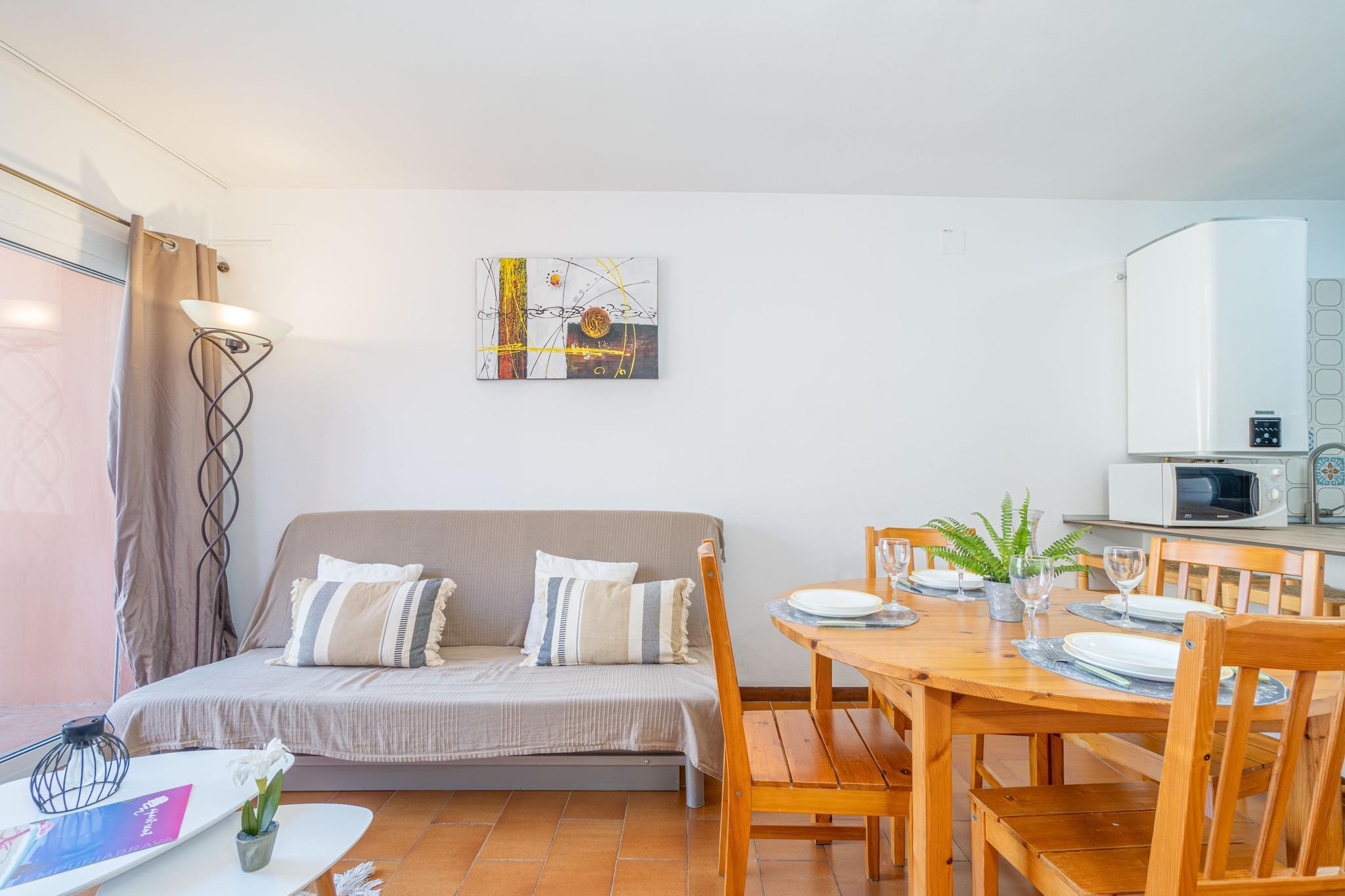 Dieses helle und komfortable 51 m² große Apartment in Empuriabrava ist ideal für Familien oder kleine Gruppen und bietet Platz für bis zu 5 Personen. Es befindet sich im zweiten Stock und verfügt über zwei Schlafzimmer mit Doppelbetten und ein Einzelschlafsofa im Wohnbereich. Eine private Terrasse mit Gartenmöbeln lädt nach einem Tag am nur 300 Meter entfernten Strand zum Entspannen ein. Die offene Küche ist komplett ausgestattet mit Cerankochfeld, Kühlschrank, Mikrowelle, Waschmaschine, Kaffeemaschine, Toaster und Wasserkocher – ideal für die Zubereitung von Mahlzeiten zu Hause. Das Apartment verfügt über Klimaanlage, WLAN (inklusive), Fernseher und Wärmepumpenheizung für ganzjährigen Komfort. Gästen steht außerdem ein Gemeinschaftspool (gegen Aufpreis) und optional ein überdachter Parkplatz in einem nahegelegenen Gebäude zur Verfügung. Die günstige Lage in der Nähe eines Supermarkts (150 m), des Flusses Muga und des Naturparks Aiguamolls de l’Empordà macht das Apartment zum idealen Ausgangspunkt für Strandtage und Ausflüge in die Natur. Lokale Sehenswürdigkeiten wie Castelló d’Empúries (6 km), der Wasserpark Aquabrava (12 km) und das Dalí-Museum in Figueres (20 km) sind leicht erreichbar. Der Flughafen Girona ist 65 km entfernt und somit ein idealer Ausgangspunkt für die Erkundung der Costa Brava.