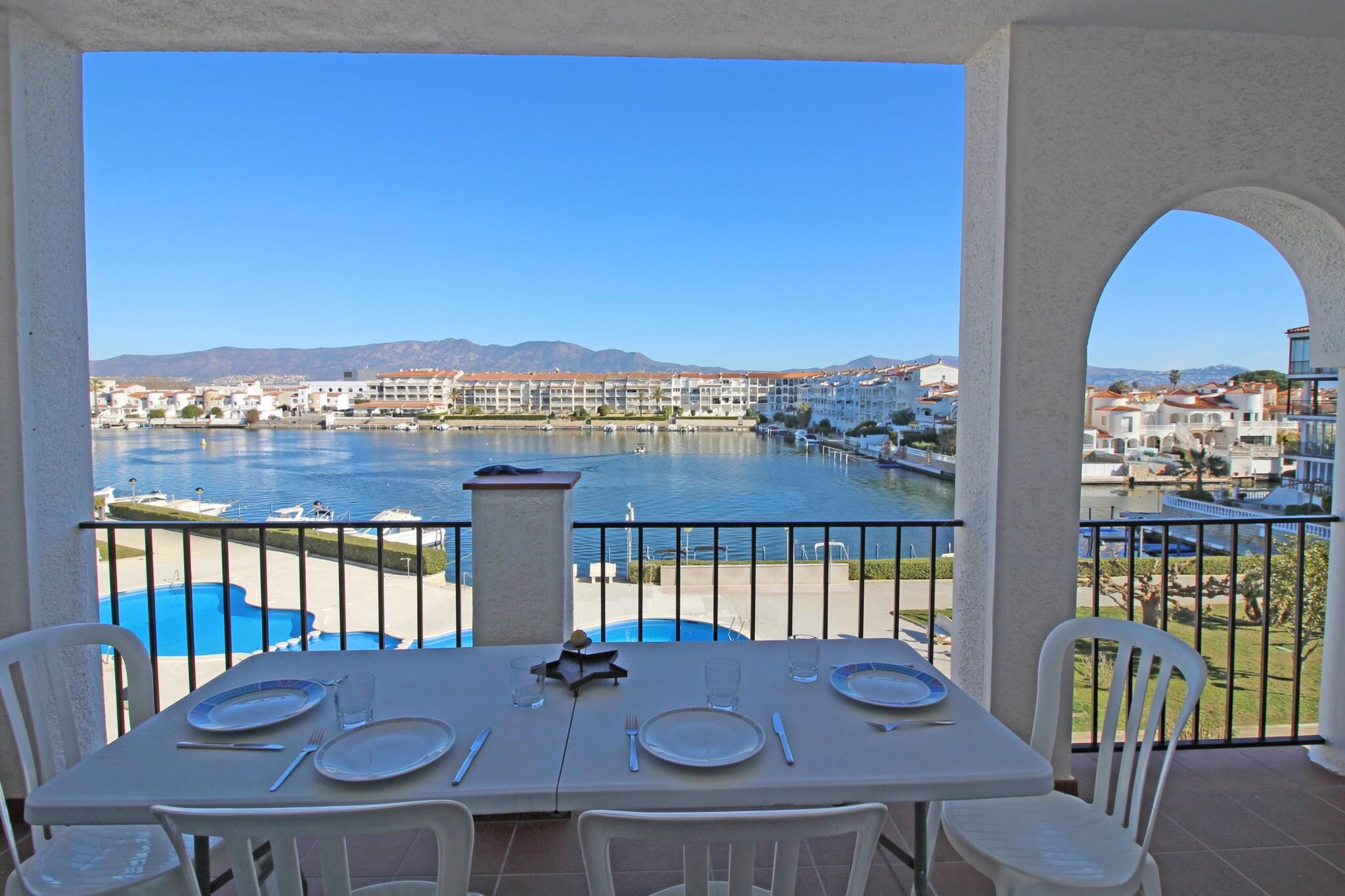 Dieses komfortable, 72 m² große Apartment in Empuriabrava ist ideal für Familien oder kleine Gruppen und bietet Platz für bis zu 5 Personen. Es befindet sich im zweiten Stock und verfügt über zwei Schlafzimmer – eines mit Doppelbett, das andere mit Einzelbett und Etagenbett – und ist somit eine hervorragende Wahl für Erwachsene und Kinder. Das Apartment verfügt über eine private Terrasse mit Blick auf den Kanal und den Pool – ideal, um die ruhige Umgebung zu genießen. Die offene Küche ist komplett ausgestattet mit Cerankochfeld, Kühlschrank, Mikrowelle, Backofen, Kaffeemaschine, Toaster und allen notwendigen Utensilien. Gäste können moderne Annehmlichkeiten wie WLAN, Klimaanlage im Wohnzimmer, Wärmepumpenheizung, Waschmaschine und Fernseher genießen. Die Anlage bietet außerdem einen Gemeinschaftspool und ein Kinderbecken sowie Parkplätze im Freien und zwei Ventilatoren für zusätzlichen Komfort. Das Apartment liegt in einer ruhigen Wohngegend, nur 700 m von einem Supermarkt und 3 km vom Sandstrand entfernt. Es liegt außerdem in der Nähe lokaler Sehenswürdigkeiten wie dem Golfplatz Peralada (16 km), dem Dalí-Museum in Figueres (20 km) und dem Flughafen Girona (65 km). Mit seiner malerischen Aussicht, der familienfreundlichen Raumaufteilung und der günstigen Lage ist dieses Apartment ein idealer Ausgangspunkt für einen erholsamen Urlaub in Empuriabrava.