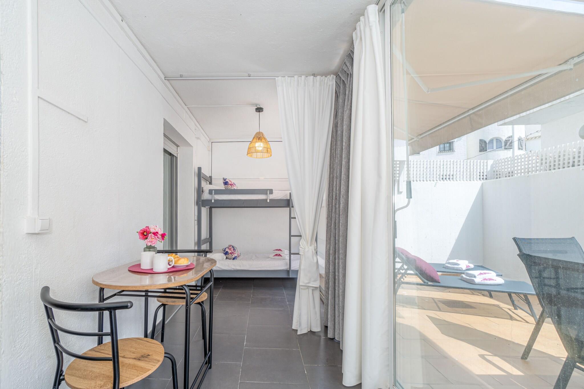 Dieses gemütliche, 55 m² große Apartment im Erdgeschoss in Empuriabrava ist ideal für Paare oder kleine Familien und bietet Platz für bis zu vier Personen. Es verfügt über ein Schlafzimmer mit Doppelbett und ein Etagenbett im Gemeinschaftsbereich und ist somit eine praktische und komfortable Wahl für einen Strandurlaub. Eine private Terrasse mit Gartenmöbeln lädt zum Entspannen im Freien ein, nur 450 Meter vom Sandstrand entfernt. Die offene Küche ist komplett ausgestattet mit Cerankochfeld, Kühlschrank, Mikrowelle, Backofen, Geschirrspüler, Kaffeemaschine und Toaster – ideal für die Zubereitung von Mahlzeiten zu Hause. Das Apartment verfügt außerdem über Klimaanlage, WLAN (inklusive), eine Waschmaschine und Sat-TV mit spanischen, deutschen und französischen Kanälen. Haustiere sind auf Anfrage willkommen, was es zu einer idealen Option für Reisende mit vierbeinigen Begleitern macht. Da das Apartment nur 150 Meter von einem Supermarkt und in der Nähe von Restaurants und Geschäften liegt, eignet es sich hervorragend, um die Umgebung zu erkunden. Zu den Sehenswürdigkeiten in der Nähe zählen der Golfplatz Peralada (16 km), das Dalí-Museum in Figueres (20 km) und der Flughafen Girona (65 km). Dank seiner komfortablen Raumaufteilung und der hervorragenden Lage bietet dieses Apartment einen erholsamen und günstigen Aufenthalt an der Costa Brava.
