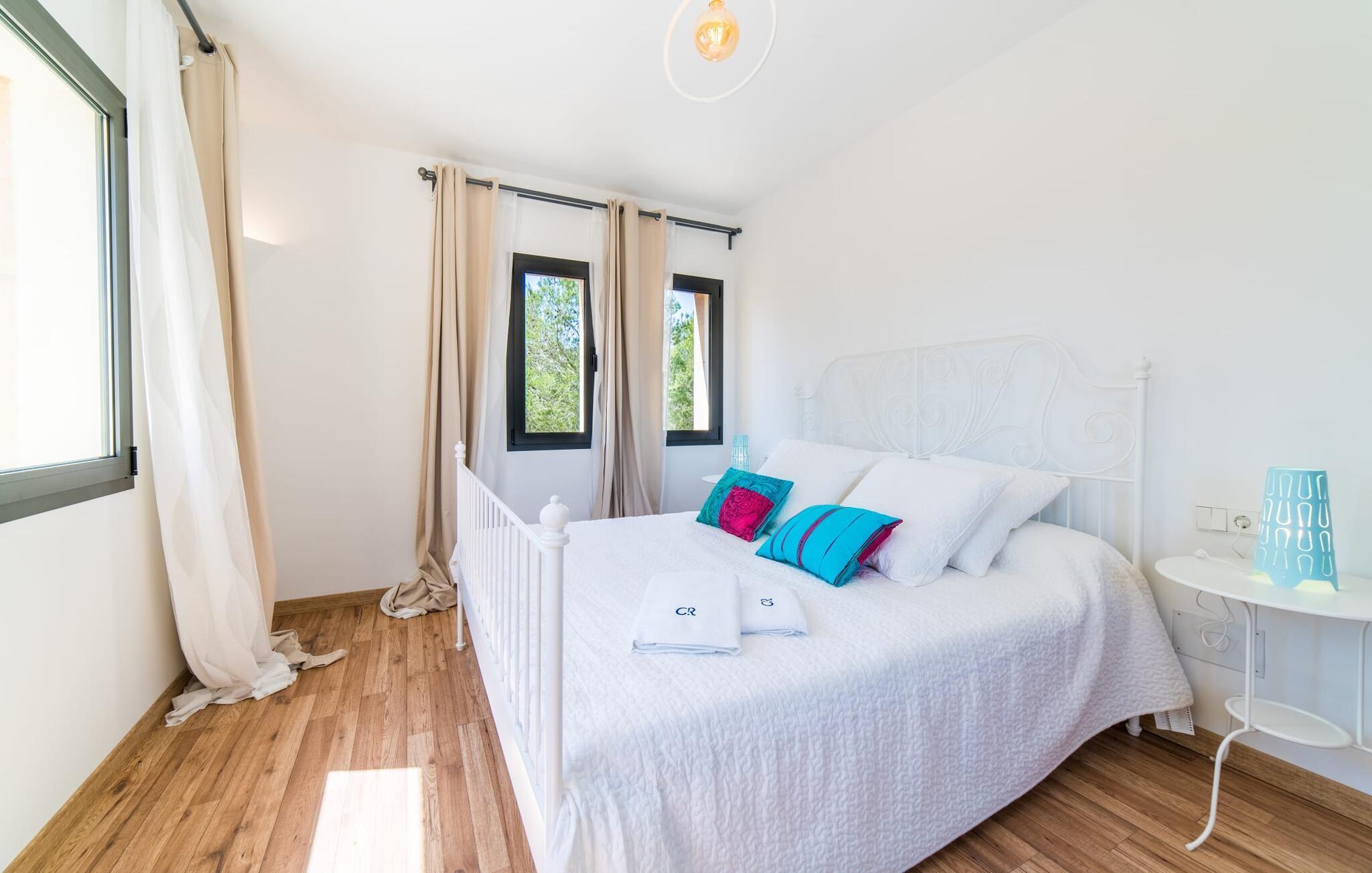Obwohl man einige Einkaufsmöglichkeiten fußläufig erreichen kann, befindet sich das Anwesen in angenehmer Alleinlage mehr oder weniger genau zwischen Felanitx und Portocolom. Aufgrund der Nähe zur Landstraße (die Sie zwar nicht sehen, aber möglicherweise vom Anwesen aus hören können), die die beiden Orte verbindet, können Sie zwischen zahlreichen Ausflugszielen wählen. Sonntags können Sie in Felanitx auf den Markt gehen, der sich in seiner bunten Vielfalt über die ganze Stadt erstreckt. Auch die Hafenstadt Portocolom ist wunderschön, und das nicht nur abends beim Flanieren an der Promenade. Nach einem langen Strandtag an einer der zahlreichen azurblauen Badebuchten können Sie im Fischerort einen Zwischenstopp einlegen und ein erfrischendes Getränk genießen. Wenn Sie gerne Golf spielen, besuchen Sie den weniger als 5 km entfernten Golfplatz Vall D'Or, einen phänomenalen 18-Loch-Platz mit einer angenehmen mediterranen Brise. Kurz gesagt, es erwartet Sie ein wirklich wunderschöner Urlaub im „Entre Pins“. Da sind wir von Fincallorca ganz sicher. Die fabelhafte Designervilla „Entre Pins“ mit tollem Garten und luxuriösem Poolbereich verfügt über eine phänomenale Außenküche und liegt auf einem bewaldeten Hügel. Das faszinierende Anwesen liegt zwischen der charmanten Kleinstadt Felanitx, wo sonntags ein Wochenmarkt stattfindet, und der Hafenstadt Portocolom, wo Sie entlang der Promenade flanieren können. Unglaublich feine Sandstrände wie Cala Marçal und andere tolle Badebuchten sind nur wenige Kilometer entfernt.