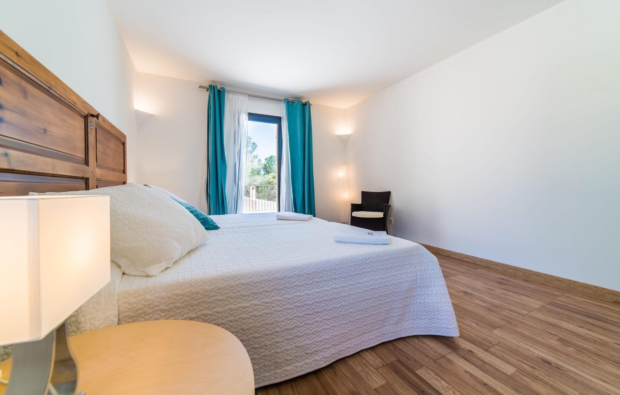 Der Name dieses entzückenden Villenanwesens ist eine Beschreibung der Lage: „Entre Pins“, was nichts anderes bedeutet als „zwischen Pinien“, denn oben thront das opulente Anwesen mit einem wunderschönen Garten- und Poolbereich sowie einer unglaublich luxuriösen Außenküche ein Hügel mitten im Wald. Sowohl vor als auch hinter dem Haus stehen überdachte Terrassen zur Verfügung, die alle mit hochwertigen Möbeln ausgestattet sind. Dadurch entstehen ausgesprochen private und komfortable Sitz- und Essbereiche. Umhüllt vom Duft der Pinien führt eine breite Treppe seitlich am Haus hinunter zu einem makellosen Poolbereich, der keine Wünsche offen lässt. Tiefgrüne Kunstrasenflächen für die Sonnenliegen und das Tagesbett werden durch gegossene Betonbodenplatten ergänzt. Inmitten der Liegewiese erwartet Sie der herrliche Infinity-Pool (selbstverständlich mit Außendusche) – ein Ort, an dem Sie Stunden in Ruhe und Frieden verbringen können. Spielen Sie kurz Tischtennis, erfrischen Sie sich dann noch einmal im Pool und ruhen Sie sich anschließend in der mediterranen Sonne aus. Daran könnte man sich gewöhnen. Wenn Sie Hunger verspüren, begeben Sie sich in die einfach fabelhafte Außenküche, die an den Swimmingpool angrenzt. Es ist überdacht, mit einer langen Arbeitsplatte und einem Grill ausgestattet, bietet aber dennoch ausreichend Platz für einen supergemütlichen Rattan-Loungebereich und einen langen Esstisch – ein perfekter Ort, um den Tag ausklingen zu lassen. Am besten stilvoll genießen mit einem Glas „ÀN“ – Ànima Negra – dem unvergleichlichen mallorquinischen Rotwein aus der Callet-Traube, der Kultstatus erlangt hat. Manchmal fällt es sogar schwer, sich zu entscheiden, wo man sein möchte: im Garten, am Pool, in der Außenküche oder im ebenso beeindruckenden Innenraum der Villa. „Entre Pins“ ist der Inbegriff einer perfekten Mischung aus Stil und Design. Ein Hauch von Industriecharme mit polierten Betonböden im offenen Wohn- und Esszimmer, aber die Schlafzimmer spiegeln die symbiotischen Unterschiede mit warmen Holzböden wider. Moderne Möbel in einem lebendigen Senfton treffen zusammen mit einem eleganten Weißstil und zeitlosen Designklassikern auf einen nostalgischen Siebzigerjahre-Look im Wohnbereich und sogar ein wenig Barock und traditionelle mallorquinische Handwerkskunst in der Lobby und auf der Galerie. Spannender und zugleich vollkommen harmonischer kann Innenarchitektur nicht sein. Gleiches gilt für den sonnigen Küchenbereich mit trendigen mattweißen Schränken, einer Kochinsel und einem Essbereich neben einer Terrassentür. Auf insgesamt 450 m² Wohnfläche sind alle Räume schön lichtdurchflutet und großzügig angelegt. Diese verteilt sich auf das Haupthaus und eine separate Wohnung, die über ein Schlafzimmer mit Doppelbett und ein eigenes Badezimmer verfügt. Übrigens verfügt jedes der geräumigen, klimatisierten Schlafzimmer über ein trendiges En-Suite-Badezimmer mit begehbarem Duschbereich. Das Hauptschlafzimmer ist als Suite konzipiert und verfügt im Obergeschoss über ein Wohnzimmer, in dem sich auch ein Schlafsofa befindet. Dies ist optional buchbar. Außerdem haben Sie vom Obergeschoss aus Zugang zu einem riesigen Balkon mit Blick auf die herrlich bewaldete Umgebung.