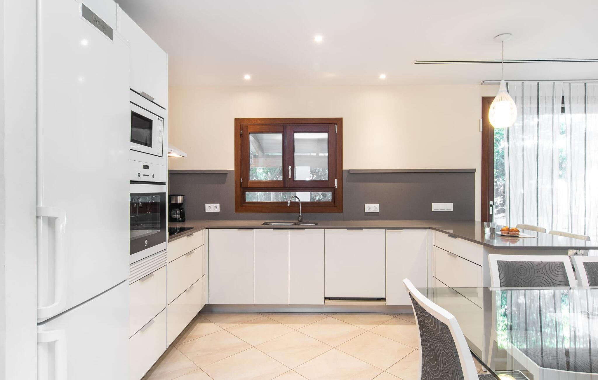 Der Außenbereich der Villa ist von mediterranen Pflanzen umgeben und sorgt für Privatsphäre und eine ruhige Atmosphäre. Zwei überdachte Terrassen bieten viele Möglichkeiten zum Entspannen. Eines verfügt über einen Essbereich mit bequemen, hochwertigen Möbeln in der Nähe des Holzkohlegrills, der sich sowohl zum Frühstück als auch zum Abendessen eignet. Die zweite Terrasse ist eine entspannende Lounge-Ecke, die sich ideal zum Entspannen am Abend eignet. Sonnenliegen stehen zum Sonnenbaden oder für eine erholsame Siesta zur Verfügung.