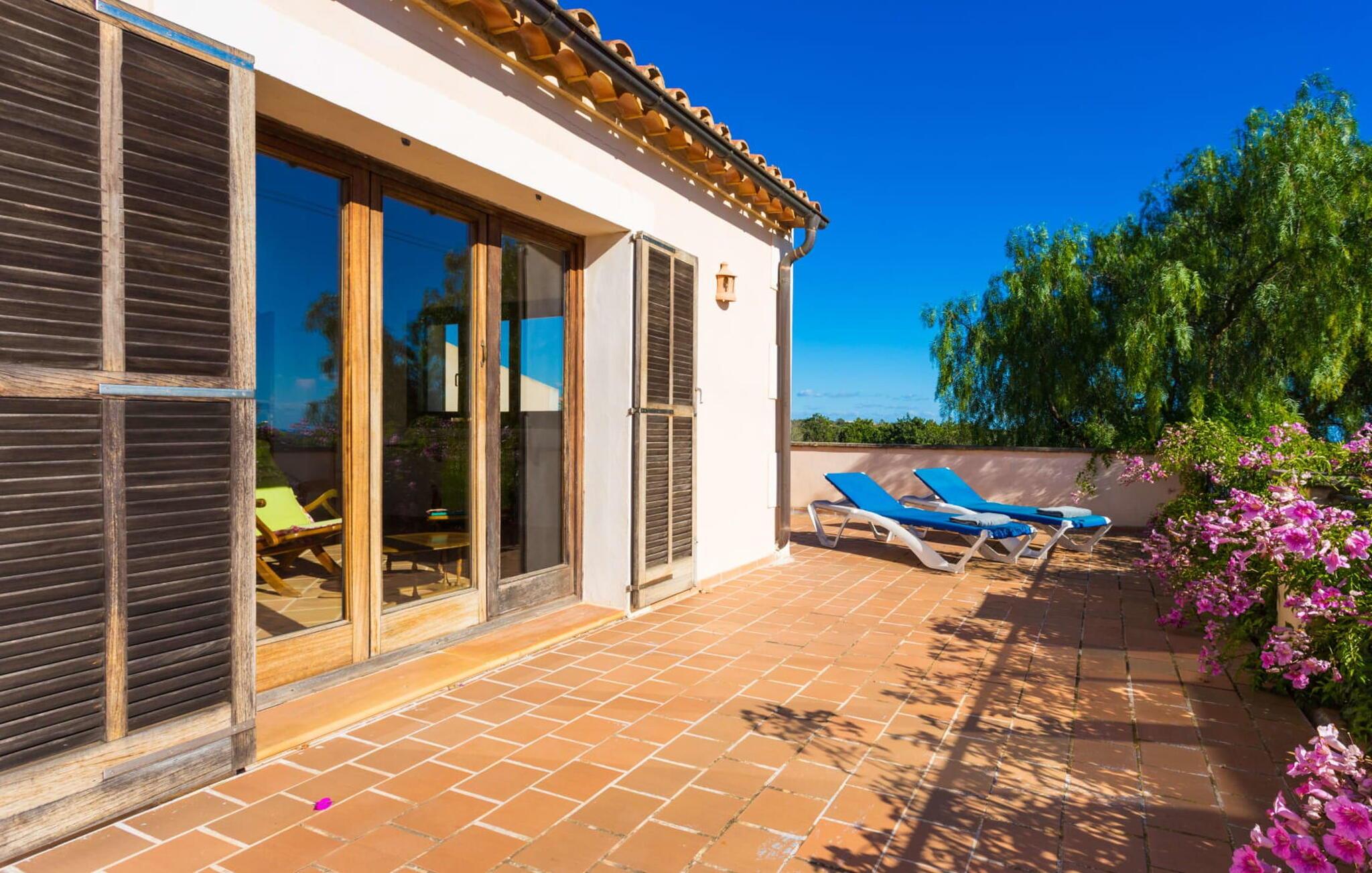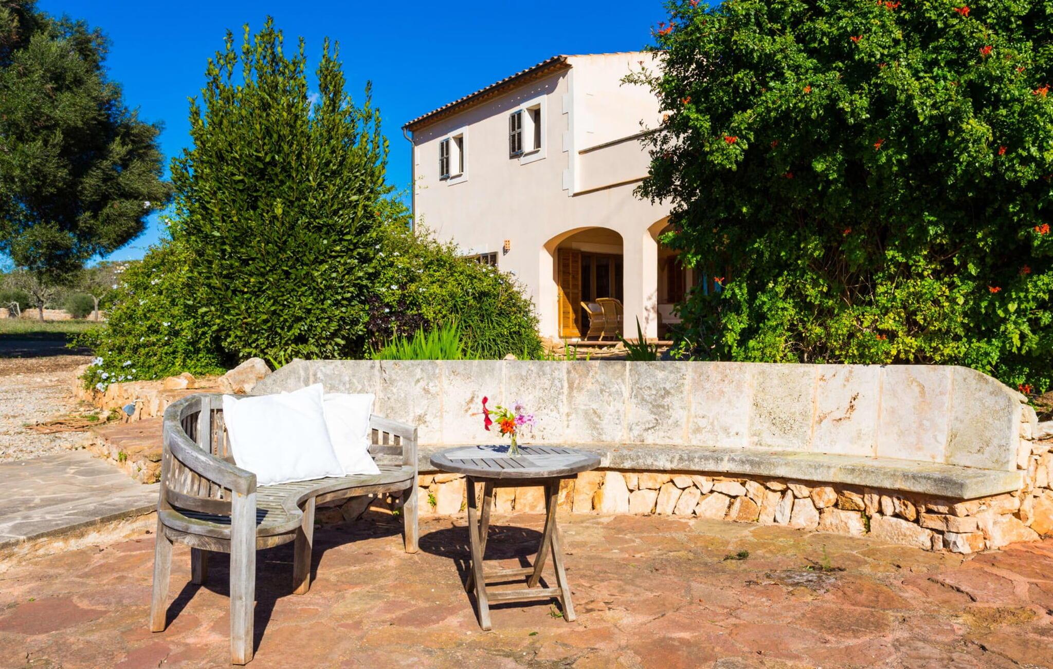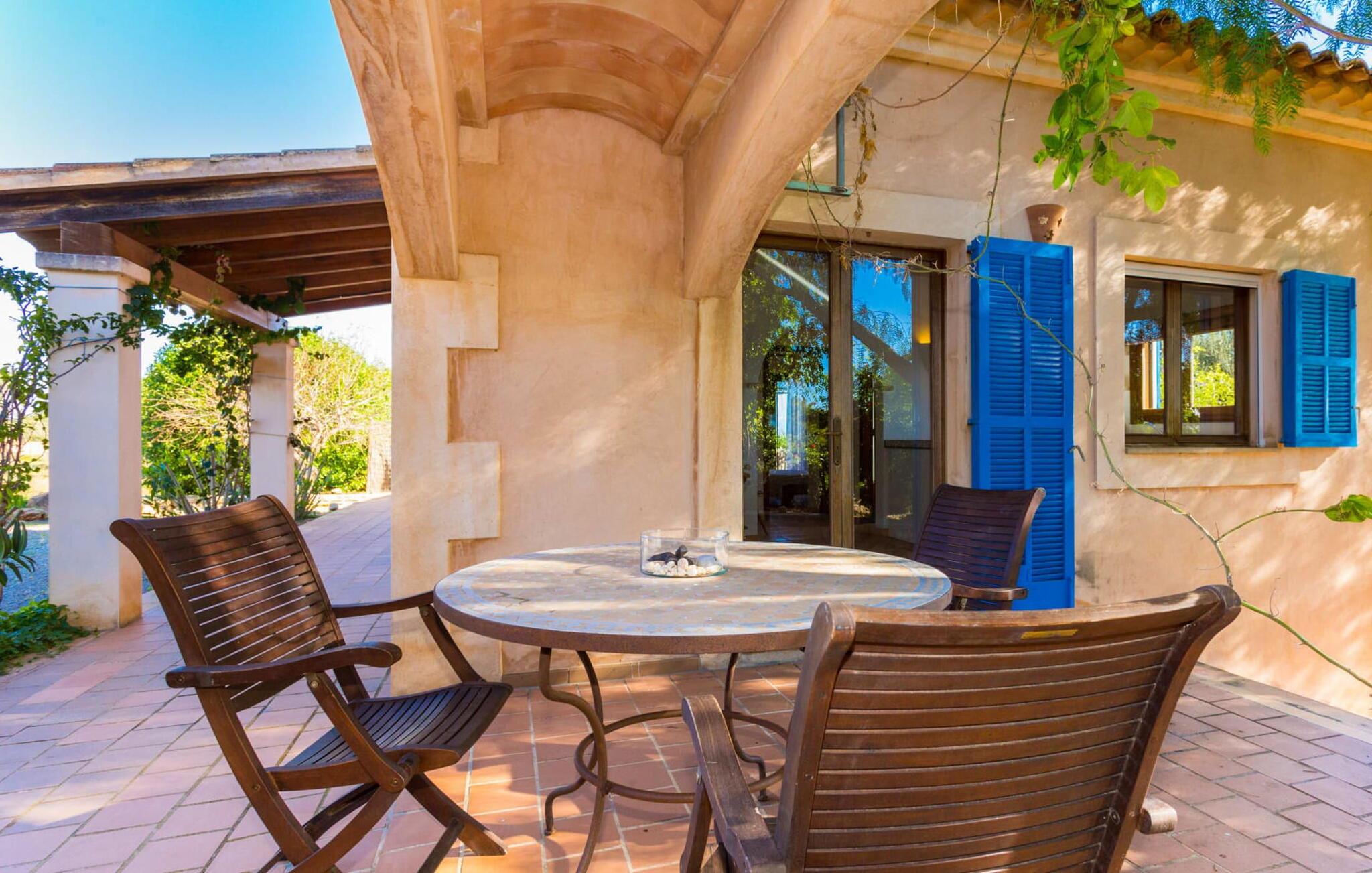 Die zu gleichen Teilen schöne und authentische Villa „Es Camp Fora“ befindet sich auf einem 20.500 m² großen Privatgrundstück mit der typischen Vielfalt der lokalen mallorquinischen Vegetation, überwiegend Mandelbäumen. Das große Haupthaus und die kleine Casita liegen unmittelbar nebeneinander: Die Architektur des Haupthauses vereint Authentizität, und die hell geglättete Casita ist fröhlich und frech mit trendigen Fensterläden und behält dabei eine gewisse Anmut. Im Sommer verbringen Sie die meiste Zeit im Außenbereich auf einer der Terrassen. Auf der nordwestlichen Terrasse vor der Casita zum Beispiel, die den natürlichen Schatten eines Pfefferbaums genießt – hier kann man der Hitze trotzen und sich unter dem schönen, massiven Rundbogen an der Treppe zurückziehen und dabei eine gute Lektüre genießen. Der runde Pool ist nie weit entfernt und bietet eine angenehme Erfrischung. Ein paar Schritte vom großen Haus entfernt, inmitten des äußerst schönen und weitläufigen Gartens, liegt der schöne, strahlend blaue Pool, angrenzend an eine Freiluft-Sonnenterrasse mit bequemem seitlichem Treppenzugang. Auf den umliegenden freien Plätzen können Sie bequem auf den vorhandenen Liegen in der Sonne oder im natürlichen Schatten liegen. Abkühlung finden Sie in der reich verzierten Wanddusche neben dem Pool. Von der Poolterrasse führt ein kleiner Weg zur großen Veranda, von wo aus Sie von einem Platz unter freiem Himmel im luftigen Schatten die herrliche Aussicht genießen können. Die breiten, prachtvollen Rundbögen im mit Vegetation bewachsenen Garten versprühen einen etwas magischen Charme. Weitere erstklassige Aussichtspunkte gibt es auf dem Balkon im ersten Stock – idyllische Weitblicke sind hier garantiert!