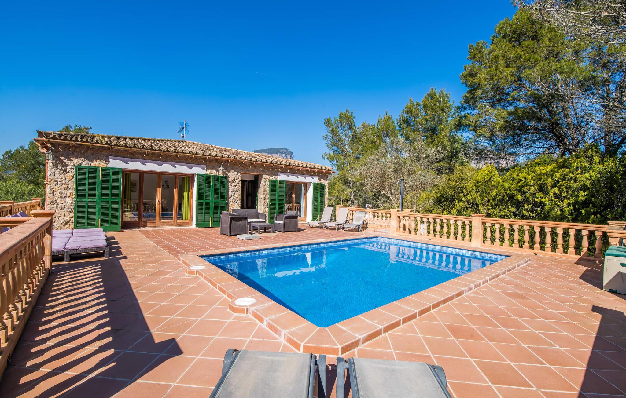 Der Garten verfügt über üppige Rasenflächen zum Spielen, gemütliche Sitzgelegenheiten und eine gut ausgestattete Außenküche für diejenigen, die gerne kochen, alles im Schatten prächtiger Bäume. Das Highlight ist jedoch der Pool, der auf einer erhöhten Sonnenterrasse mit herrlichem Blick auf das Tramuntana-Gebirge liegt – ideal zum Entspannen nach dem Schwimmen. Die Villa liegt in der Nähe von Alaró, einem Paradies für Radfahrer, und bietet unzählige Abenteuerrouten und einen überdachten Parkplatz für Ihre Fahrräder. Auf Anfrage können Sie Ihr eigenes Fahrrad mitbringen oder die Ausrüstung vom Eigentümer ausleihen.