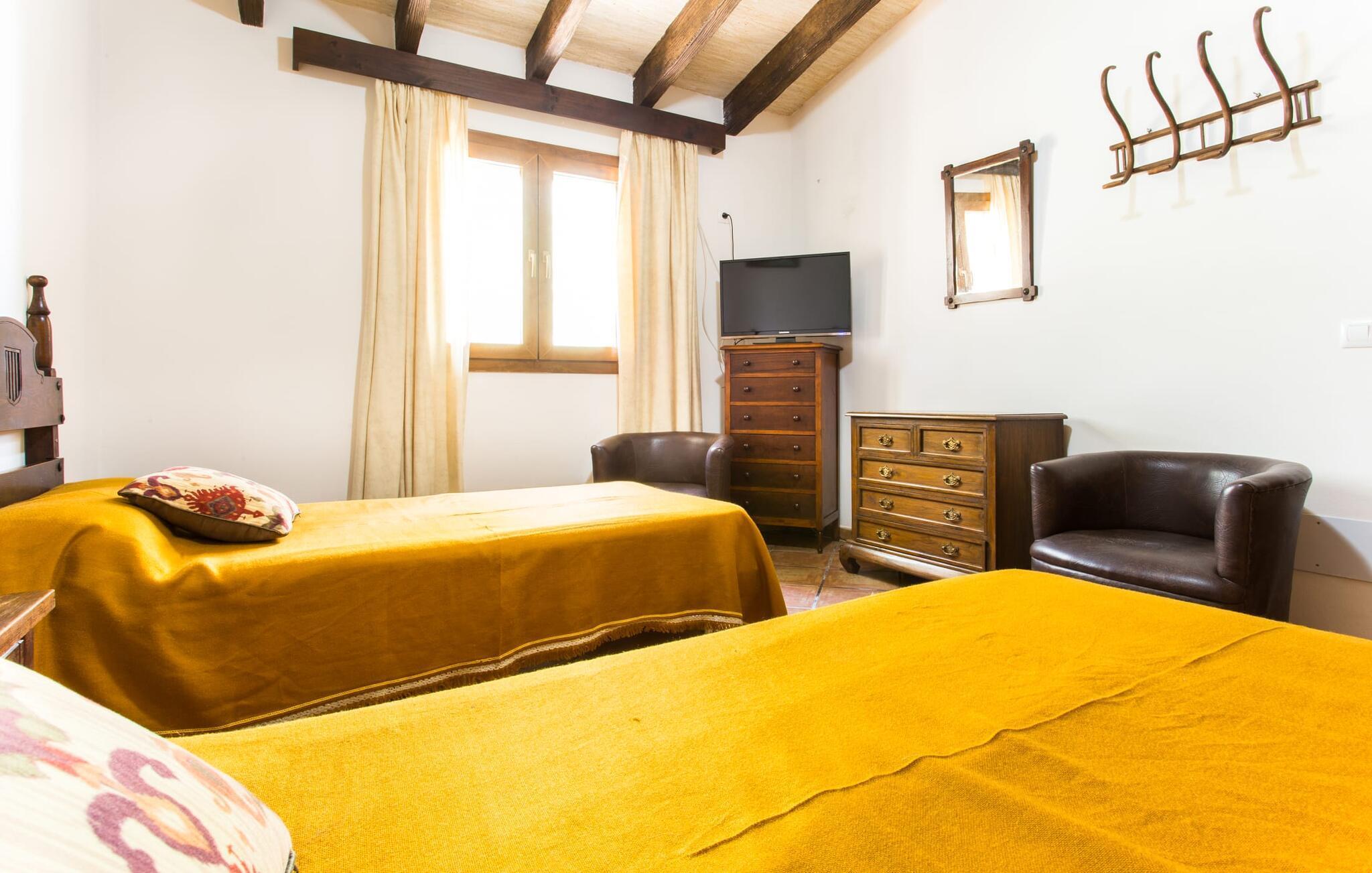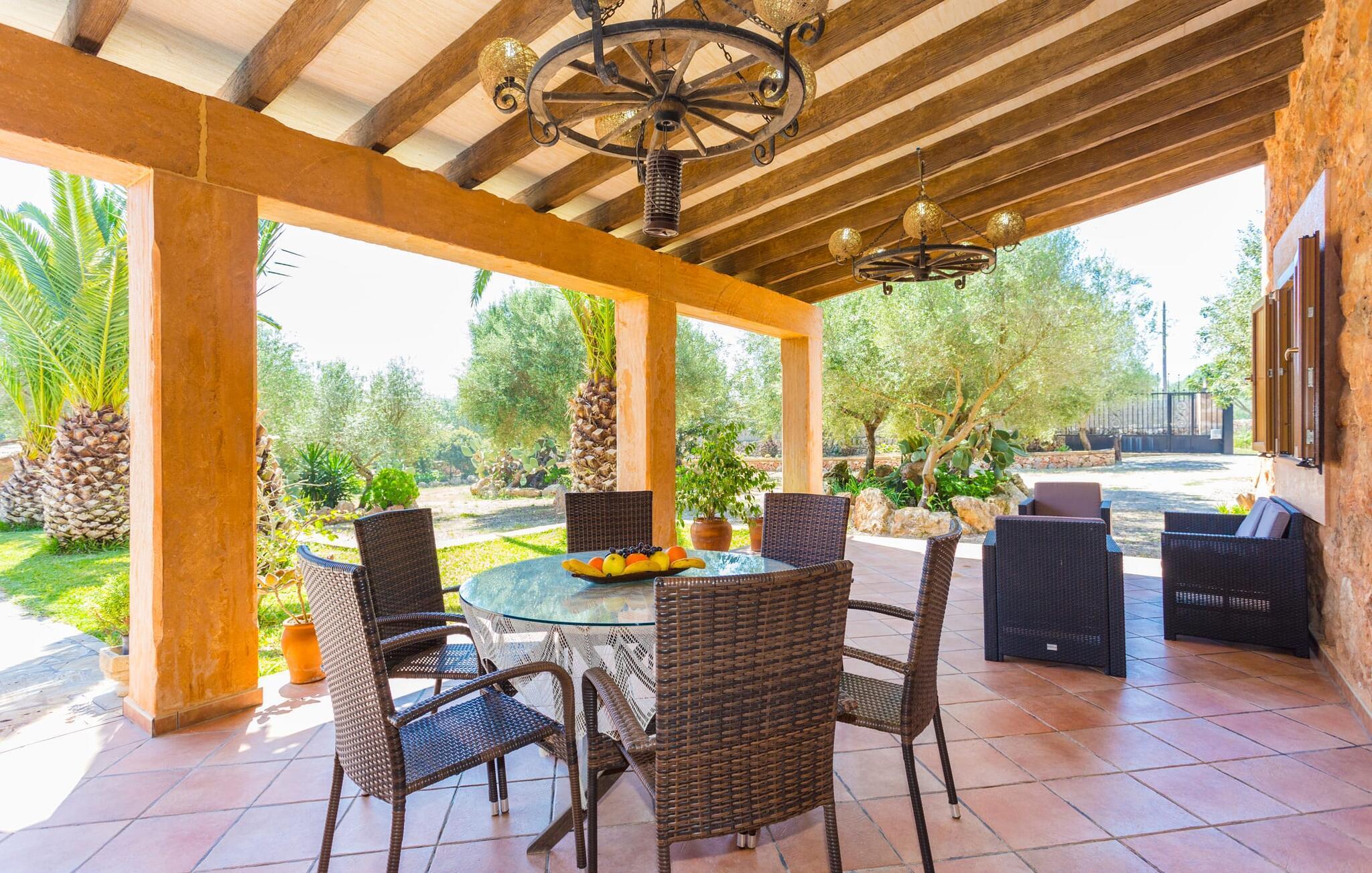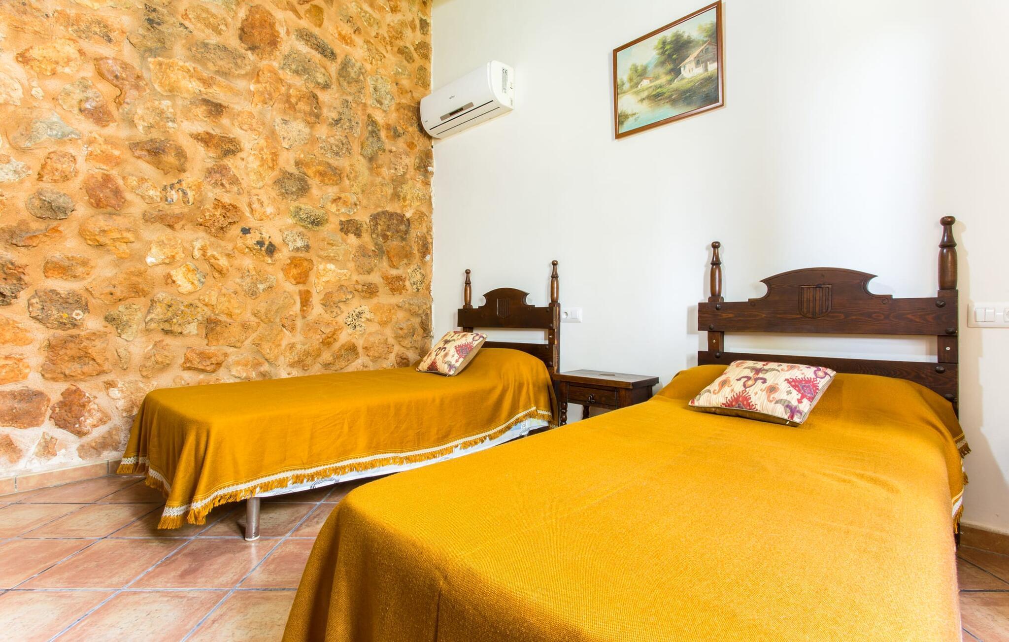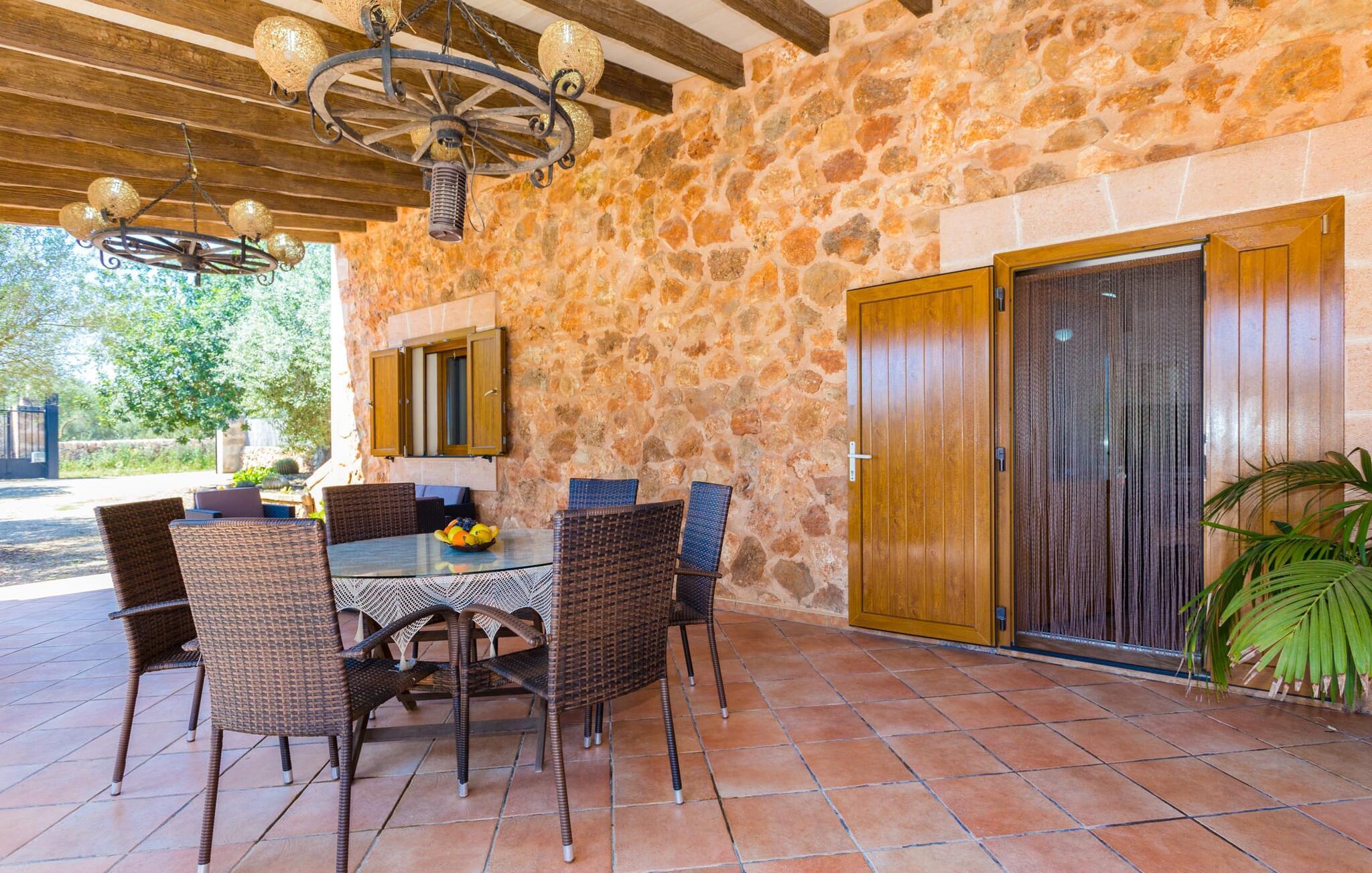 Auch in den klimatisierten Schlafzimmern finden Sie die Ruhe, die Sie in Ihrer Auszeit vom Alltag erwarten. Der Stil der Einrichtung und Ausstattung mit antiken Betten aus gedrechseltem Holz und weiteren gemütlichen Elementen vermittelt das Gefühl eines Urlaubs auf dem Bauernhof. Gleichzeitig bieten die Zimmer auch den modernen Luxus eines Flachbildfernsehers als Kontrast zum rustikalen Charme vergangener Zeiten. Bodengleiche begehbare Duschen – in insgesamt zwei Badezimmern – komplettieren den Komfort, den eine Familie oder eine kleine Gruppe von Freunden hier finden kann. Auch das Wohnzimmer mit integriertem Essbereich versprüht einen typisch mallorquinischen Charme. Die großen Polstermöbel mit Blumenmuster ergänzen die naturalistischen Wandgemälde, die idyllische ländliche Szenen darstellen. Ein angenehm sanfter Hauch von „Kitsch“ ist in diesem schönen Anwesen vorhanden, was dem Wohlbefinden des Gastes besonders zugute kommt. Die rustikale Landhausküche ist komplett mit modernen Annehmlichkeiten ausgestattet – ein wichtiges Merkmal für Urlauber, die sich für die Selbstversorgung entscheiden. Gestatten Sie uns einen kleinen Tipp: Aufgrund der Zentralheizung ist diese wunderbar legere Villa das ganze Jahr über buchbar; Und gerade in der Nebensaison, wenn das Klima auf Mallorca noch sehr angenehm ist, kann es zu sehr günstigen Preisen reserviert werden.