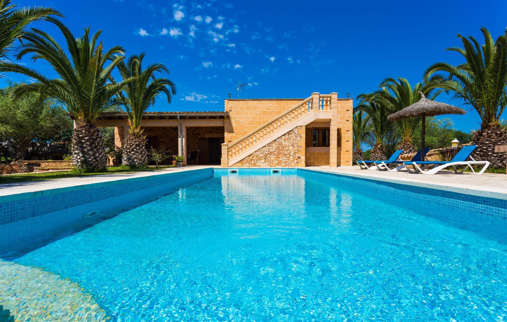 Campos ist – wie der Name schon sagt – ein ruhiger Ort voller Felder, daher ist sein Charakter eher landwirtschaftlich geprägt. Im Süden der Insel geht es gemächlich zu. Dies gilt auch für Santanyí, wo Sie die goldbraunen Steinhäuser in malerischen Engen und die netten Bodegas bewundern können, die überwiegend einheimische Gäste bedienen. Kapern, Sobrasada, Ziegenkäse und Oliven sind nur ein Teil der mallorquinischen Küche, die gut zu einem Glas Rotwein passt. Da die Villa nahe genug liegt, um die Ma-19, die Autobahn, die Santanyí mit der Küste verbindet, hören zu können, können Sie die wunderschöne Umgebung bequem und schnell erkunden. An Markttagen zeigen die beschaulichen Orte ein ganz anderes Gesicht und man kann ein herrlich buntes Treiben erleben. Nach dem Markt können Sie zur Abkühlung die fjordähnliche Cala Santanyei oder den Naturstrand Es Trenc besuchen. An beiden Orten erwartet Sie wunderschönes türkisfarbenes Wasser und eine typisch balearische Unbeschwertheit. Die traditionelle Villa Rústica „Es Estadors“ zeichnet sich durch eine wunderbare Einsamkeit und einen herrlichen Garten voller Palmen und Olivenbäume aus. Es liegt etwas südlich von Campos, in Richtung Santanyí. Beide Orte sind schnell erreicht, die örtlichen Supermärkte oder der Wochenmarkt mittwochs, donnerstags und samstags bieten sonnenverwöhntes, aromatisches Obst und Gemüse. Der Traumstrand Es Trenc ist nur 10 Autominuten entfernt.