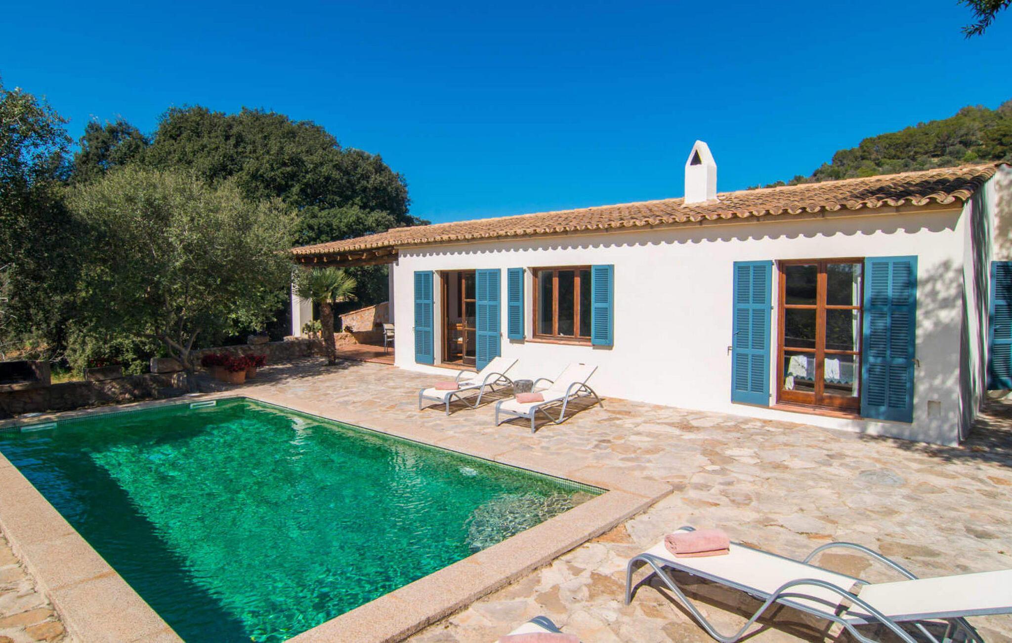 Die wunderschöne Steinvilla "Es Garbalio“ liegt inmitten uralter Bäume und empfängt Sie mit bezaubernden türkisfarbenen Fensterläden und einer großzügigen umlaufenden Terrasse. Die Terrasse verfügt über einen schönen Pool und einen teilweise überdachten Frühstücksbereich. Unter dem strahlend blauen Himmel verbreiten die Palmen eine herrlich mediterrane Atmosphäre. Ein luxuriöser eingebauter Außengrill erwartet Sie, perfekt, um die kulinarischen Schätze der Insel zu genießen.