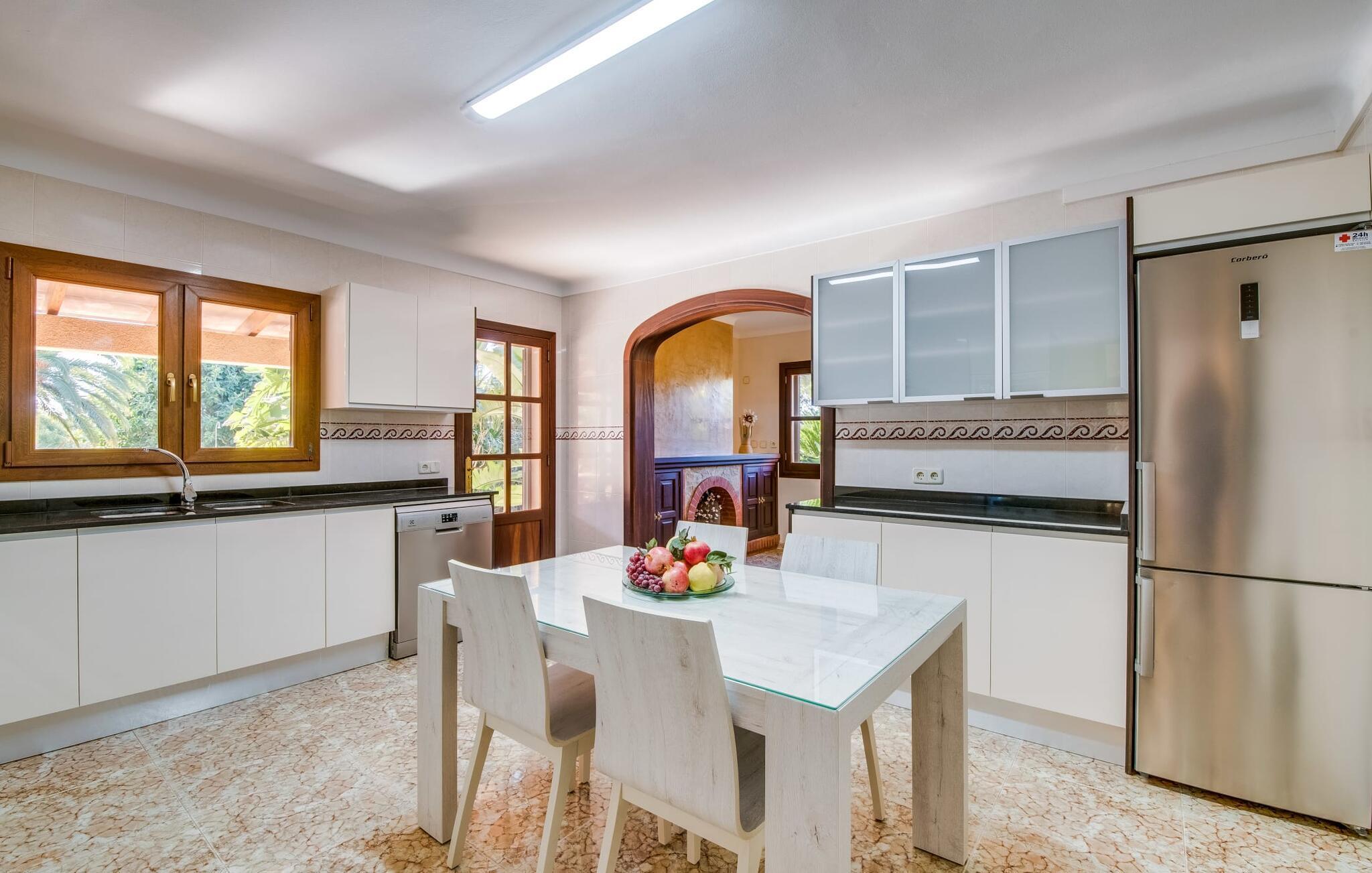 Massive Möbel, Rundbögen, helle Wände und Decken sowie dekorative Bodenfliesen prägen das Interieur dieses klassischen Bauernhauses, das mit Heizung und Klimaanlage das ganze Jahr über perfekt temperiert ist. Das Wohnzimmer kann direkt von der Terrasse aus betreten werden und bietet dementsprechend einen Blick nach draußen; es ist auch schön geräumig. Ein stilvoller Essbereich befindet sich direkt nebenan, ebenso wie die voll ausgestattete Küche, von der aus Sie auch direkt auf die Terrasse gelangen. Ganz unterschiedliche Stilrichtungen finden sich in den Schlafzimmern, die sich über das Erdgeschoss und das Obergeschoss verteilen – hier ist sicherlich für jeden Geschmack etwas dabei und eine gemütliche Nachtruhe ist garantiert. Vier Badezimmer garantieren maximale Privatsphäre, sodass Sie sich in diesem Bauernhaus auf Mallorca auch bei voller Belegung sicher nicht eingeengt fühlen. Ein Gäste-WC befindet sich ebenfalls im Erdgeschoss. Dieses Ferienhaus auf Mallorca punktet mit einer großzügigen Garten- und Poollandschaft, toller Ausstattung und hervorragender Erreichbarkeit zu mehreren Stränden, zum Beispiel Cala Ferrera, Cala Gran, Cala d'Or. Durch die straßennahe Lage sind Sie hier sehr gut angebunden. In dem sehr freundlichen, lebhaften Dorf können Sie Ihre Einkäufe erledigen oder an der Promenade entlang flanieren. Die Auswahl an weiteren Badebuchten ist vielfältig und mit dem Mietwagen gut zu erreichen.