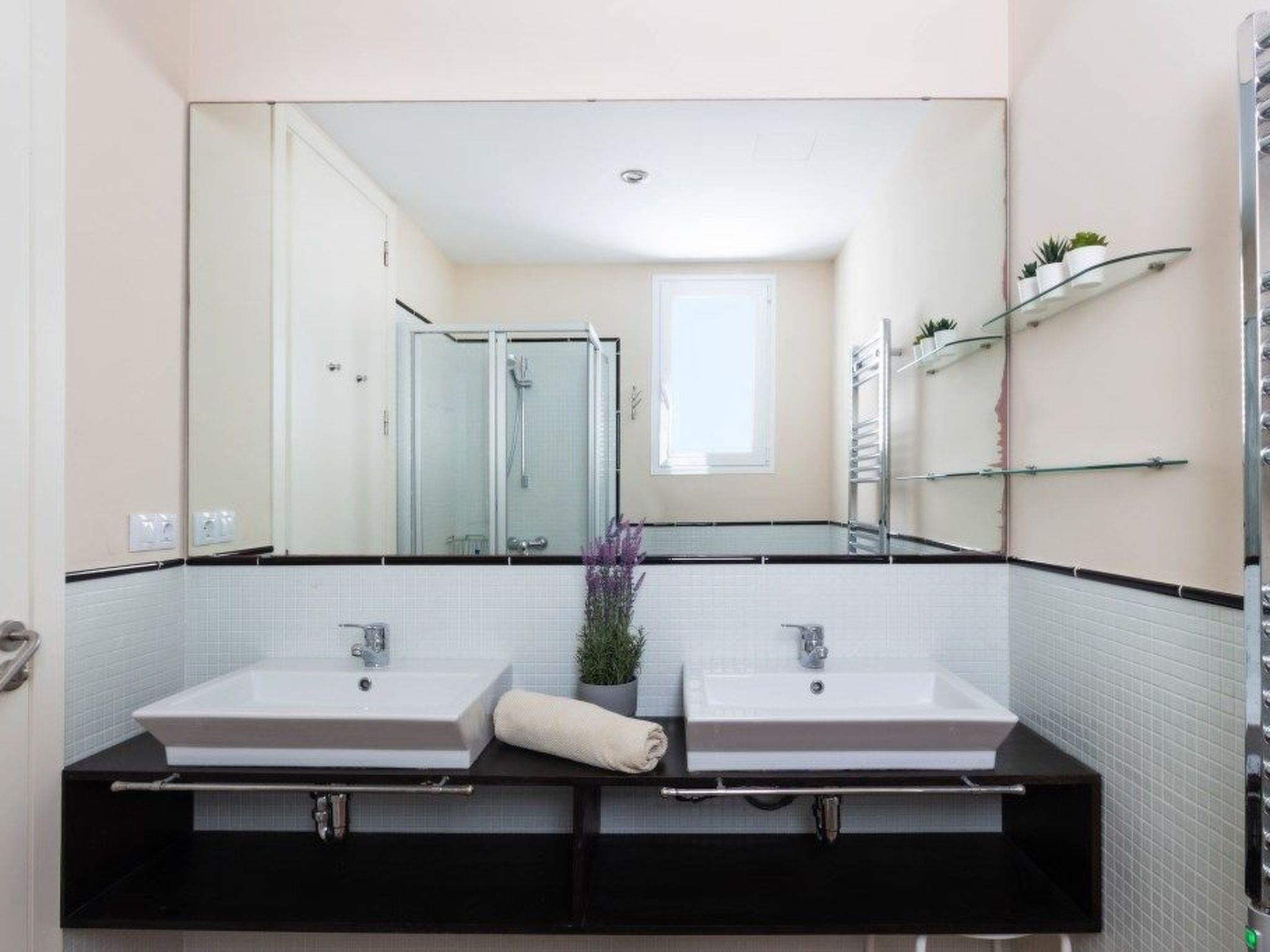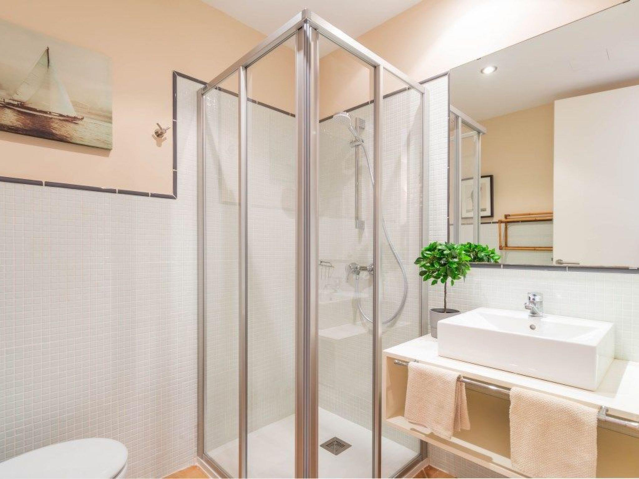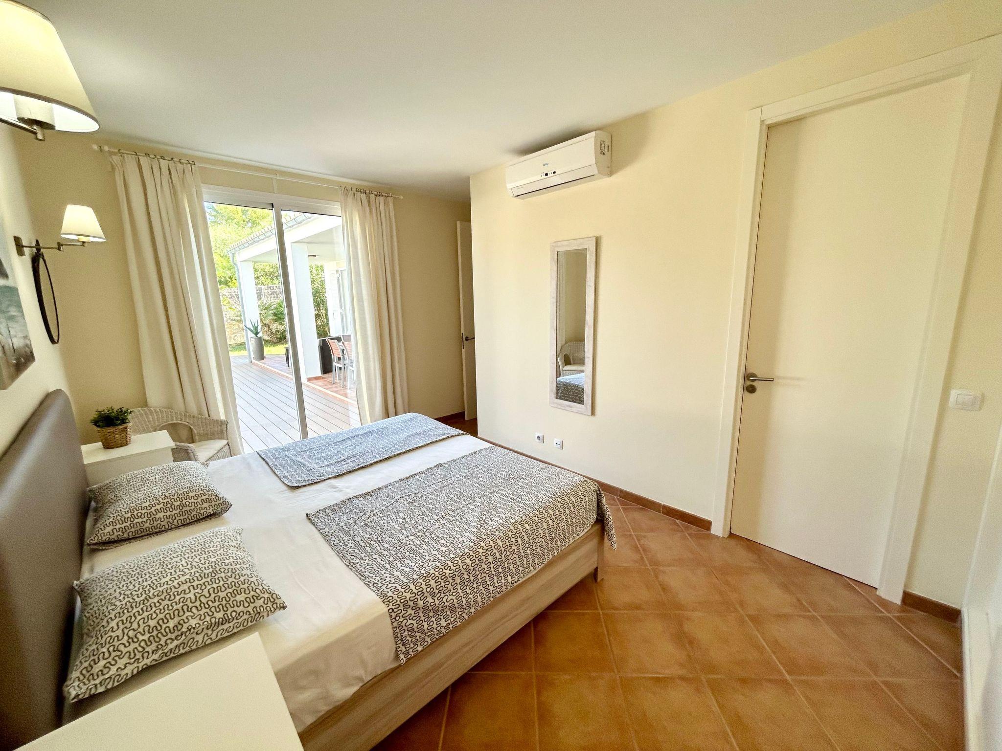 Diese neugebaute Villa ist mit drei Schlafzimmern und drei Badezimmer ausgestattet. Die Sanitäreinrichtungen beinhalten z.B. bodenebene Duschen sowie moderne Waschtischanlagen. Die gesamte Wohnfläche verteilt sich auf zwei Ebenen. Im Erdgeschoss befinden sich das Wohn- und Esszimmer, Küche, zwei Schlafzimmer und zwei Bäder (eines ensuite). Das erste Schlafzimmer verfügt über zwei Einzelbetten der Größe 90 x 200 cm, das zweite über ein Doppelbett der Größe 200 x 200 cm. Im ersten Stock befindet sich ein weiteres Schlafzimmer (Bett: 180 x 200 cm) mit Badezimmer sowie eine große Terrasse mit Blick über die Bucht von Pollensa. Zudem ist die Villa mit doppelverglasten Fensterelementen und Klimaanlage (warm/ kalt) ausgestattet.