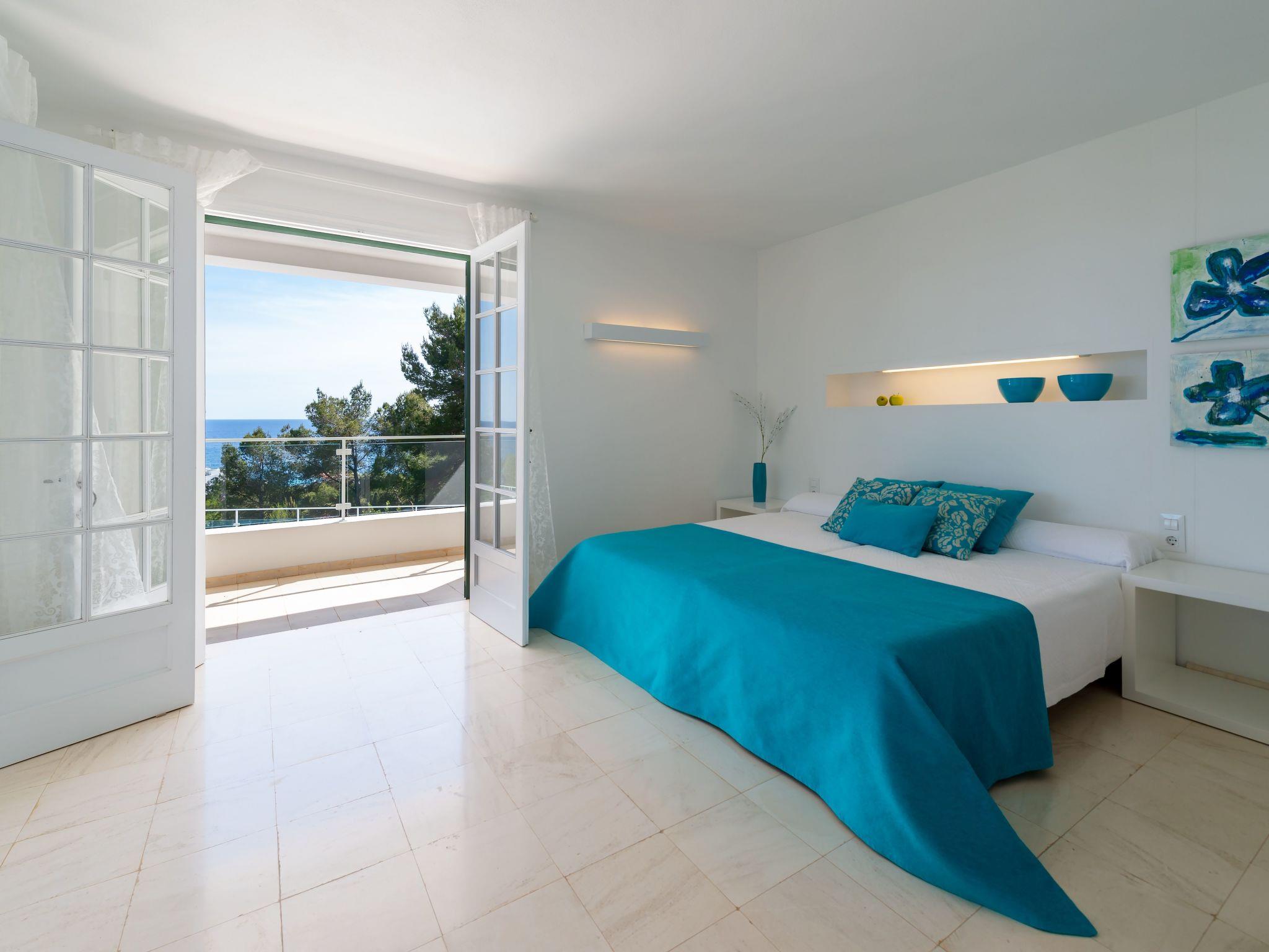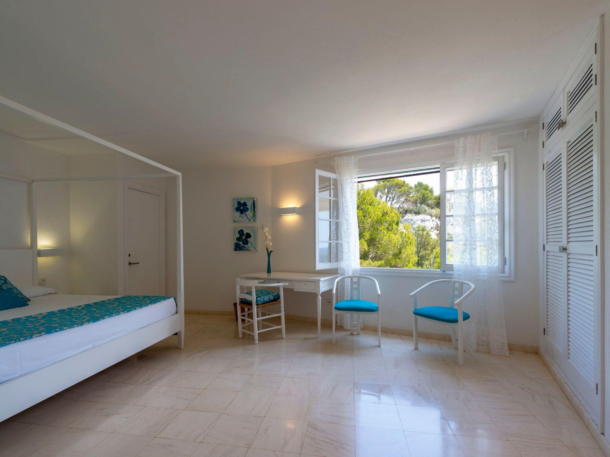 Im Außenbereich umgibt ein Panorama von Palmen und Pinien den umweltfreundlich beheizten Pool, welcher von menorquinischem Naturstein (Marés) eingerahmt wird – sicher und angenehm auch bei starker Sonneneinstrahlung. Ausreichend Liegeflächen, sowohl in der Sonne als auch im Schatten eines Sonnensegels oder der großen Palme, versprechen Entspannung pur. Ergänzt wird der Außenbereich durch bequeme Liegestühle und Sonnenschirme, die zu langen, erholsamen Tagen einladen.