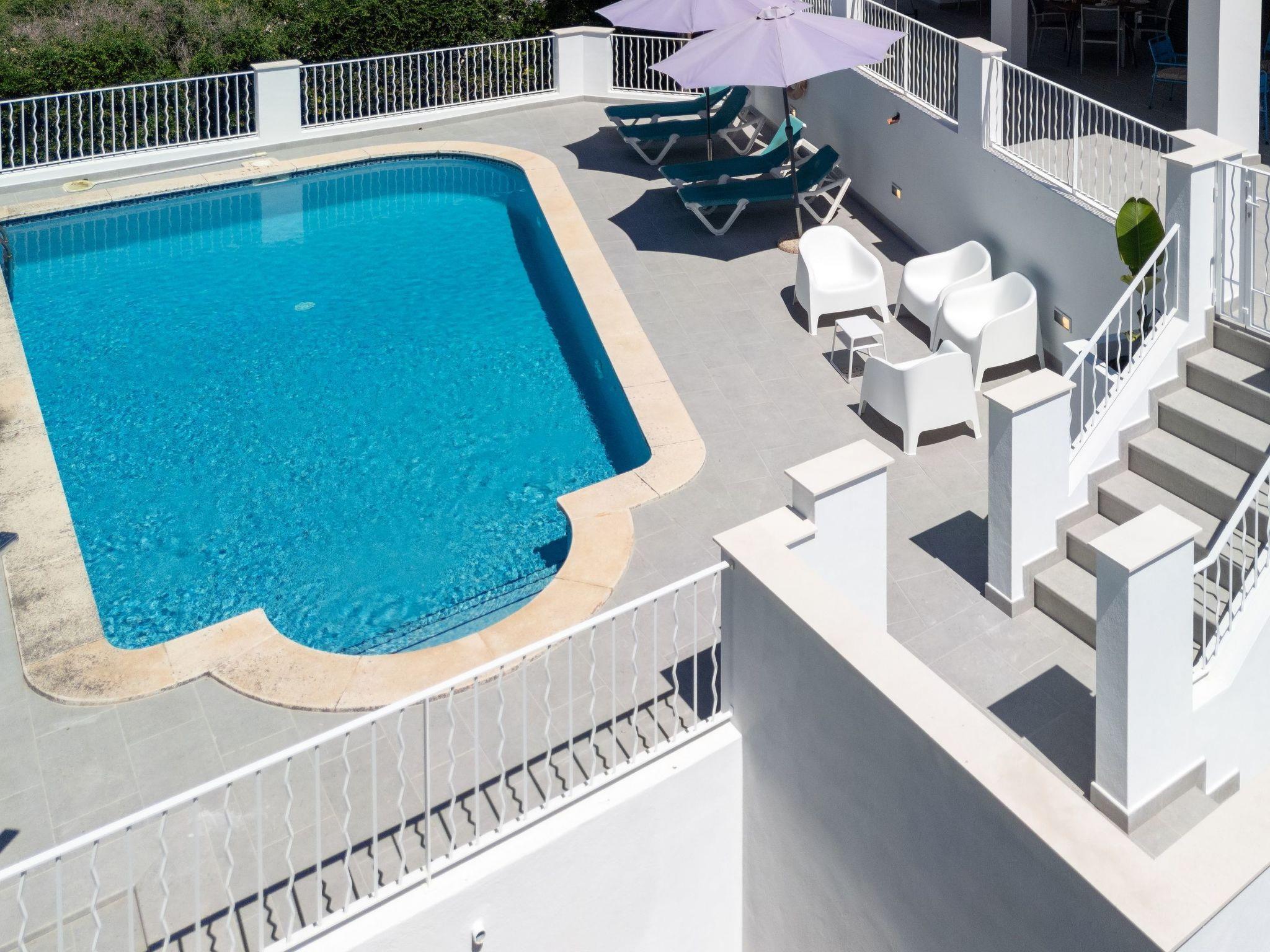 Im Außenbereich lädt der private Pool zum erfrischenden Tauchgang in absoluter Privatsphäre ein. Die Veranda ist der perfekte Ort, um die milde Meeresbrise zu genießen und gemütliche Stunden mit Blick auf den liebevoll angelegten Garten zu verbringen. Das rundet das Bild eines perfekten Urlaubsdomizils ab, wo die Außenflächen genauso einladend sind wie die Innenräume.