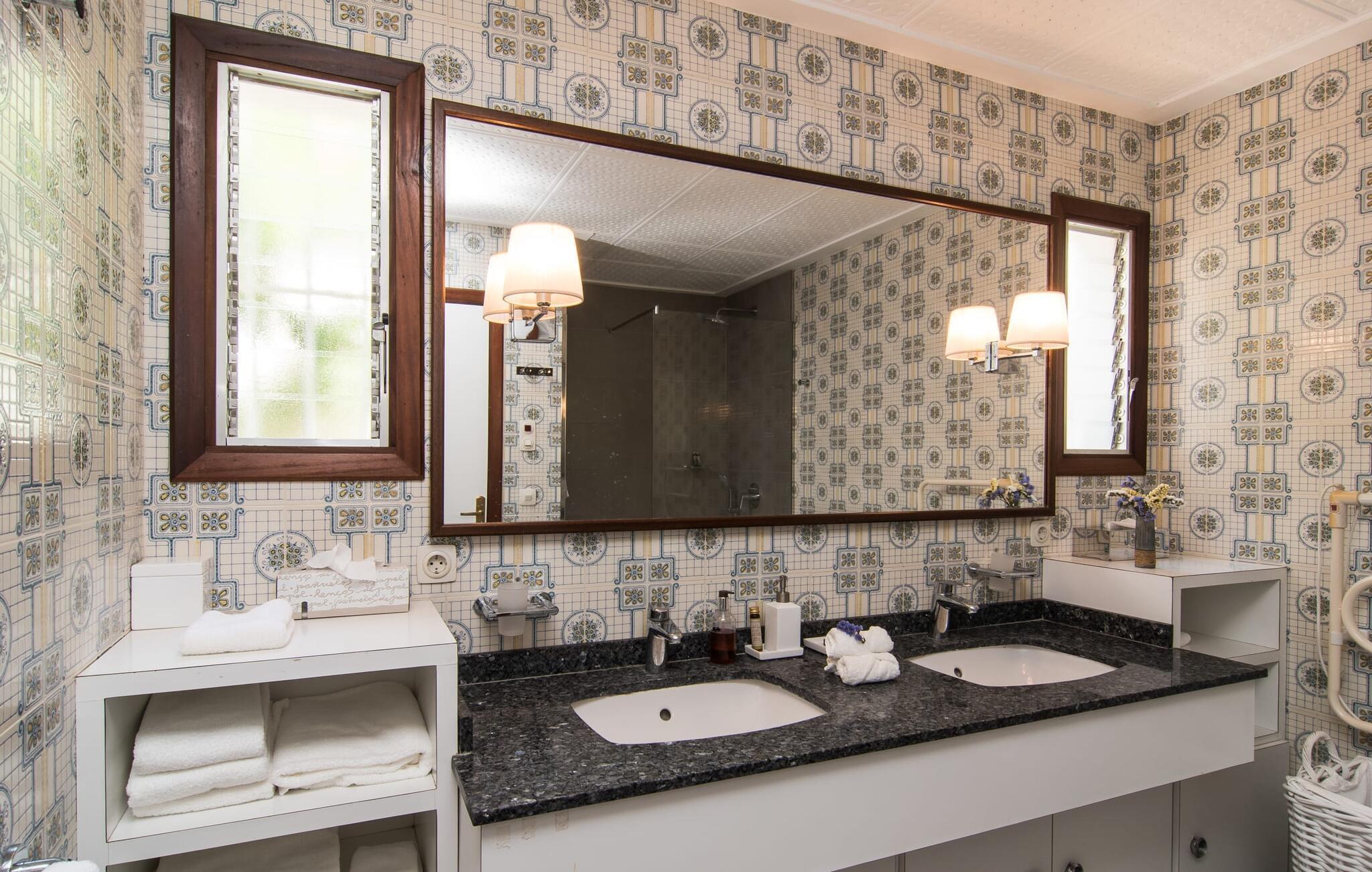 Die Villa „Es Norai“ liegt auf einem 700 m² großen Grundstück, nur 500 m vom Zentrum von Cala Ratjada entfernt. Der Außenbereich besteht aus einer wunderschön gestalteten und weitläufigen Terrassenlandschaft, die verschiedene Zonen bietet und mit allerlei mediterranen Pflanzen in kleinen Beeten oder Kübeln absolut einladend gestaltet wurde. Außerdem gibt es eine kleine Rasenfläche – hier sind die Sonnenliegen bereits griffbereit, auf denen Sie nach einer erfrischenden Runde im Pool wunderbar entspannen können. Rund um das Mallorca-Ferienhaus finden Sie mehrere weitere attraktive Orte zum Entspannen. Dazu zählen herrliche Liegeflächen ebenso wie luftige Schattenbereiche, beispielsweise im pavillonartigen Bereich, der als Outdoor-Esszimmer genutzt werden kann. Ein langer Esstisch lädt dazu ein, mediterrane Köstlichkeiten in geselliger Atmosphäre zu genießen. Vielleicht genießt man hier an einem Sommermorgen schon gerne ein leckeres Frühstück. Oder ein kulinarisches Barbecue an einem lauen Abend, bevor Sie später einen Spaziergang an der Promenade unternehmen oder den Abend zu Hause in Ruhe ausklingen lassen.