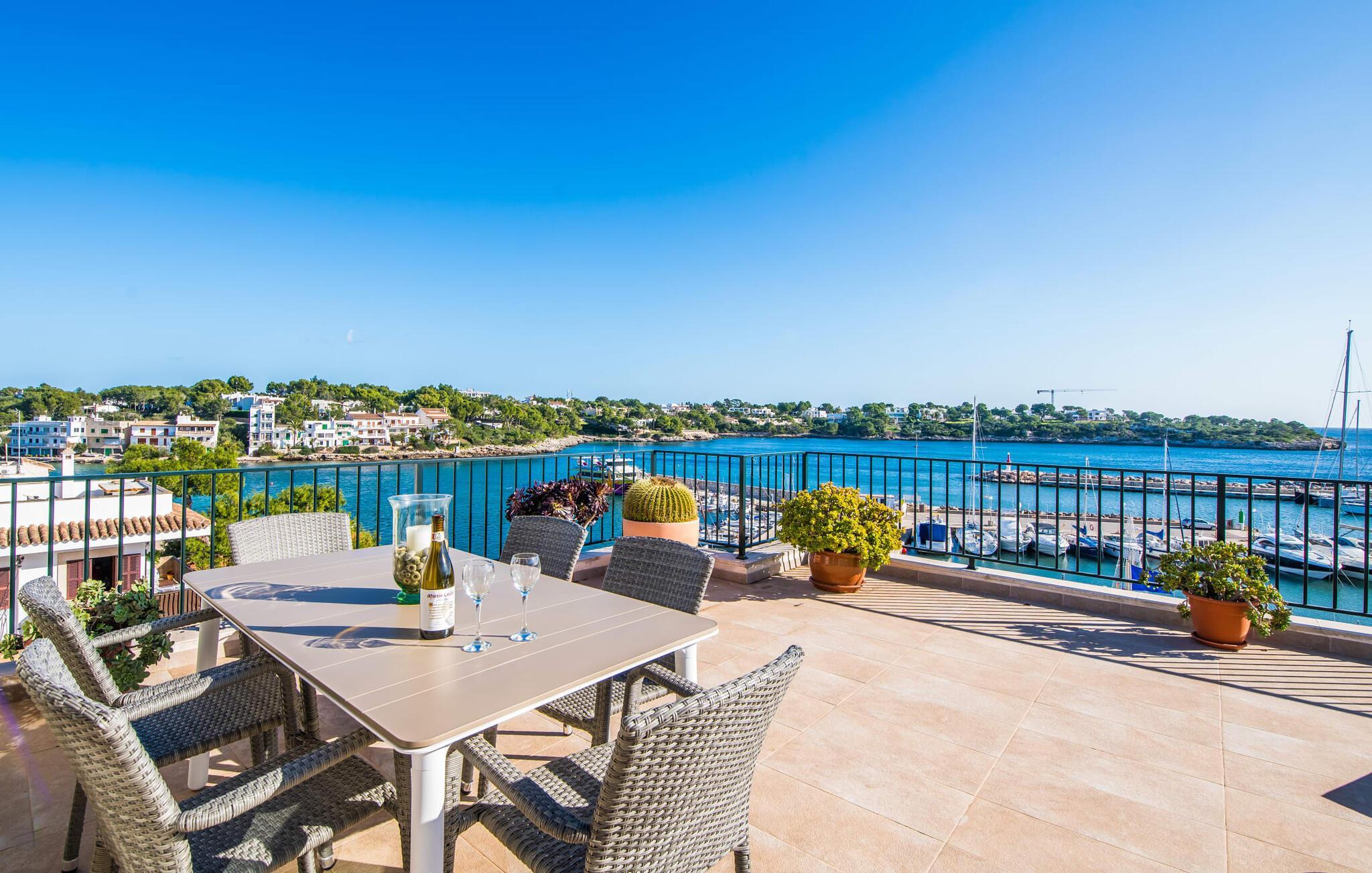 Das „Es Port Penthouse“ bietet ein luxuriöses Urlaubserlebnis auf Mallorca und verfügt über eine sonnenverwöhnte Dachterrasse mit herrlichem Meerblick.
