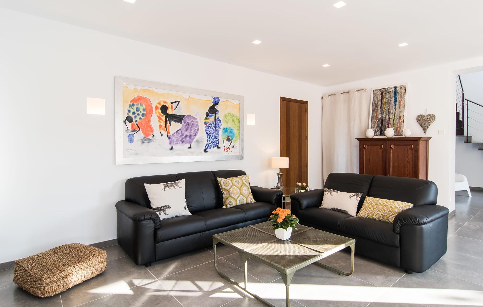 Das Anwesen erstreckt sich über 10.000 m² und wird biologisch bewirtschaftet, was sein Engagement für Nachhaltigkeit unterstreicht. Bei der Ankunft können die Gäste bequem drei Autos parken und werden von flachen Stufen begrüßt, die zur Terrasse, zum Pool und zum Garten führen. Die weitläufige Terrasse vor der Küche und dem Wohnzimmer spendet morgens ausreichend Schatten und ist somit ein idealer Ort zum Frühstücken unter den Bäumen. Das Schwimmbad ist ideal für Fitnessbegeisterte und bietet einen Blick auf die nahegelegenen Sandstrände, die nur eine kurze Autofahrt entfernt liegen.