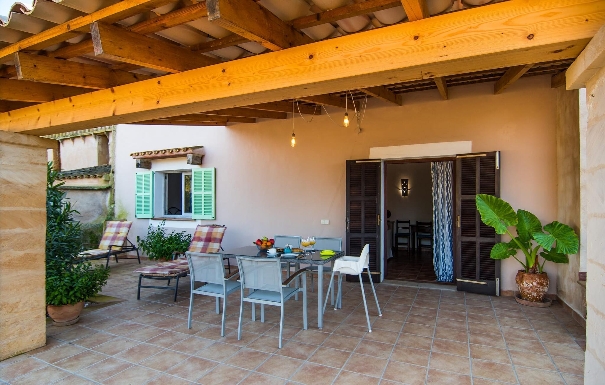 Historisches Anwesen auf rotem Boden, tierlieber Bauernhof, idyllische Mandelbaumvilla, komfortable und gesellige Agroturismo-Unterkunft: Es ist klar, dass diese Beschreibungen auf den roten Bauernhof „Es Rafal Roig“ mit seinem Haupthaus aus Naturstein und drei kleinen Nebenhäusern zutreffen Gebäude. Es gibt satte 350.000 m² üppiger Blumen- und Grünflächen zu entdecken, mit vielen Details, die Groß und Klein begeistern werden. Es gibt gemütliche Ecken, umgeben von Kakteen, Palmen, duftendem Oleander und unzähligen bepflanzten Terrakotta-Töpfen, Wasser aus dem hofeigenen Tiefbrunnen, Solarenergie sowie darin leben Meerschweinchen, Esel, Hühner, Gänse und Schildkröten eigenes Territorium. Während die Großen am 10 m langen, zentral gelegenen Pool entspannen, können die Kleinen im eigenen Pool hinter der Steinmauer planschen, den Sie von den Sonnenliegen aus wunderbar im Auge behalten können. Spielplätze mit großen und kleinen Rutschen, Sandkästen und Geräten für Ballspiele aller Art lassen keine Langeweile aufkommen und man kann auch bei der Landwirtschaft zusehen. Überall sind Stühle und Tische an sonnigen und schattigen Plätzen verteilt, an denen die Gäste ein Picknick machen oder sich unterhalten können. Das kleine Grillhäuschen, ein Original aus alten Zeiten, kann jeden Tag genutzt werden und teilt sich den Raum mit der Außentoilette und der Dusche.
