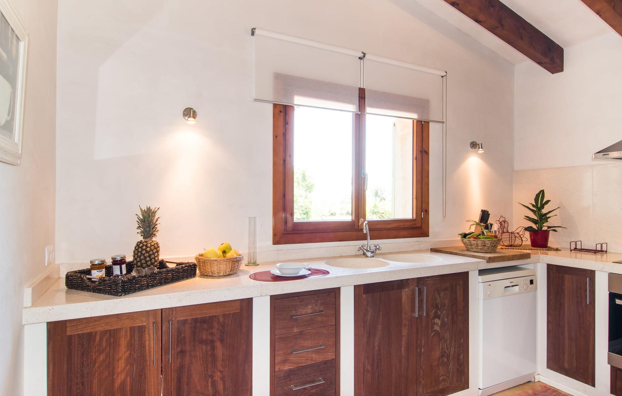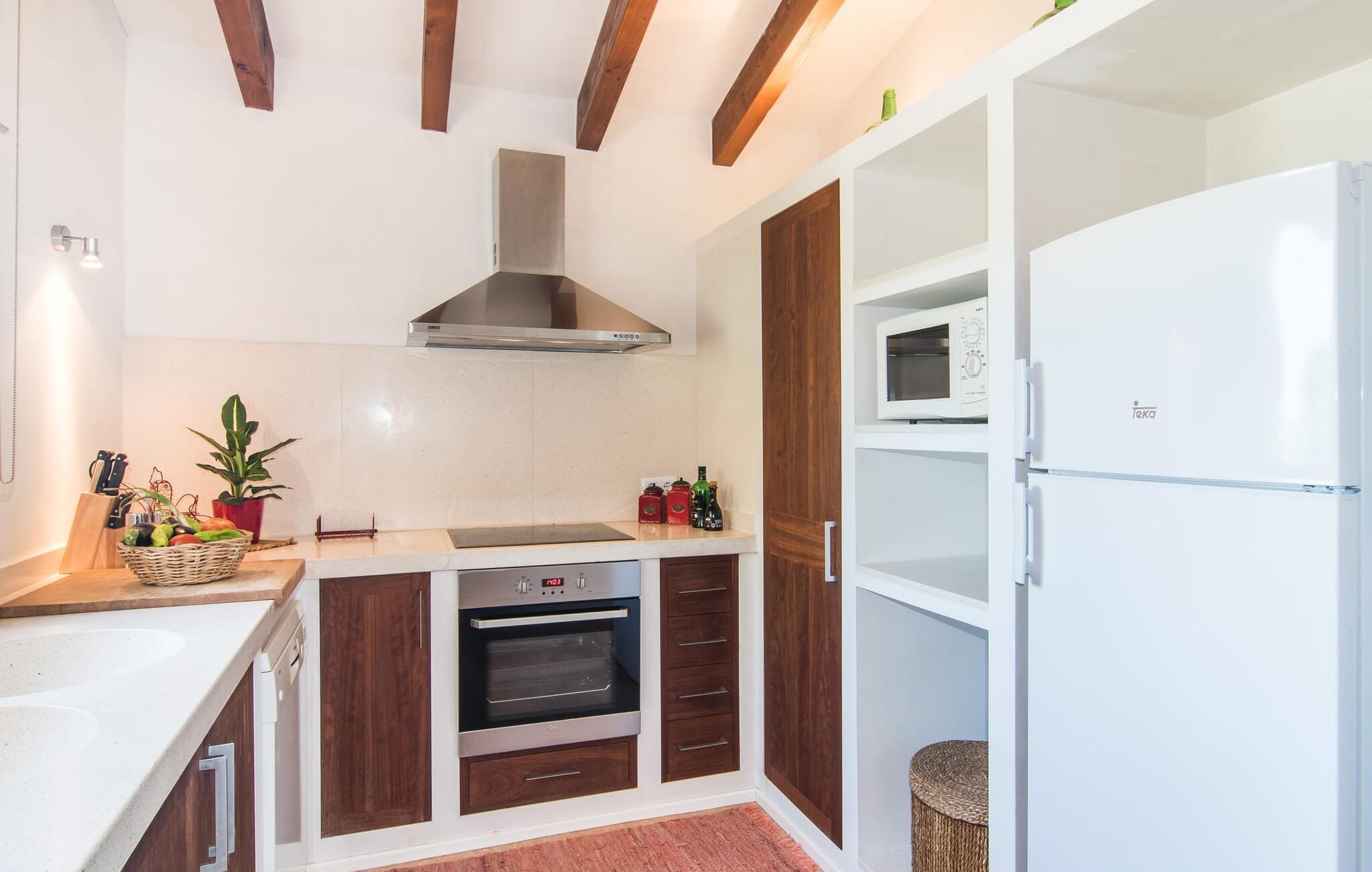 Den Eigentümern ist es gelungen, auf einem Grundstück von 175 m² nicht nur ein äußerst geschmackvolles Paradies zu schaffen, sondern es auch originell zu gestalten und ihm mit cleveren Details ein ganz individuelles Aussehen zu verleihen. Sobald Sie die Räume durch die großzügige Terrassentür betreten, gelangen Sie direkt in den Essbereich, der mit seiner schönen Beleuchtung und Möbeln zum Genuss ausgiebiger Mahlzeiten einlädt. Wenn Sie gerne kochen, werden Sie sich über eine helle, typisch mallorquinische Backsteinküche freuen, die alle modernen Annehmlichkeiten bietet, darunter ein Cerankochfeld, ein Backofen, eine Mikrowelle, ein Kühl- und Gefrierschrank, ein Wasserkocher, ein Geschirrspüler und eine Kaffeemaschine. Und vergessen Sie nicht, hier ein typisch spanisches Rezept auszuprobieren! Sie suchen Rückzugsmöglichkeiten, obwohl man lieber mit maximal sechs Personen Urlaub macht? Eigentlich ist es gar nicht so einfach, aber hier ist neben den natürlich isolierten und sehr ästhetisch hergerichteten Schlafzimmern ein klar abgetrenntes Wohnzimmer eine weitere attraktive Möglichkeit, auch drinnen ein ruhiges Plätzchen zu finden. Sofas, Kamin, Fernseher, CD- und DVD-Player lassen keine Wünsche offen; Der kabellose DSL-Anschluss ergänzt das moderne Medienangebot. Ein echtes Plus: Beide Badezimmer sind mit Dusche und Badewanne ausgestattet, sodass die Villa allen Bade- und Erfrischungsvorlieben der Gäste gerecht wird.
