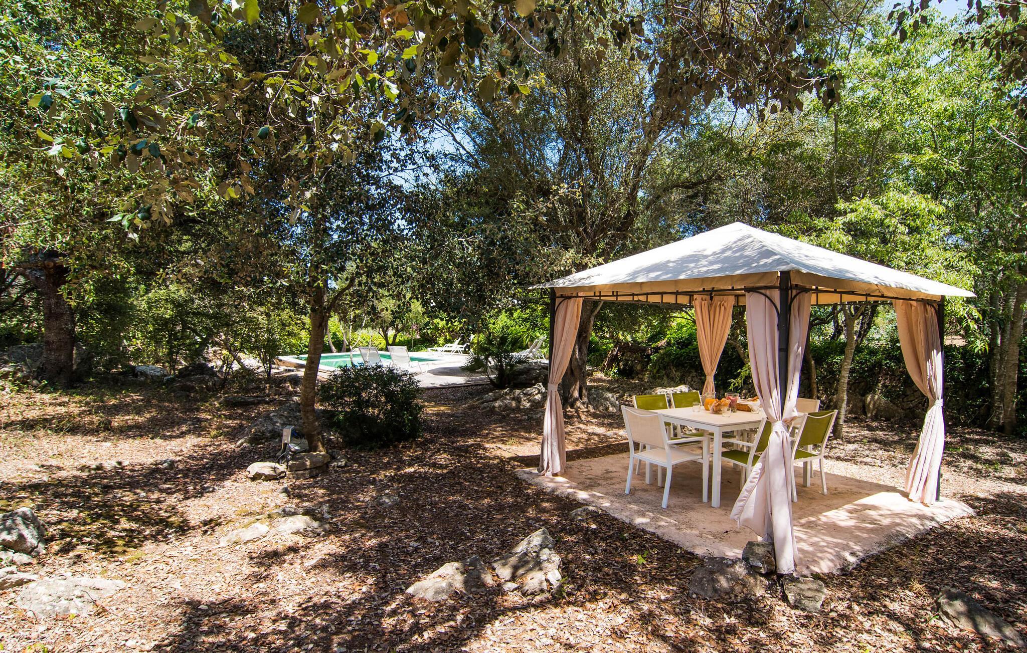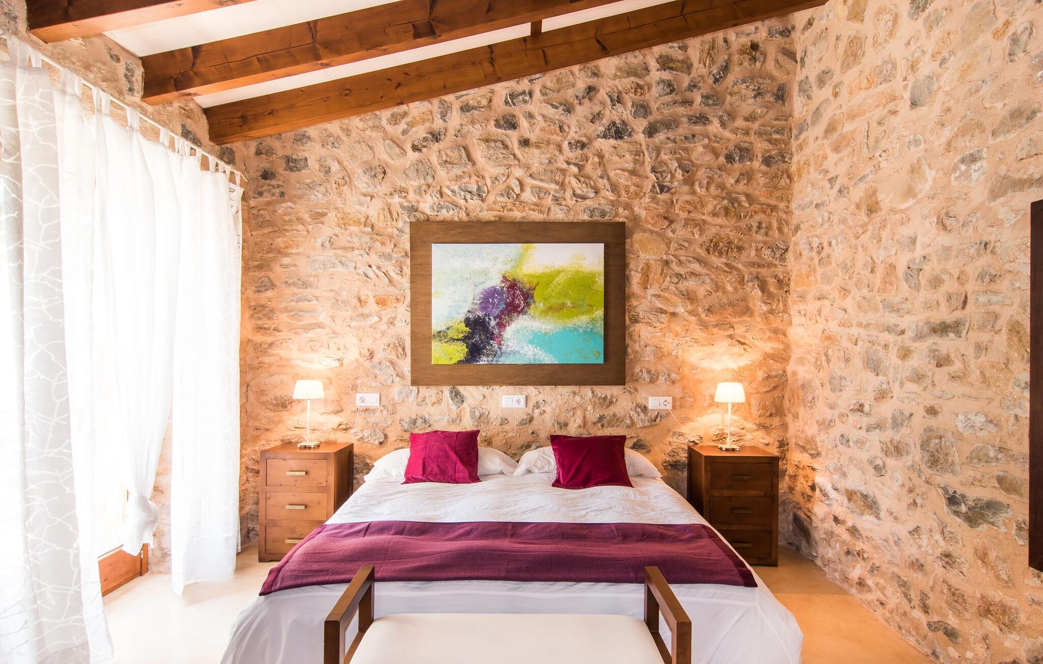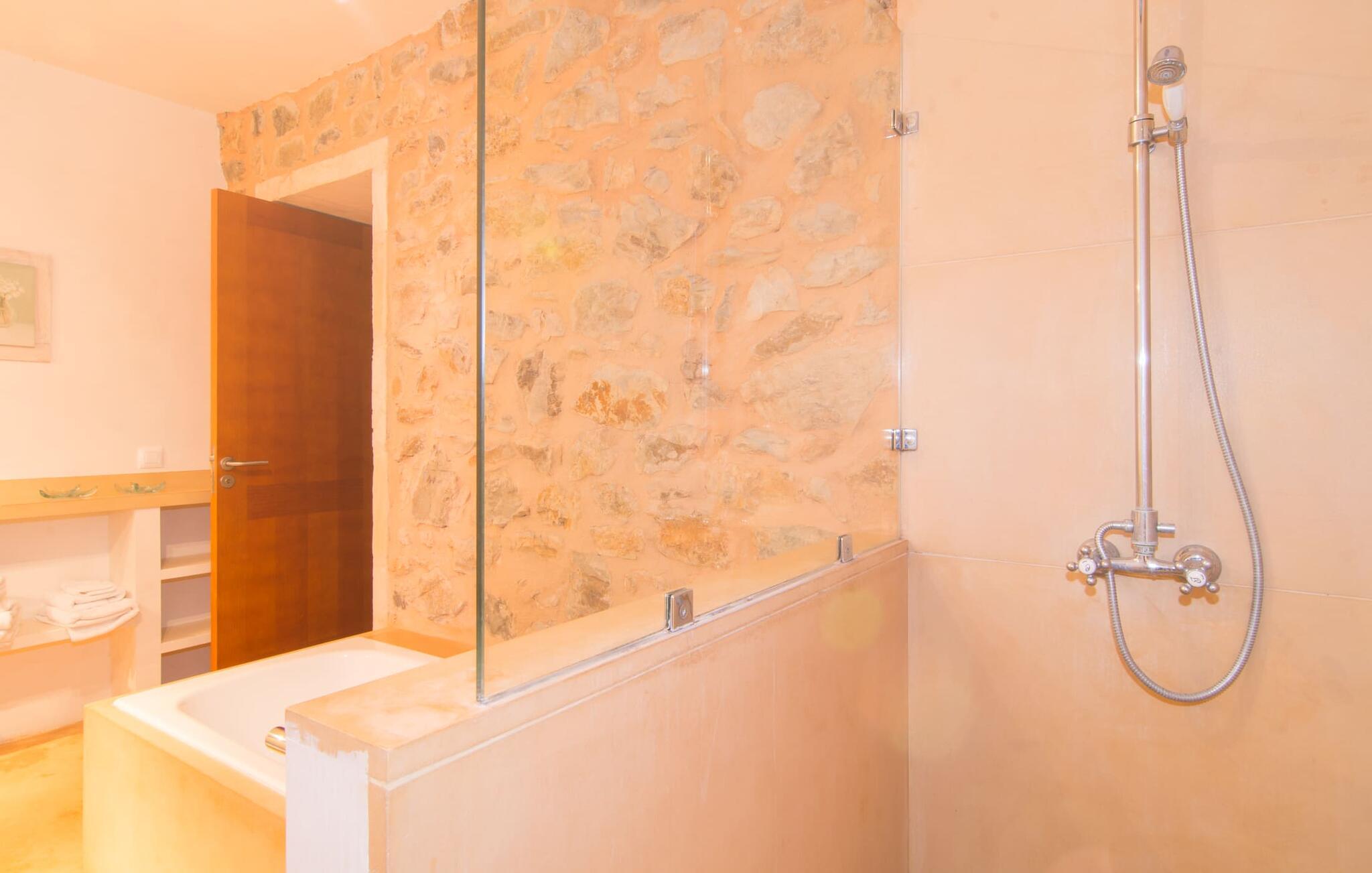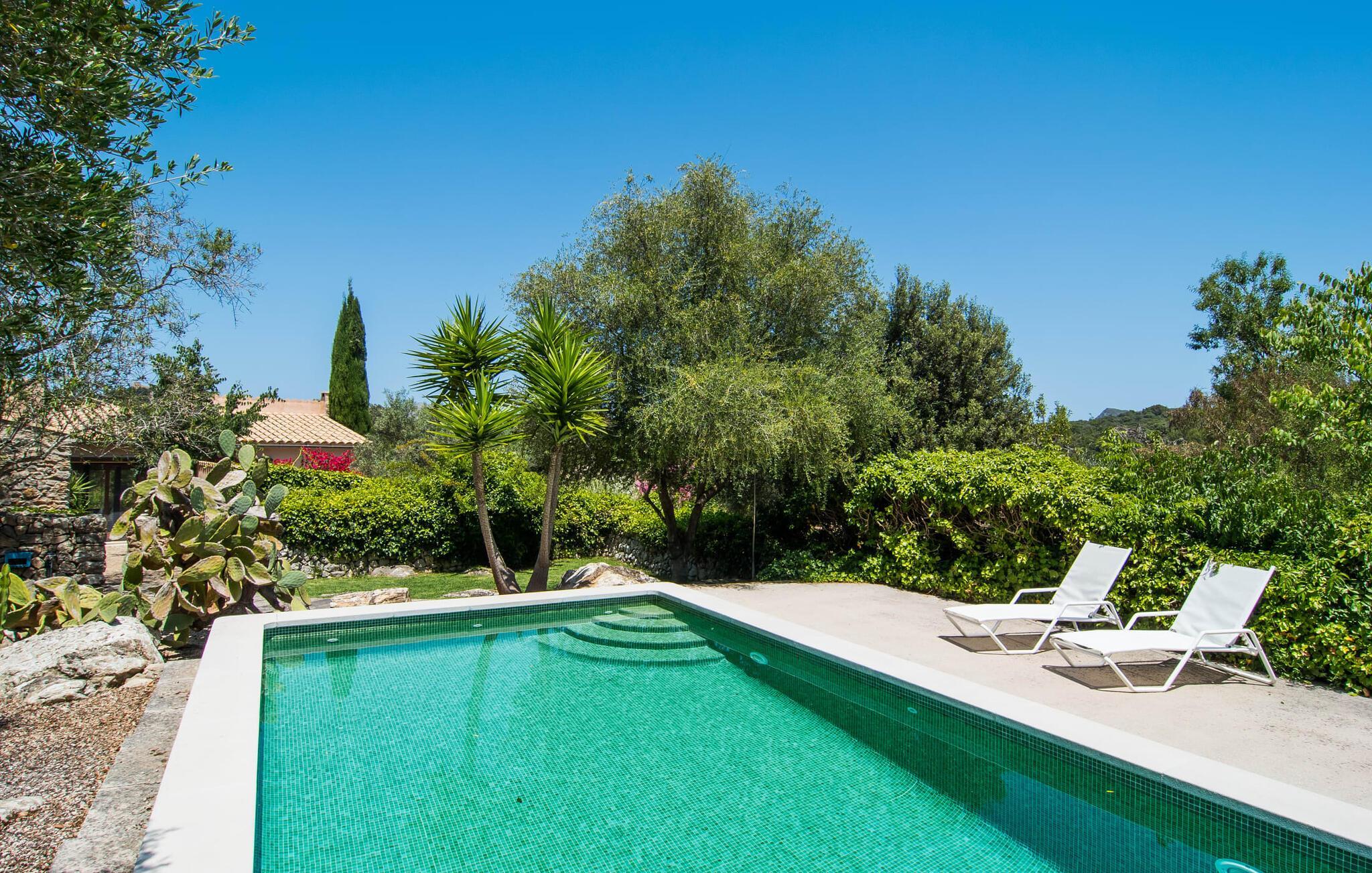 Ein paar unvergessliche Tage, um neue Energie zu tanken, ein besonderes Wohnumfeld zu genießen und gleichzeitig die Privatsphäre voll auszukosten und die Nähe zu infrastrukturell fortschrittlichen Gebieten und dem Meer zu haben – „Es Romagueral“ macht es möglich! Wenn Sie den/die Gutscheincode(s) nur für einen bestimmten Zeitraum gültig machen möchten, können Sie hier ein Startdatum eingeben. Schon die Anfahrt ist schön – etwas holprig, aber die malerische Landschaft lohnt sich. Oleander, Oliven, Orangenbäume und andere mediterrane Sträucher und Bäume flankieren den Weg, der auf einem großen Kiesplatz vor dem Haus endet und direkt zum ebenerdigen Steinhaus führt. Niedliche Wege, Mauern und Nischen umgeben das Gelände und laden zum Entspannen unter freiem Himmel ein. Zu jeder Tageszeit halten natürliche Beschattung und überdachte Terrassenbereiche ein passendes Plätzchen für Sie bereit. Besonders beeindruckend ist der Pavillon im Olivenhain. Hier müssen Sie nur noch herausfinden, welche Mahlzeit des Tages Ihnen am besten schmeckt. Auch die runde Sitzecke neben dem Grill hat ihren Charme und sorgt für die passende Atmosphäre für Ihre gemütlichen Grillabende. Die quadratische überdachte Veranda an der Vorderseite des Hauses eignet sich hervorragend zum gemeinsamen Essen im Freien – sie ist verkehrsgünstig gelegen und bietet einen schönen Blick auf den Garten. Hinter dem Wohngebäude, das von einem kleinen Wald aus Steineichen umgeben ist, steht alles zum Schwimmen und Sonnenbaden bereit. Vielleicht möchten Sie morgens ein erfrischendes Bad im Pool nehmen und tagsüber auf einer der Sonnenliegen die Sonne genießen!