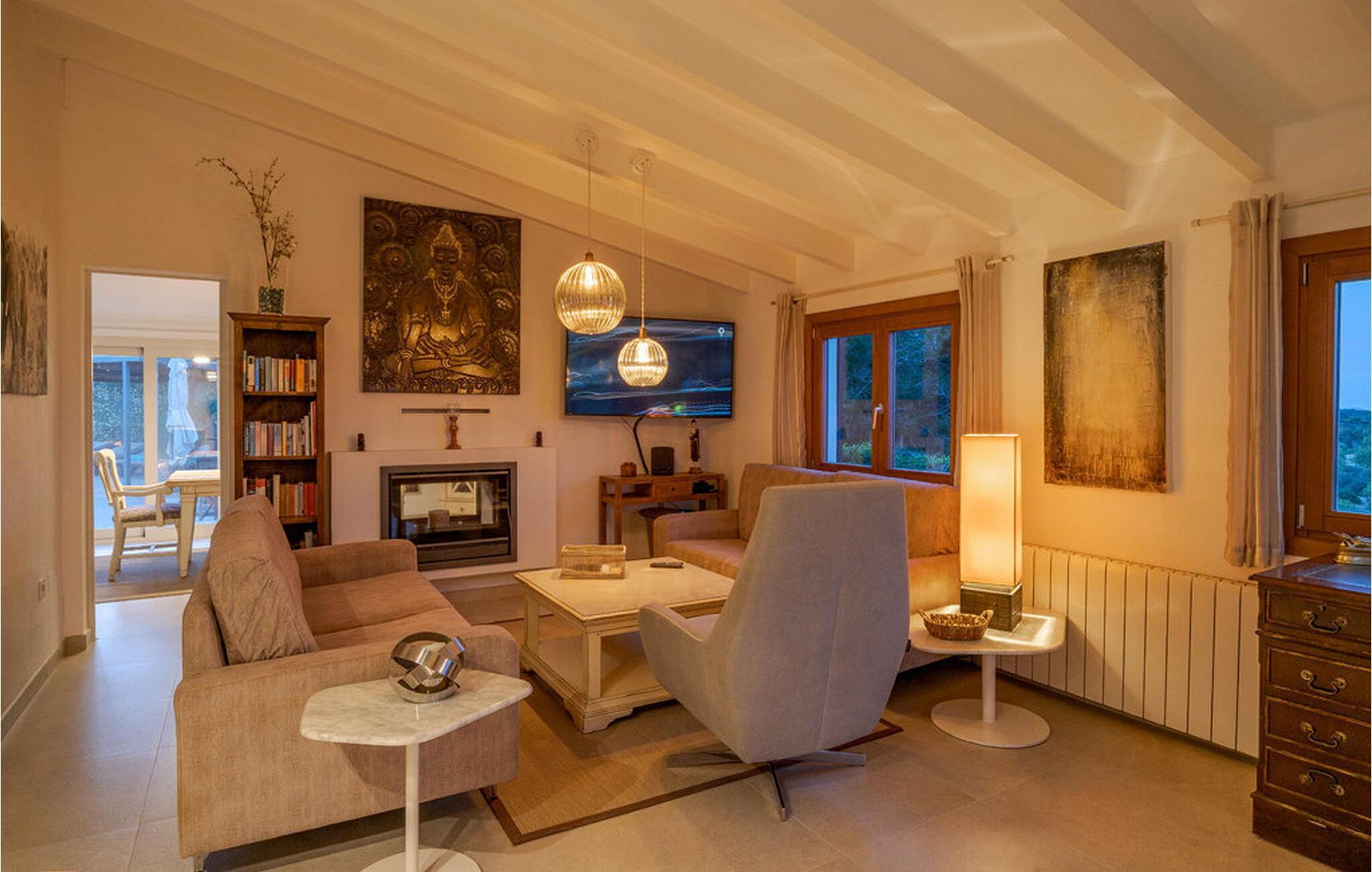 Beim Betreten von „Es Socorrat“ werden Sie von einer warmen und einladenden Atmosphäre begrüßt. Ihr Domizil verfügt über eine Mischung aus modernen Möbeln und charmanten Details im Landhausstil. Weiße Wände, Fliesenböden und helle Deckenbalken sorgen für ein angenehmes Wohngefühl. Große Fenster füllen den Raum mit Licht und bieten atemberaubende Ausblicke. Die Aufteilung umfasst einen Essbereich mit fantastischem Meerblick, ein separates Esszimmer und ein gemütliches Wohnzimmer. Die offene Küche ist mit allen notwendigen Annehmlichkeiten für die Zubereitung köstlicher Mahlzeiten ausgestattet. Die Unterkunft verfügt über drei wunderschön eingerichtete Schlafzimmer und zwei moderne Badezimmer, die für einen komfortablen Aufenthalt sorgen.