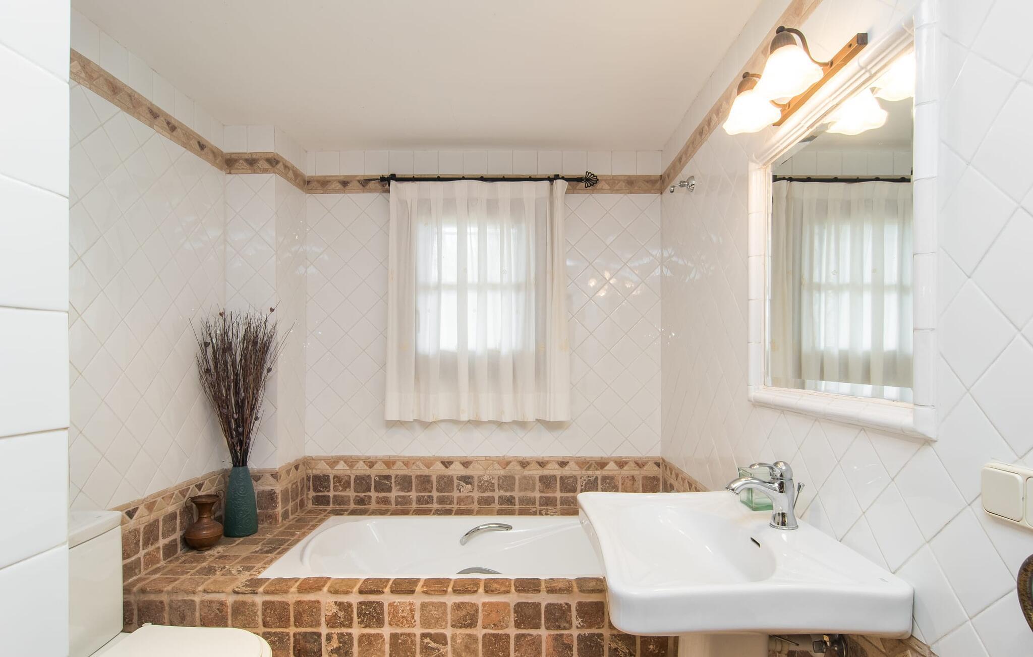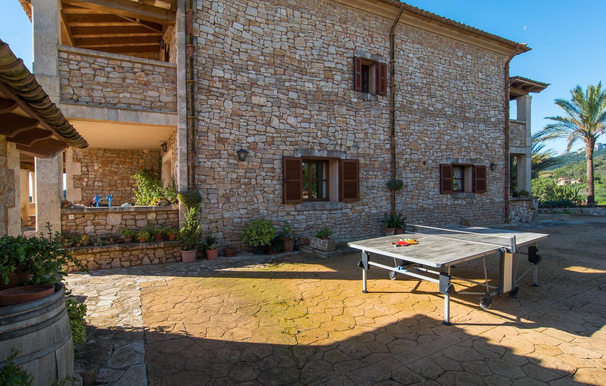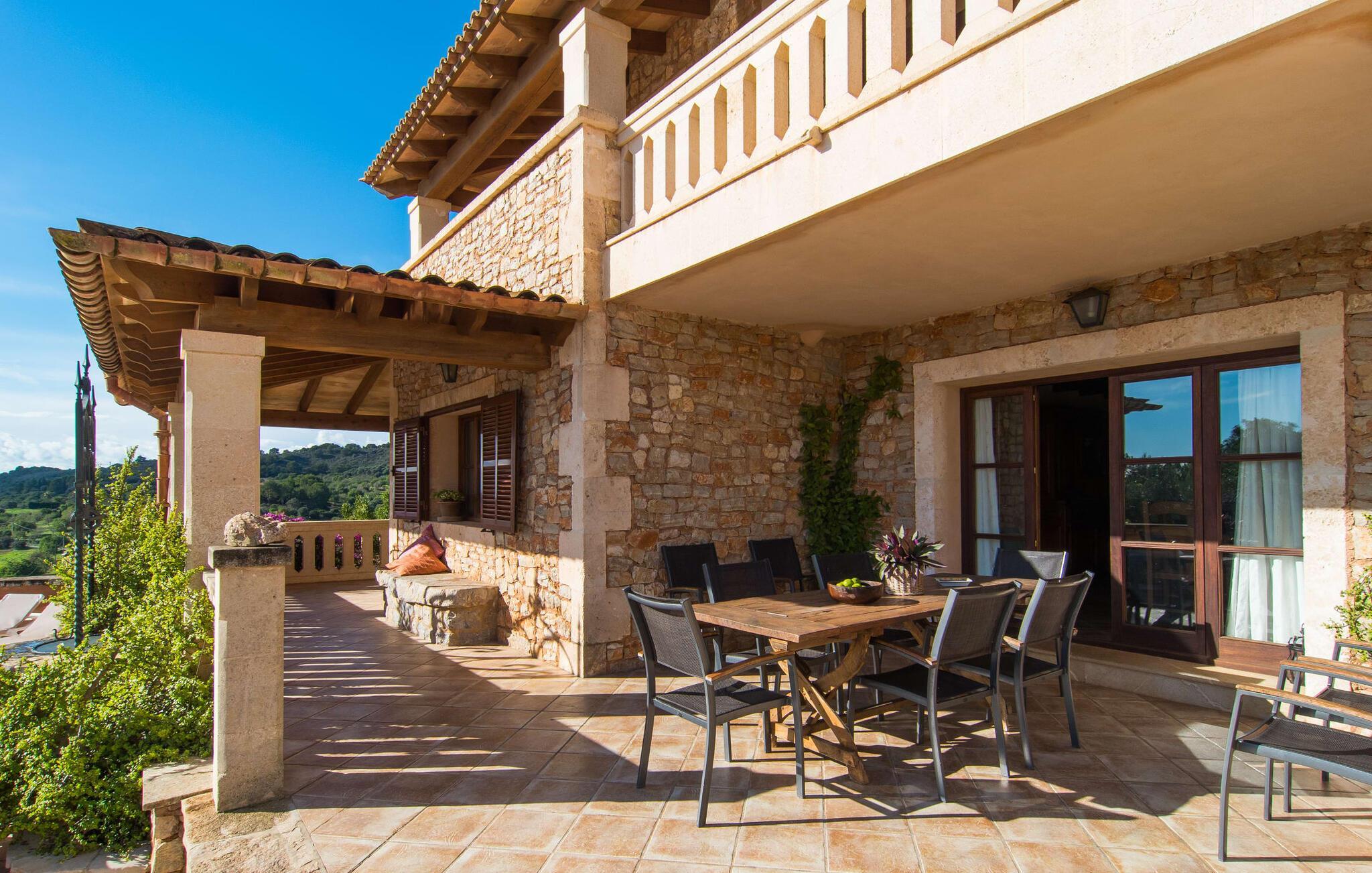 Das traditionelle Bauernhaus „Es Turo Golf“ im Süden Mallorcas punktet mit einer erhabenen und absolut ruhigen Lage und bietet somit beste Urlaubserholung für Sie und Ihre Familie oder Freunde. Das urige Bruchsteinhaus ist umgeben von einem mediterranen Garten mit hohen Palmen, Oliven- und Obstbäumen sowie üppig blühenden Bougainvilleen. Durch die Hanglage genießen Sie tolle Ausblicke über die beeindruckende Landschaft und den benachbarten Golfplatz bis hin zum Meer. Dieses optische Vergnügen können Sie von zahlreichen Terrassen – überdacht oder freiliegend – sowie herrlichen Balkonen genießen. Stille und Privatsphäre begleiten Sie auch rund um den gemauerten Pool mit Delfin-Emblem. Kinder können direkt ins Wasser rutschen – Badespaß für Groß und Klein. Ein entspannter Tag im Garten kann auch in der hauseigenen Bodega ausklingen. Die separate, geschlossene Außenküche mit gemauertem Grill, offenem Kamin und gemütlicher Essecke bietet alles, was Sie für einen gemütlichen Abend brauchen – unabhängig von der Reisezeit.