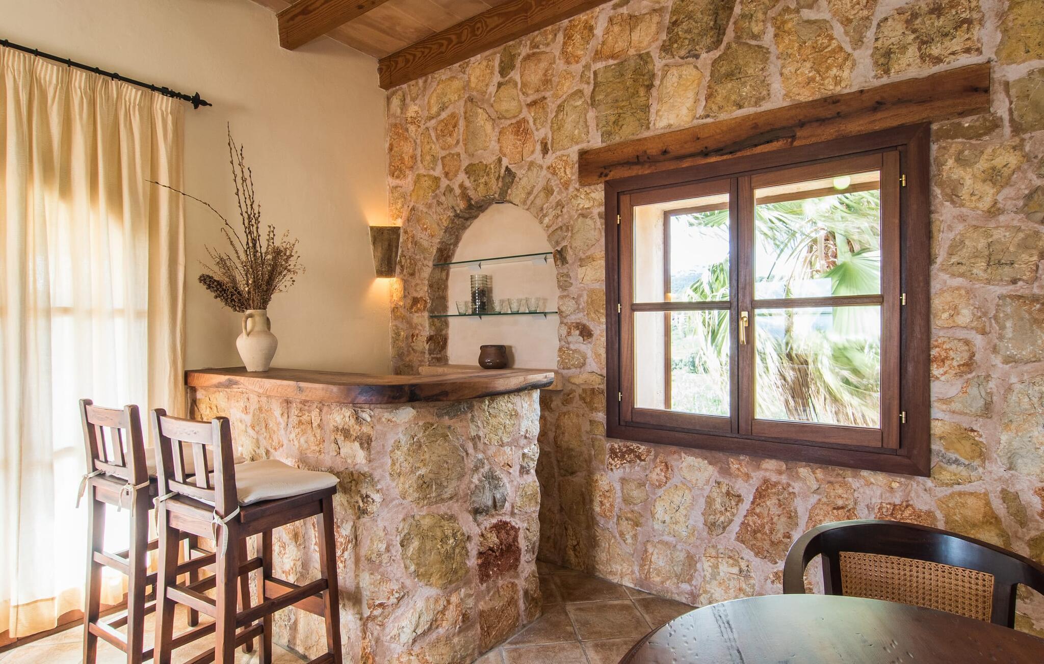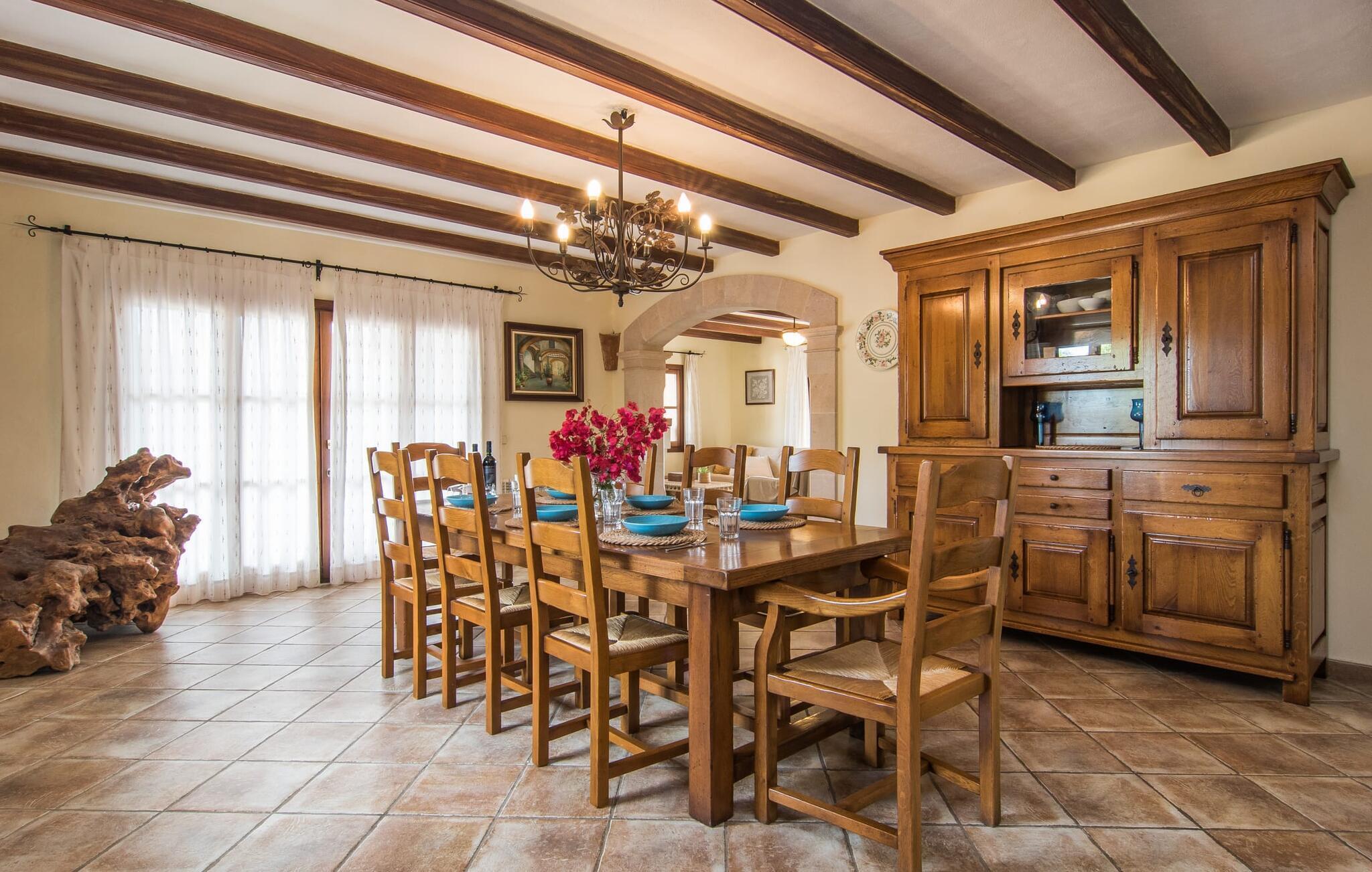 Auch im Inneren des großzügigen, mehrstöckigen Hauses können Sie die perfekte Harmonie erleben. Durch die Verwendung klassischer mallorquinischer Elemente wie Terrakotta, Holz, Stuten und Bruchstein entsteht eine echte Wohlfühlatmosphäre für unsere Urlaubsgäste. Ein Esszimmer zwischen dem Wohnzimmer und der voll ausgestatteten Küche im Landhausstil bildet die Ergänzung zur Außenküche und den Terrassen. Erleben Sie echten Urlaubskomfort in fünf Schlafzimmern, jeweils ausgestattet mit zwei Einzelbetten oder einem Doppelbett. Ergänzt werden sie durch vier Badezimmer, teilweise en Suite. Der Einrichtungsstil des Hauses ist familienfreundlich, gemütlich und zugleich rustikal-modern. Wer typische Urlaubstage gerne mit Traditionen und modernem Komfort verbindet, wird sich hier mit bis zu acht Personen sehr wohl fühlen. Dazu trägt auch die ungezwungene Atmosphäre des mallorquinischen Ferienhauses mit Blick auf das Meer und wunderbaren Innen- und Außenlounges bei. Wann besuchen Sie „Es Turo Golf“? Das traditionelle mallorquinische Bauernhaus „Es Turo Golf“ besticht durch sein weitläufiges Grundstück und den schönen Außenbereich. Das Anwesen mit Meerblick liegt im Süden der Insel in der Nähe des kleinen Ortes S'Horta. Für Ihre täglichen Einkäufe sind es nur 3 Autominuten. Der Name dieses schönen Ferienhauses bezieht sich auf den nur 1,4 km entfernten Golfplatz Vall d'Or – einer der schönsten auf Mallorca. Der beliebte Sandstrand Cala Marçal ist nur 10 Minuten entfernt.