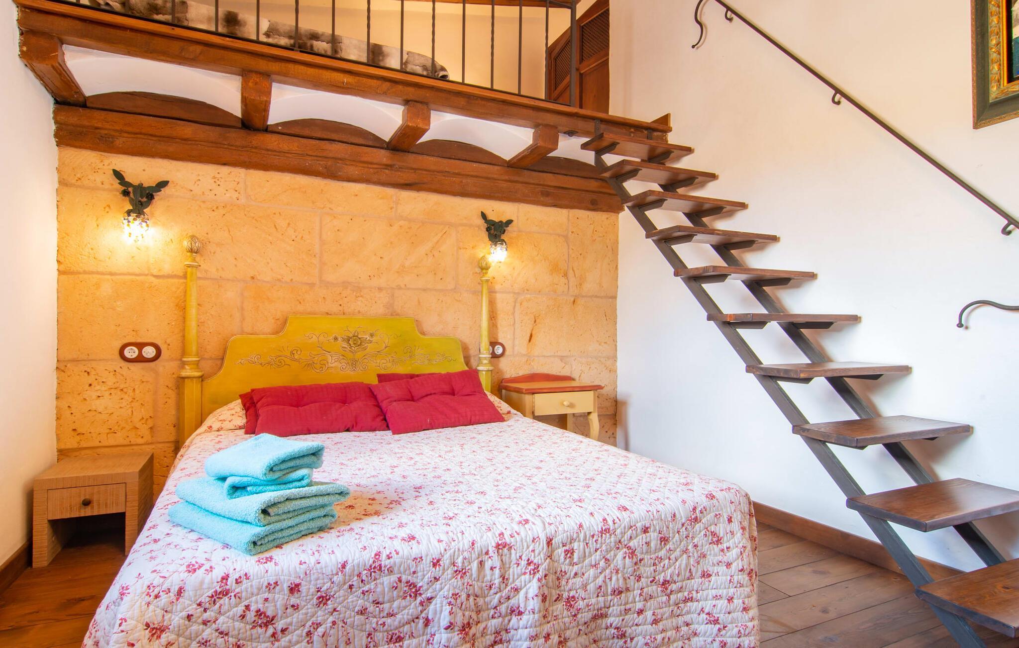 Leicht erhöht blickt „Es Turó“ über die sanften Hügel der wunderschönen Landschaft im Zentrum der Insel. Von der charmanten Natursteinvilla führen ein paar Stufen hinunter zur kleinen Poolterrasse. Beim Planschen, beim Sonnenbaden auf den Liegestühlen oder beim Frühstück am kleinen Tisch – Sie können jederzeit den unbezahlbaren Blick in die Ferne genießen. Umrahmt von Palmen und Zypressen stellt sich ganz automatisch die angenehme mediterrane Atmosphäre ein, die Sie sich im Urlaub wünschen. Ein weiteres fantastisches Merkmal ist die rustikale Außenküche, umgeben von Kopfsteinpflaster und einer schönen Pergola. Mit ein paar frischen Zutaten vom nahe gelegenen Markt haben Sie alle kulinarischen Genüsse, die Sie brauchen. Auf der überdachten Terrasse – in einladenden Grün- und Lilatönen gehalten – können Sie auf Korb- oder Schaukelstühlen und der fröhlichen, blauen Couch ein kühles Getränk genießen oder einfach die friedliche Umgebung genießen.