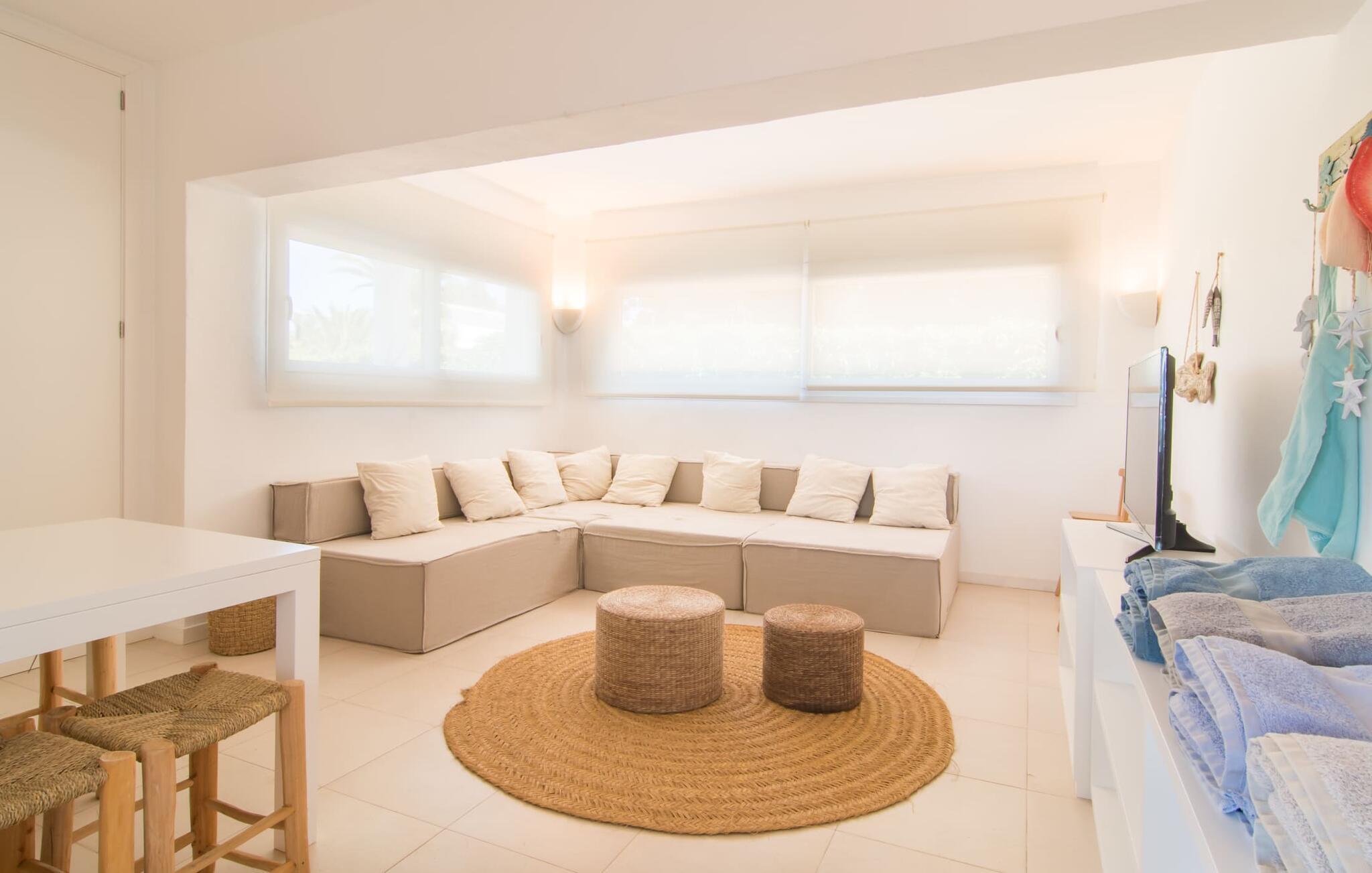 Das Gebäude erstreckt sich über zwei Etagen und nimmt eine Gesamtfläche von rund 270 Quadratmetern ein. Die zahlreichen Fenster und die fast ausschließlich hellen Farben durchfluten das Haus mit Sonnenlicht und strahlen eine rundum extravagante Aura aus. Ein kombiniertes Wohn-/Esszimmer, das zum Hafen ausgerichtet ist, bietet gleichzeitig eine äußerst gemütliche Sofalandschaft mit einem praktisch installierten Fernseher sowie einen langen, edlen Esstisch, an dem sechs Personen Platz finden. Ein zusätzlicher, kindgerecht gestalteter Aufenthaltsraum ist in die Architektur der Villa integriert. Daneben gibt es Kindermöbel und ein zusätzliches Sofa zum Entspannen. Dieser Raum ist ein ideales Spielzimmer, in das man sich bei Bedarf auch mit den Kleinen zurückziehen kann. Die pflegeleichte Küche im edlen Design verfügt über alles, was Sie für den Alltag benötigen, inklusive Wasserkocher und Filterkaffeemaschine. Die klimatisierten Schlafzimmer (zwei davon mit eigenem Bad) sind großzügig geschnitten, mit hochwertigen Möbeln ausgestattet und weisen ein sehr elegantes Design auf. Der bewusst sparsame Einsatz von Dekoration verleiht diesen Räumen einen hellen und einzigartigen Charakter, der eine angenehme Ruhe fördert. Die traumhafte Aussicht, teilweise auch vom Schlafzimmer aus sichtbar, macht diesen Ort zum Gipfel des Komforts. In allen Schlafzimmern stehen zwei 0,90 x 2,00 m große Betten zur Verfügung. Das geschmackvolle Design setzt sich auch in den Badezimmern fort. Diese verfügen über ein äußerst modernes Design, sind sehr komfortabel und großzügig geschnitten. Und von hier aus kann man einen Teilmeerblick genießen!