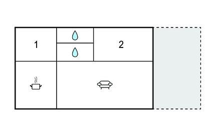 Badezimmer (nr. 2) - WC. Warmes und kaltes Wasser. Dusche