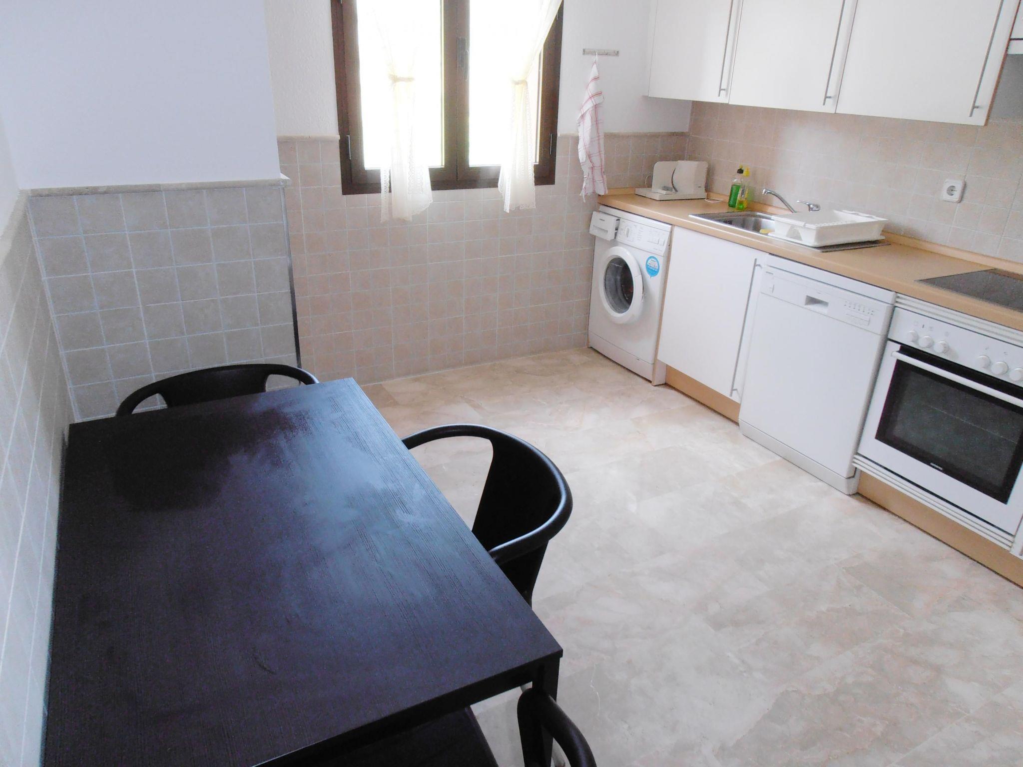 Das Apartment ist ein fünf Raum Apartment mit drei Marmor Bädern, Wohn/Esszimmer und drei Schlafzimmern im oberen Geschoss. Die für spanische Verhältnisse große Küche bietet eine große Kühl/Gefrierkombination, Ceran Kochfeld, Backofen, Mikrowelle, Waschmaschine, Geschirrspüler, Kaffee Maschine, Toaster, Minibackofen, Wasserkocher , Küchentisch und Stühle. Die Wohnung bietet auch eine Klimaanlage kalt/warm (mit zwei Klimageräten für unten und oben). Weiterhin befindet sich hier im EG der Wohn/Essbereich und das Marmor Gäste WC. Im oberen Bereich befinden sich die drei Schlafzimmer ( zwei Zimmer mit je einem Doppelbett und ein Schlafzimmer mit einem Einzelbett). Es gibt ein Marmor Bad mit Dusche und ein Marmor Bad mit Badewanne. Es handelt sich um eine Nichtraucherwohnung, Haustiere sind nicht erlaubt. (Rauchen auf der Terrasse erlaubt), kostenloses Wlan vorhanden.