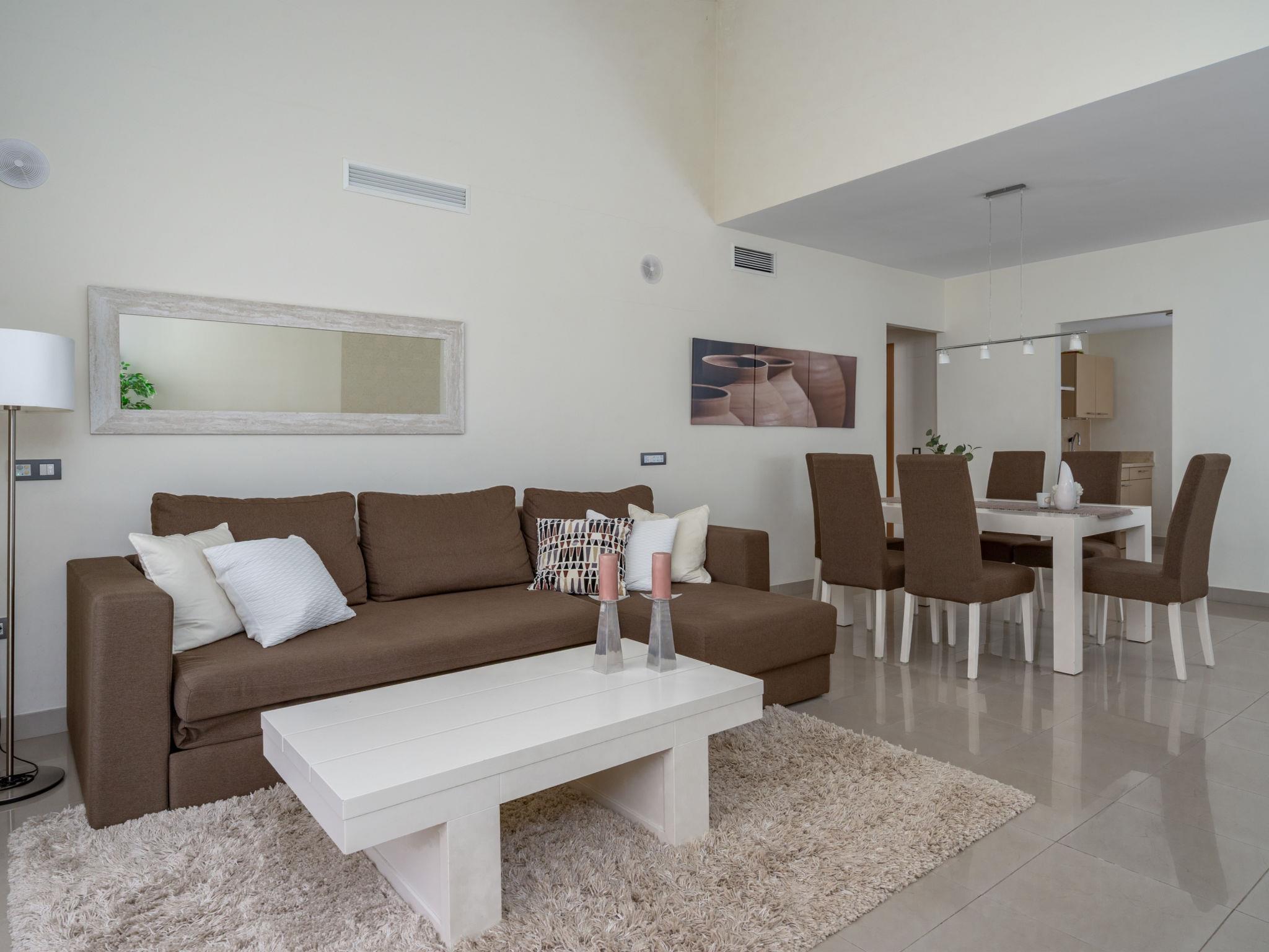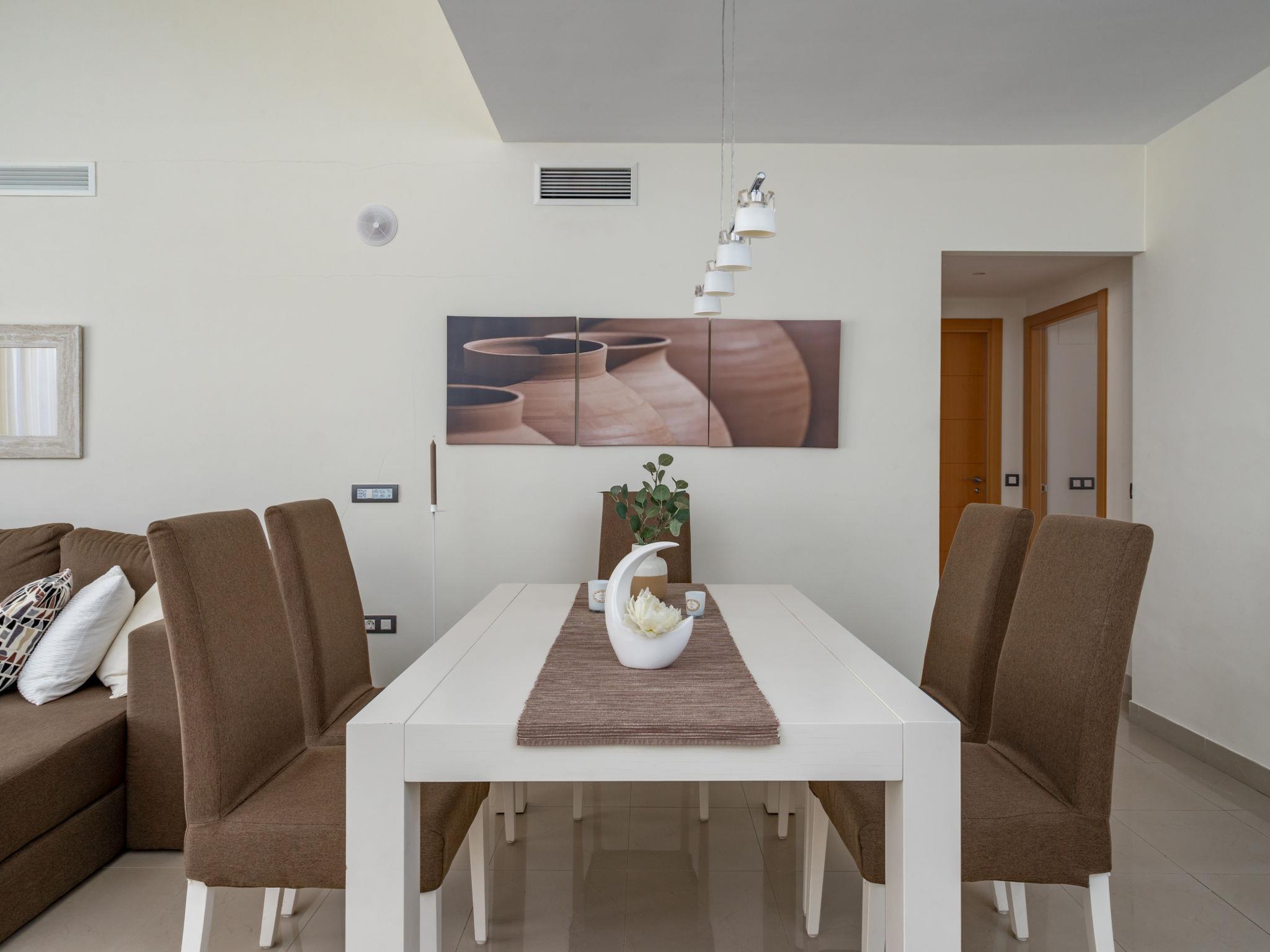 "Cortijo del Mar - Marea Alta", 3-Zimmer-Wohnung 93 m2 im 1. Stock. Hell, komfortabel und schön eingerichtet: Wohn-/Esszimmer mit Digital-TV, Klimaanlage und Warmluftheizung. Ausgang zur Terrasse. 1 Zimmer mit 1 franz. Bett (180 cm, Länge 200 cm), Dusche/Bidet/WC (privat) Klimaanlage und Warmluftheizung. 1 Zimmer mit 2 x 2 Etagenbetten (90 cm, Länge 200 cm). Küche (Backofen, Geschirrspüler, 4 Glaskeramikplatten, Toaster, Wasserkocher, Mikrowelle, Tiefkühler, elektrische Kaffeemaschine). Dusche/WC. Terrasse. Terrassenmöbel. Sicht auf das Schwimmbad und den Garten. Zur Verfügung: Waschmaschine, Bügeleisen, Kinderhochstuhl, Babybett, Haartrockner. Internet (WLAN, gratis). Garage Nr. 54. Bitte beachten: Nichtraucher-Unterkunft. VUT/MA/93934 // Reg. Nr.: ESFCTU0000290370004872390000000000000000VUT/MA/939343