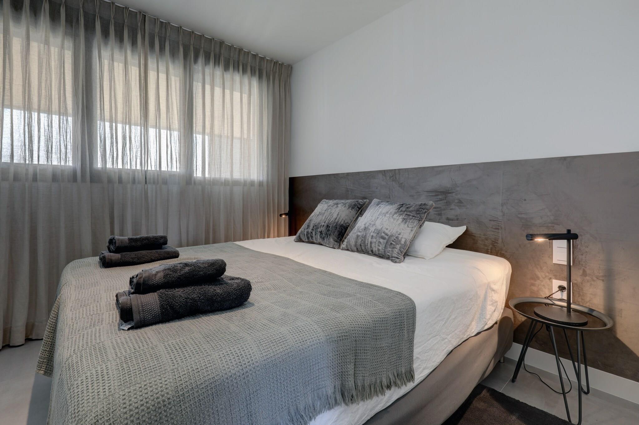 Parterre: (Wohnzimmer(TV), Küche(Esstisch, Kochherd, Kaffeemaschine, Mikrowelle, Kühl-/Gefrierkombination), Schlafzimmer(Doppelbett), Schlafzimmer(Doppelbett), Schlafzimmer(Doppelbett), Badezimmer(Badewanne, Dusche, Waschbecken), Badezimmer(Dusche, Waschbecken), Balkon, Heizung, Klimaanlage) Fitnessraum, Fitnessraum(Gemeinschaftliche Nutzung mit anderen Gästen), Whirlwanne(Gemeinschaftliche Nutzung mit anderen Gästen), Sauna(Gemeinschaftliche Nutzung mit anderen Gästen), Garten, Parkplatz, Pool(Gemeinschaftliche Nutzung mit anderen Gästen)