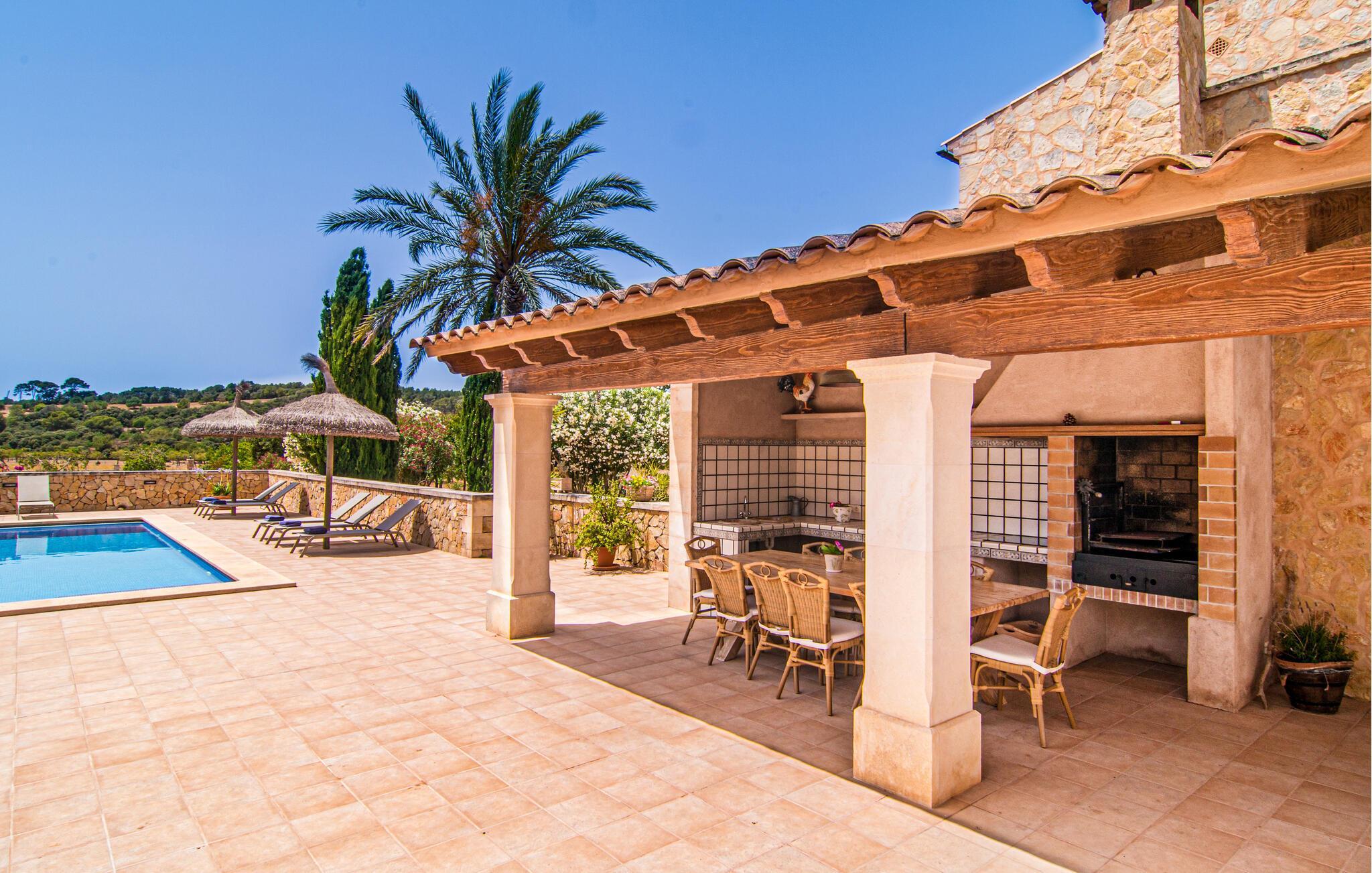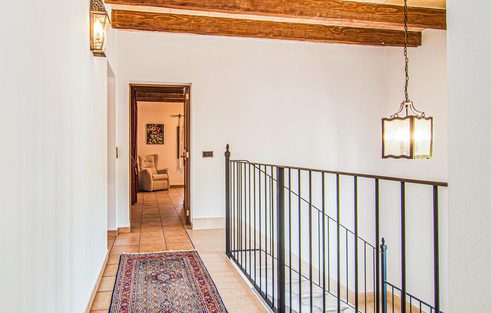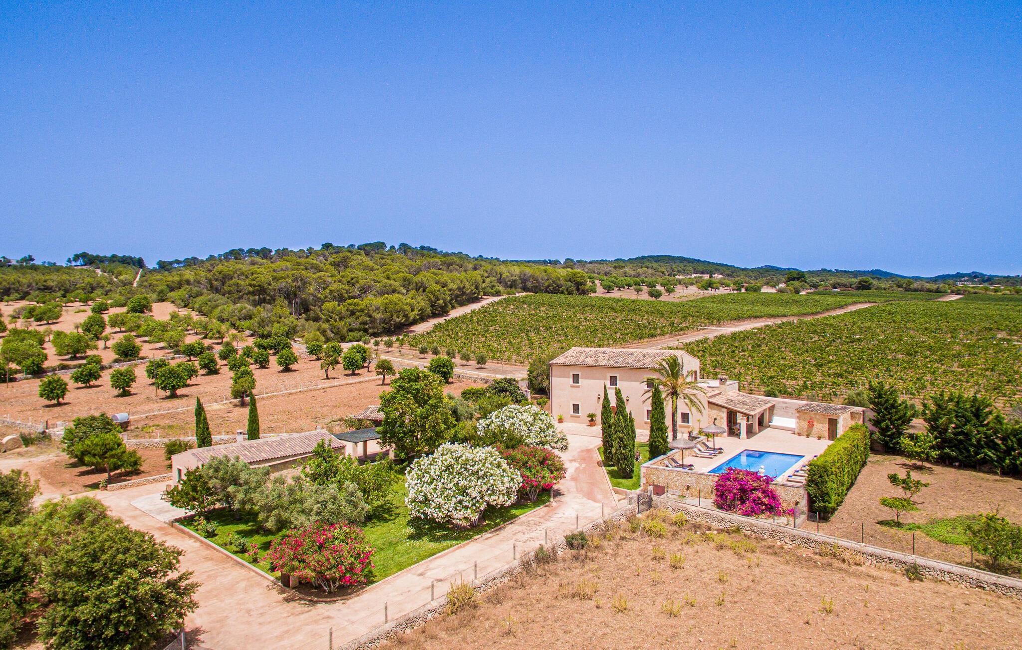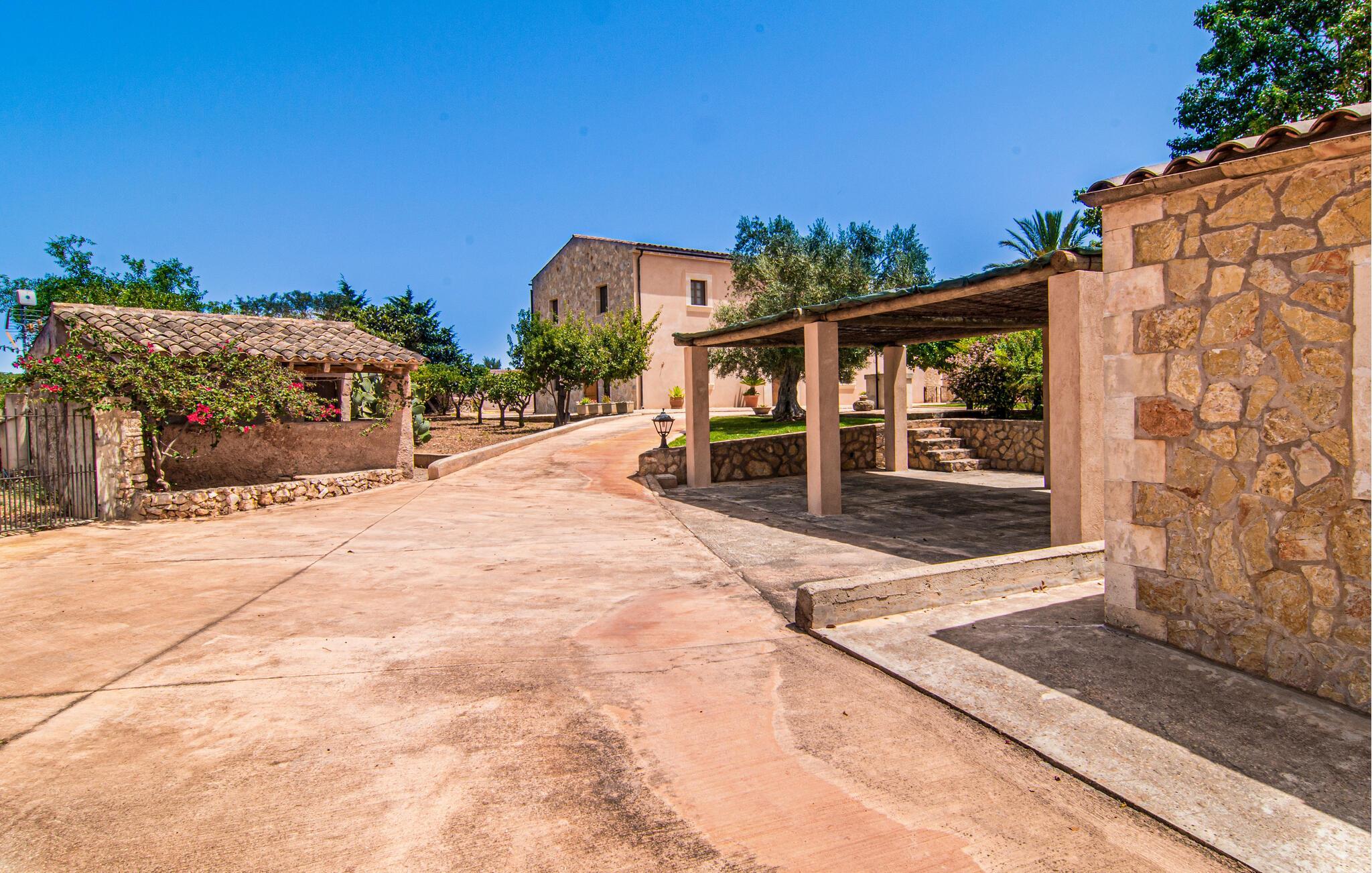 Eingebettet in ein ruhiges, weitläufiges Grundstück, heißt Sie dieses wunderschöne mallorquinische Anwesen herzlich willkommen. Treten Sie ein und erkunden Sie die liebevoll eingerichteten Räumlichkeiten, in denen gepflegte Holzbalken, Natursteinwände und prachtvolle, traditionelle Möbel für eine authentische Atmosphäre sorgen. Zaubern Sie köstliche Gerichte in der geräumigen Küche, plaudern Sie auf einem der vielen gemütlichen Sofas oder ziehen Sie sich für ruhige Lesestunden an Ihren Lieblingsort zurück.