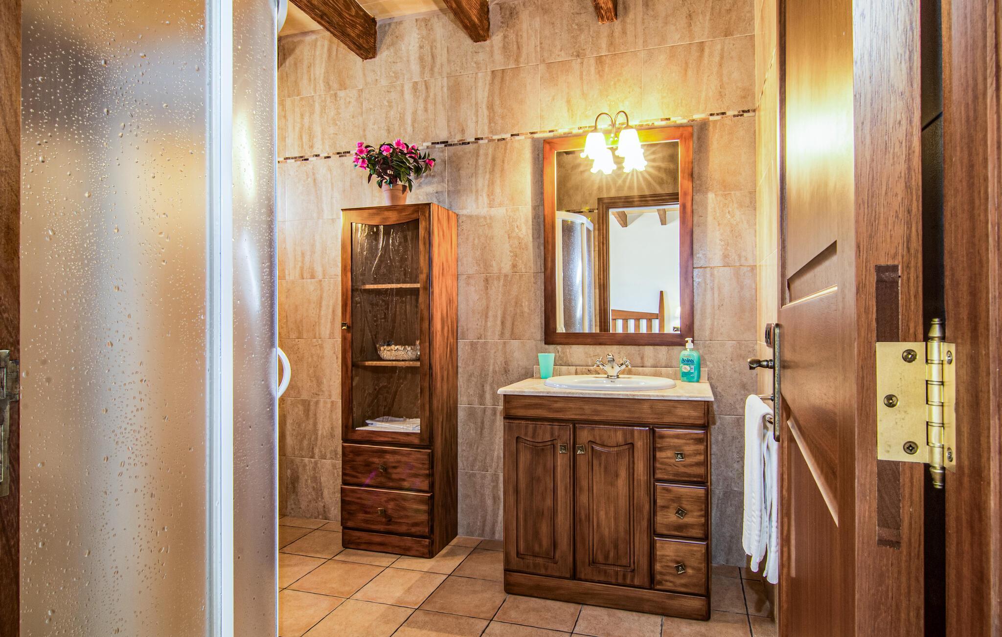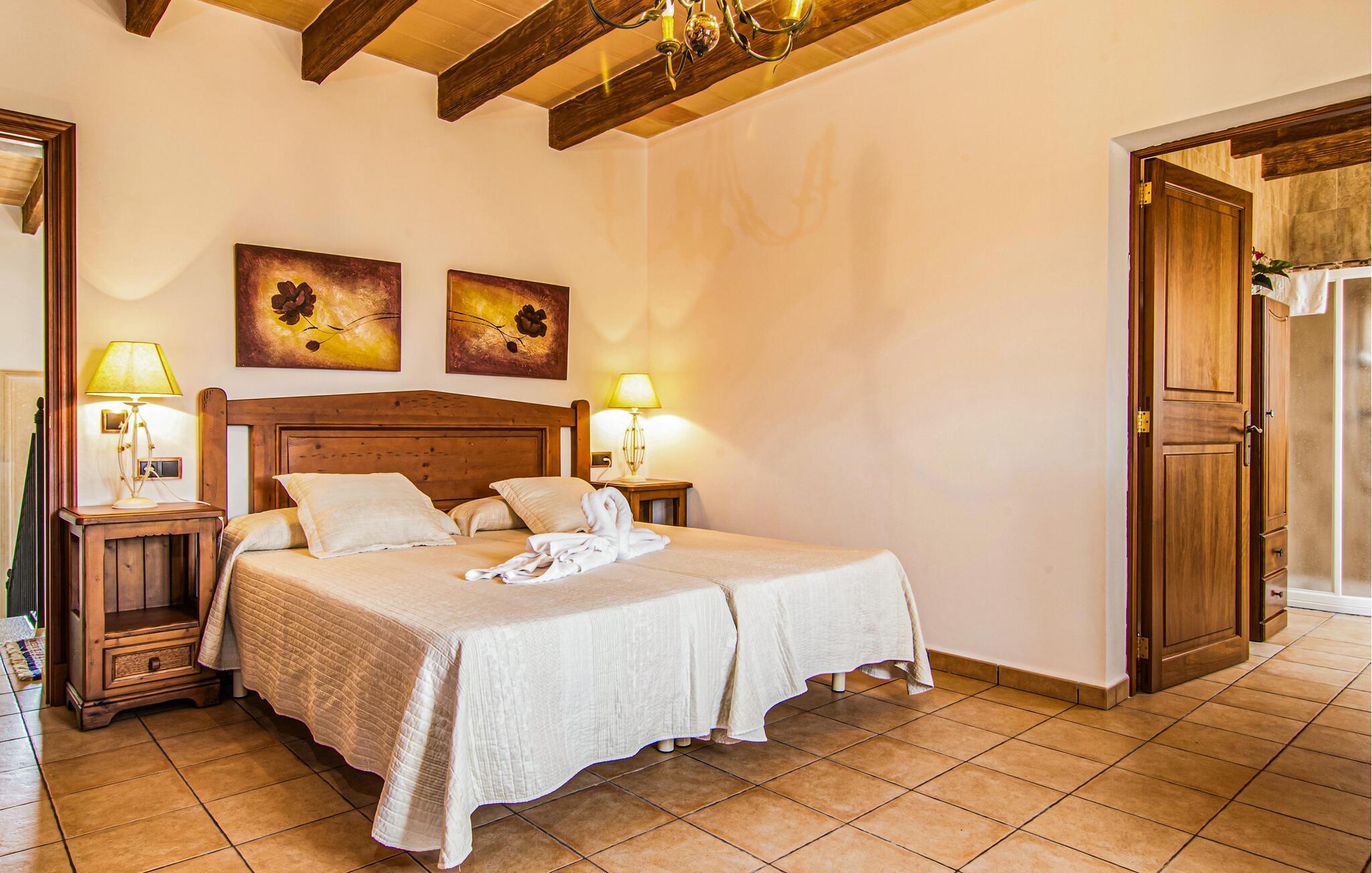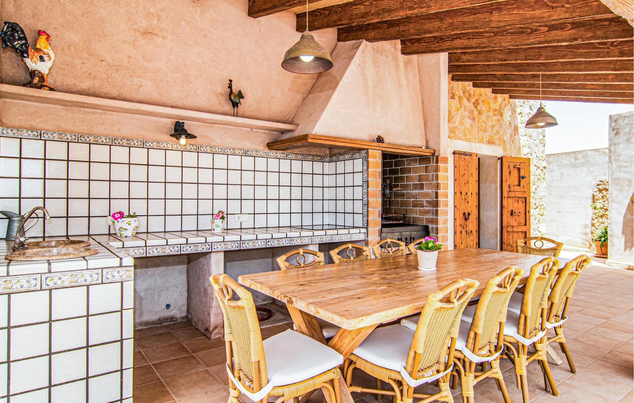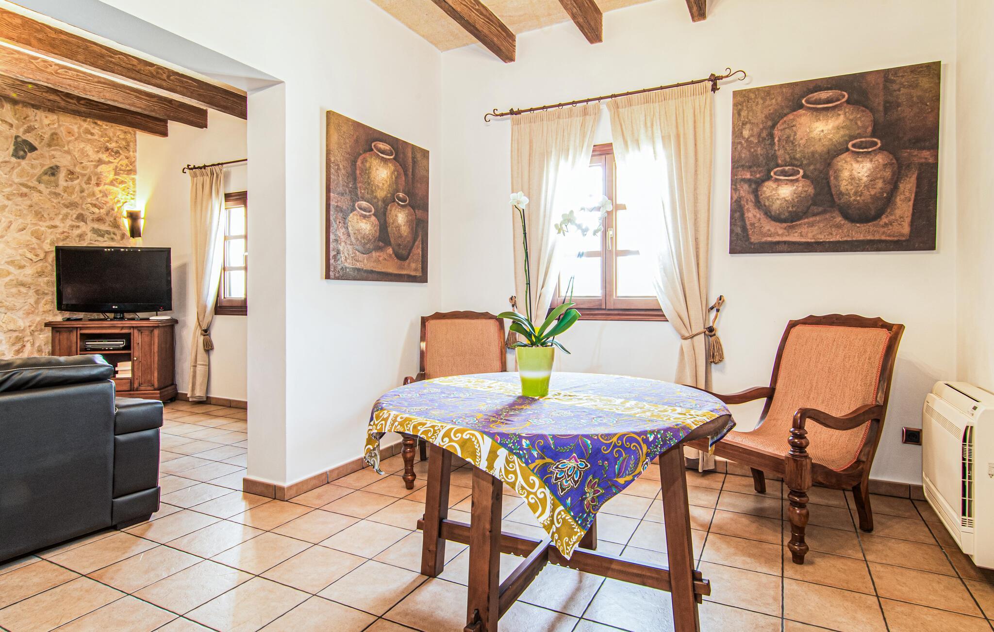 Eingebettet in ein ruhiges, weitläufiges Grundstück, heißt Sie dieses wunderschöne mallorquinische Anwesen herzlich willkommen. Treten Sie ein und erkunden Sie die liebevoll eingerichteten Räumlichkeiten, in denen gepflegte Holzbalken, Natursteinwände und prachtvolle, traditionelle Möbel für eine authentische Atmosphäre sorgen. Zaubern Sie köstliche Gerichte in der geräumigen Küche, plaudern Sie auf einem der vielen gemütlichen Sofas oder ziehen Sie sich für ruhige Lesestunden an Ihren Lieblingsort zurück.