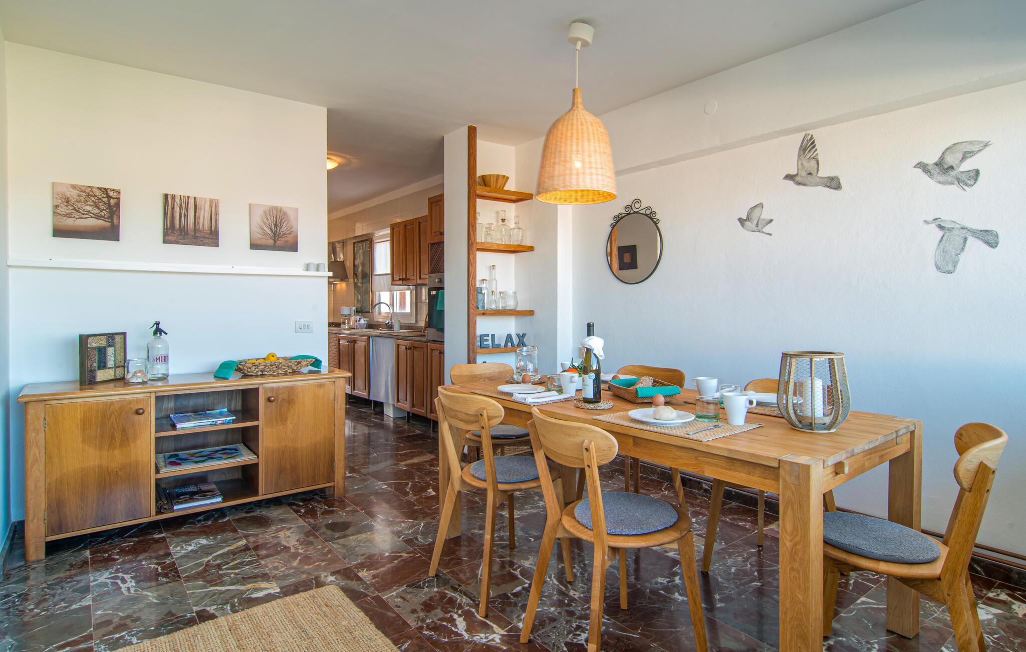 Diese helle und geräumige Ferienwohnung bietet Ihnen die Möglichkeit, Strandurlaub auf Mallorca mit reizvollen kulturellen Ausflügen zu kombinieren. Genießen Sie das geschmackvoll eingerichtete Interieur bei einem entspannten Frühstück im einladenden Essbereich und planen Sie in aller Ruhe Ihre Unternehmungen im lichtdurchfluteten Wohnzimmer. Nach einem erlebnisreichen Tag können Sie es sich für einen Spieleabend oder mit einem guten Buch auf dem Sofa gemütlich machen.
