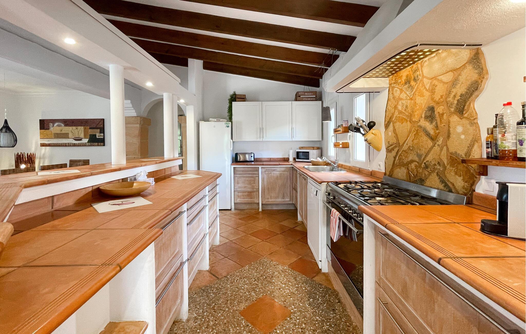 Diese bezaubernde mallorquinische Finca liegt eingebettet in ein wunderschönes, gepflegtes Grundstück und heißt Sie mit einem großzügigen und geschmackvoll eingerichteten Interieur willkommen, in dem Sie sich vom ersten Tag an wohlfühlen werden. Bereiten Sie in der geräumigen Küche gemeinsam mediterrane Gerichte zu und plaudern Sie bei ausgedehnten Mahlzeiten am einladenden Esstisch. Finden Sie zusammen Zeit für einen gemütlichen Filmabend oder lassen Sie einen langen Tag an der Sonne mit einem Spieleabend ausklingen.