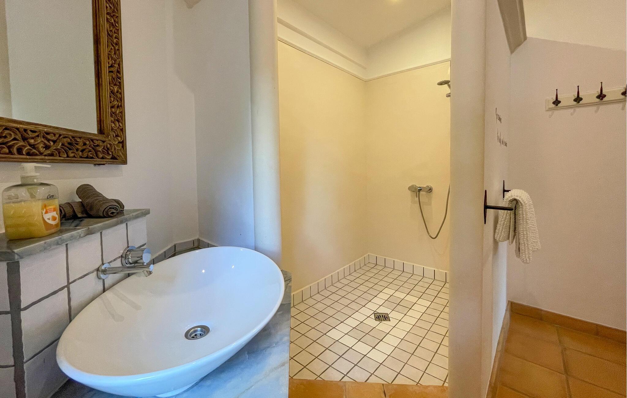 Der weitläufige Außenbereich lädt zum stundenlangen Verweilen unter dem tiefblauen Himmel ein. Hier genießen Sie absolute Privatsphäre, während Sie sich im herrlichen Pool erfrischen, die friedliche Atmosphäre auf der Sonnenliege auf sich wirken lassen und die warmen Sommernächte mit stimmungsvollen Grillabenden bei Wein und Kerzenschein zelebrieren.